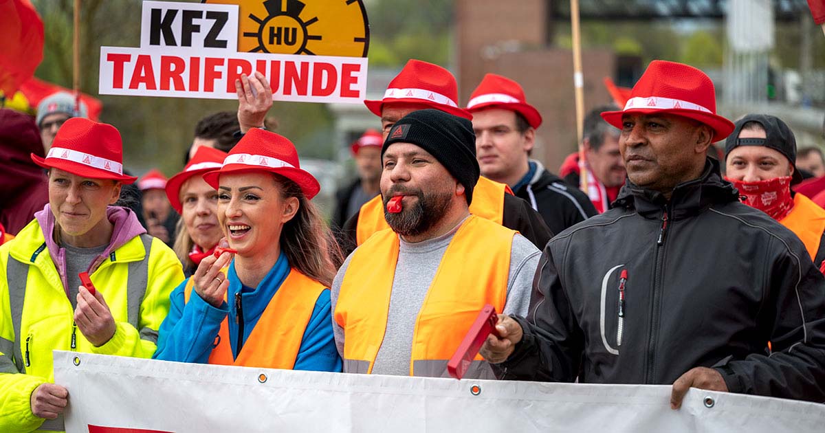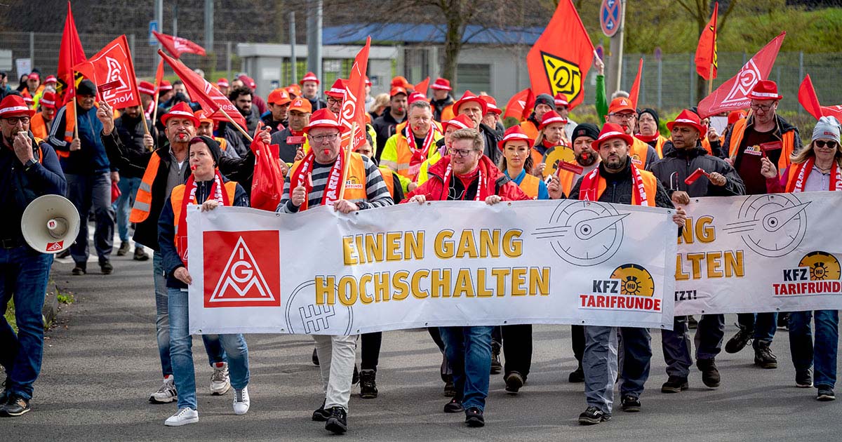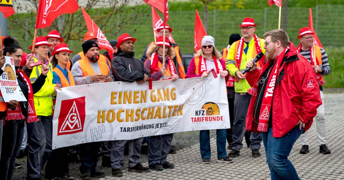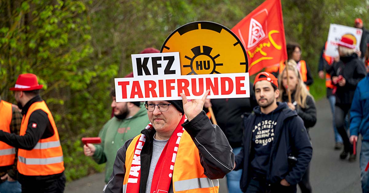 Sie unterstützten mit ihrem Warnstreik die Tarifforderung der IG Metall für das hessische Kfz-Handwerk. Für 17 Uhr ist eine erneute Arbeitsniederlegung in dem Unternehmen geplant.