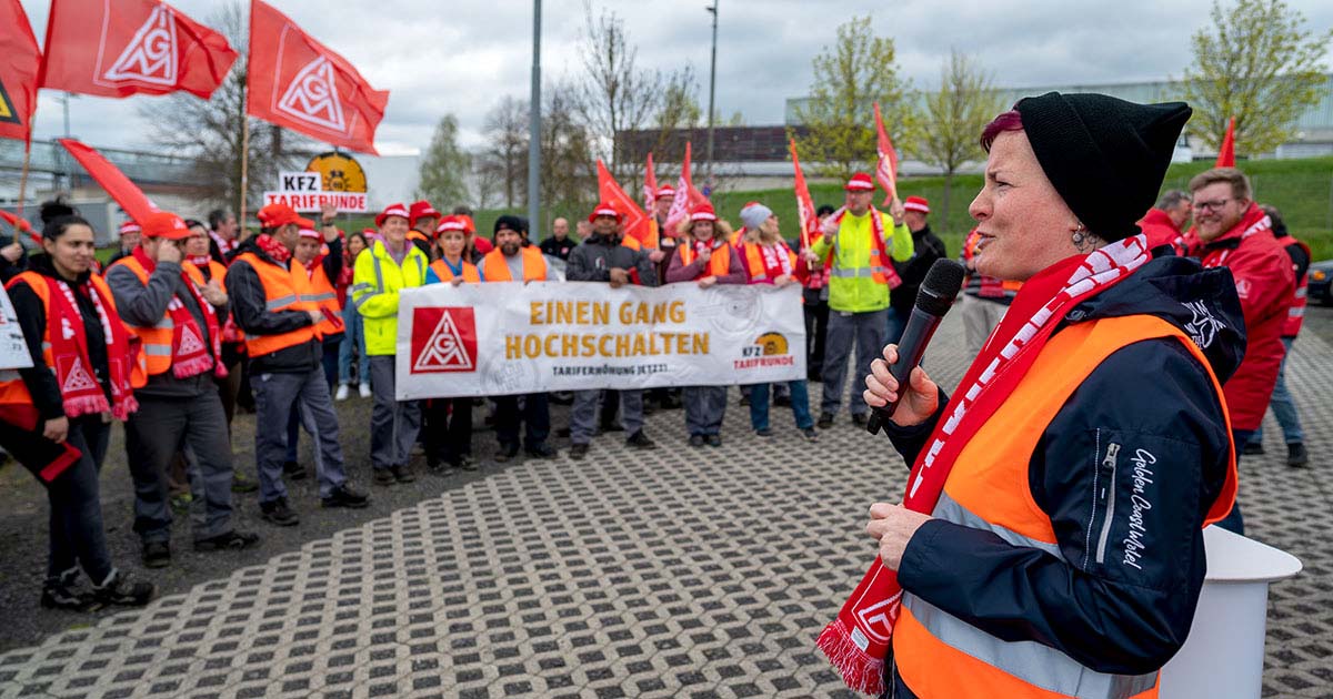 Die Zweite Bevollmächtigte der IG Metall Nordhessen, Elke Volkmann, rief die hessischen Arbeitgeber des Kfz-Handwerks auf, einen Abschluss mindestens auf dem Niveau des Pilotabschlusses in Baden-Württemberg zu ermöglichen. „Wir haben eine richtig heftige Inflation und wir haben Beschäftigte, die sehr gute Arbeit leisten“, sagte Volkmann. „Da ist es absolut angemessen, dass wir einen Abschluss erwarten, der den Menschen hilft, die gestiegenen Kosten zu bewältigen.“ Zugleich fordere die IG Metall aus Überzeugung überproportionale Steigerungen für Auszubildende. „Die Unternehmen müssen begreifen, dass sie für junge Menschen wirklich attraktiv sein müssen, um eine Zukunft zu haben“, sagte Volkmann unter lautem Applaus der Kundgebungsteilnehmer.