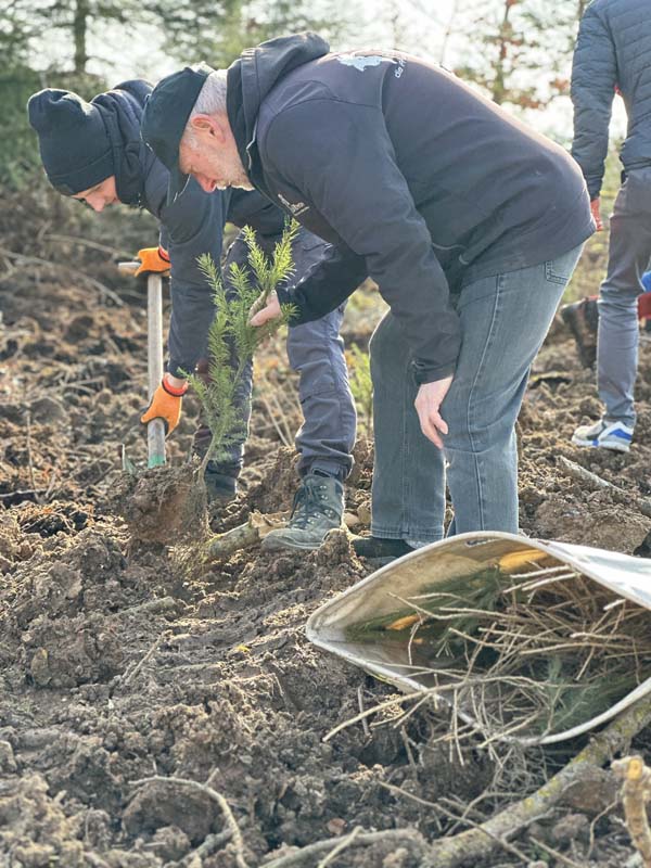 NEUKIRCHEN. In einer gemeinsamen Aktion haben die Mitarbeitenden von Hünerkopf GmbH & Co. KG und WM Aquatec zur Aufforstung beigetragen, indem sie 1000 Lärchen, Douglasien und Fichten gepflanzt haben.