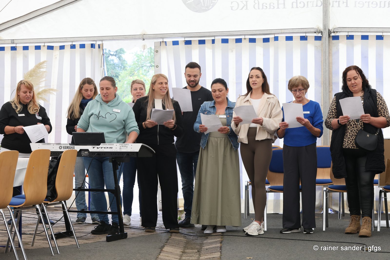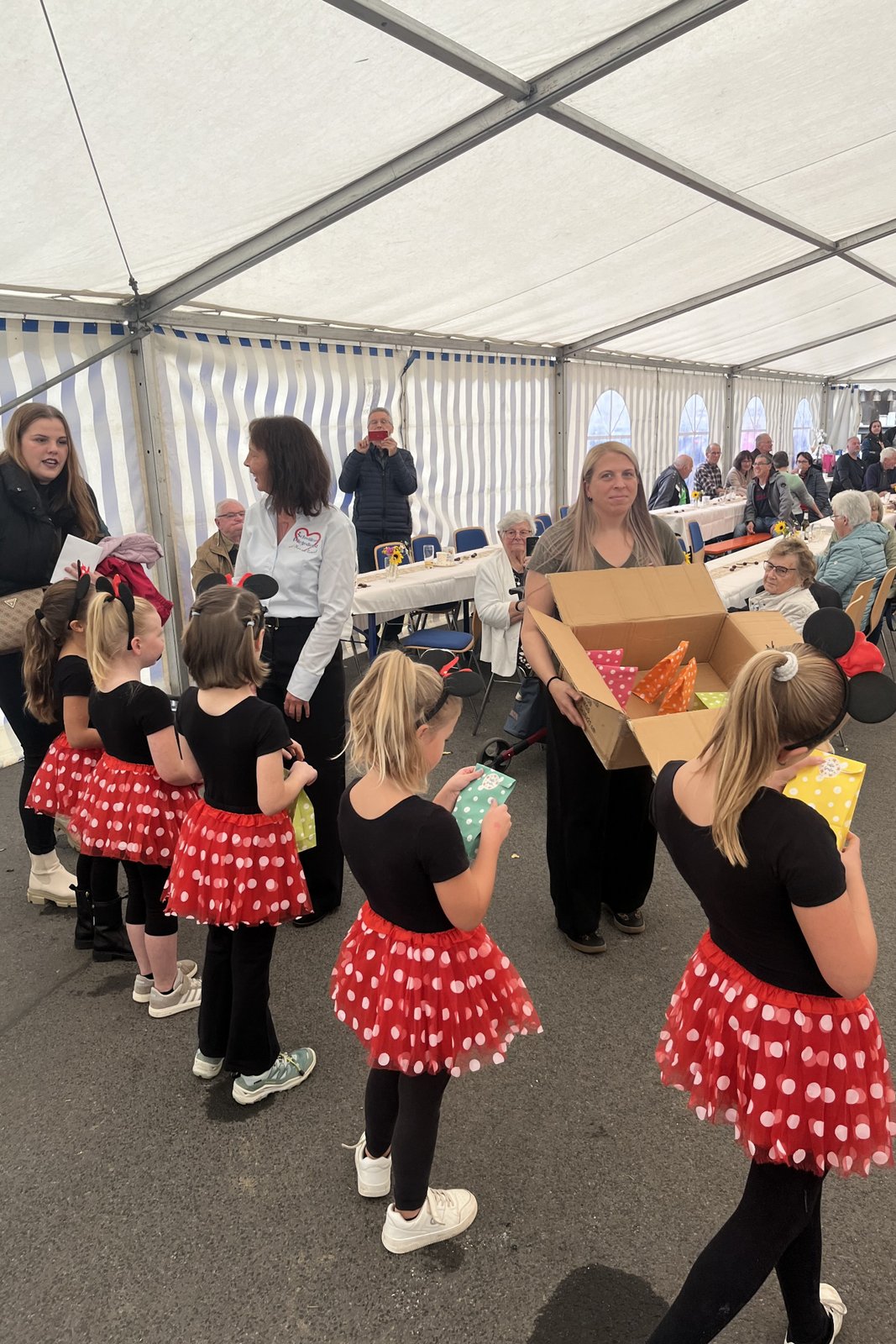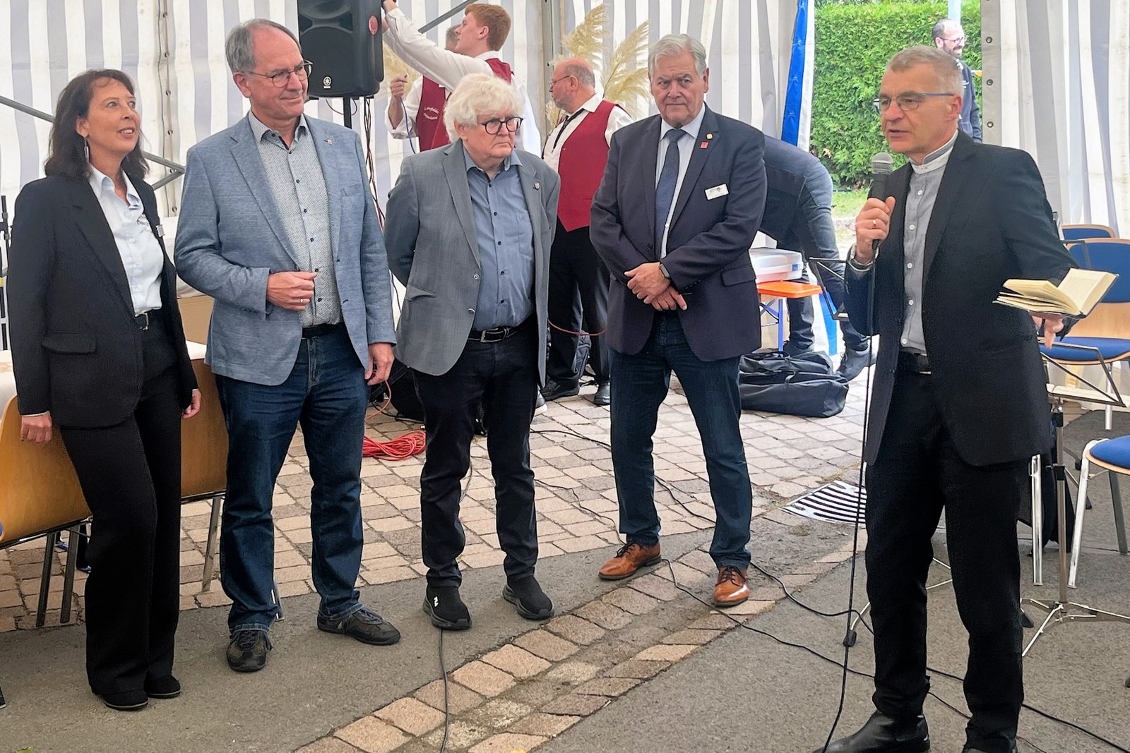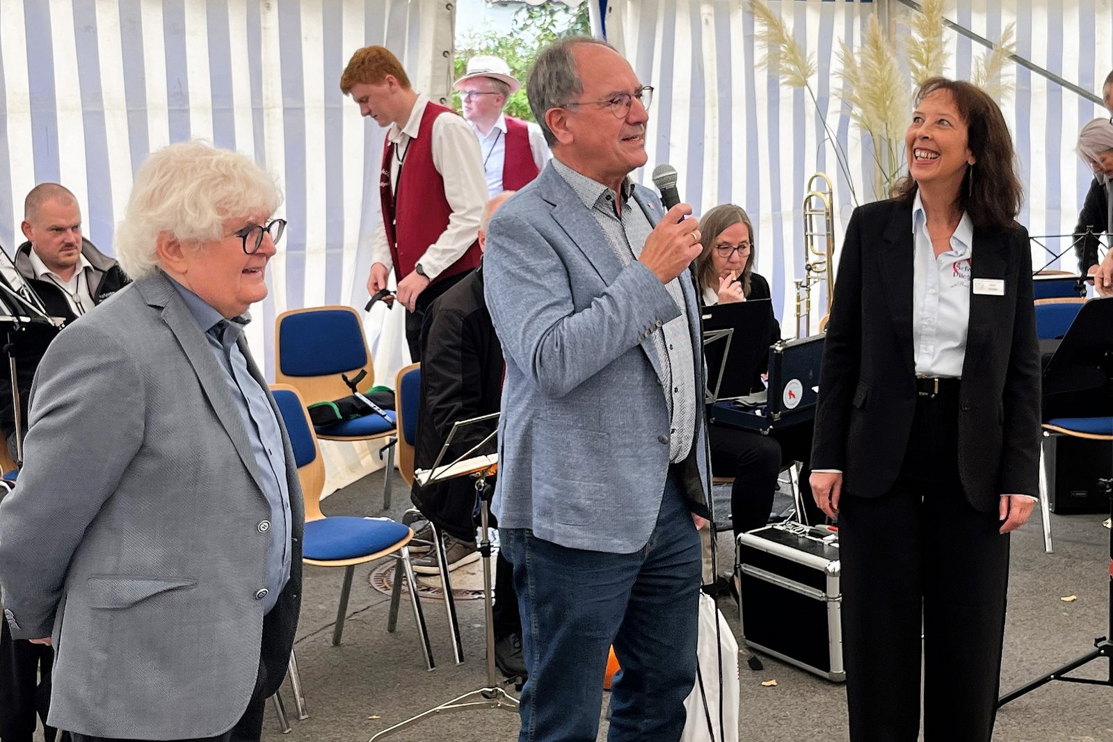 Für die musikalische Umrahmung sorgten die Leimsfelder Dorfmusikanten, und auch die Mitarbeitende des Pflegedienstes hatten eine besondere Überraschung parat: Sie dichteten den bekannten Schlager „Im Wagen vor mir“ um und trugen ihn schwungvoll vor – ein Beitrag, der für viel Heiterkeit und Beifall im Zelt sorgte. Für das leibliche Wohl war mit Kaffee, Kuchen und einem Foodtruck mit Würstchen und Pommes bestens gesorgt.
