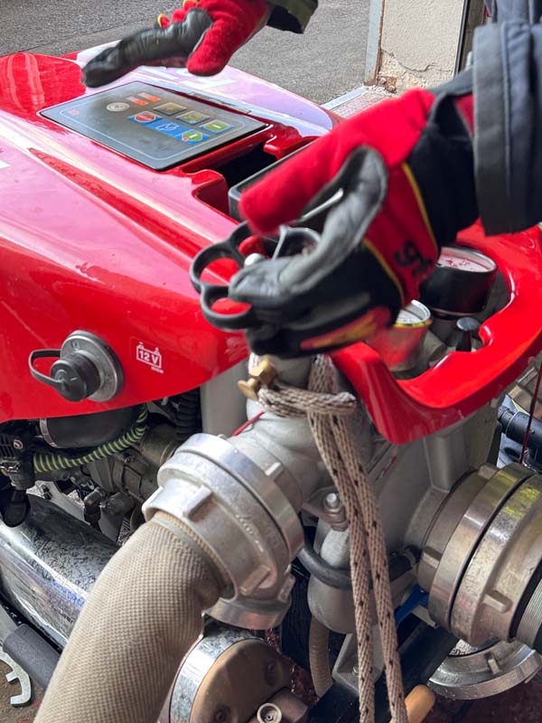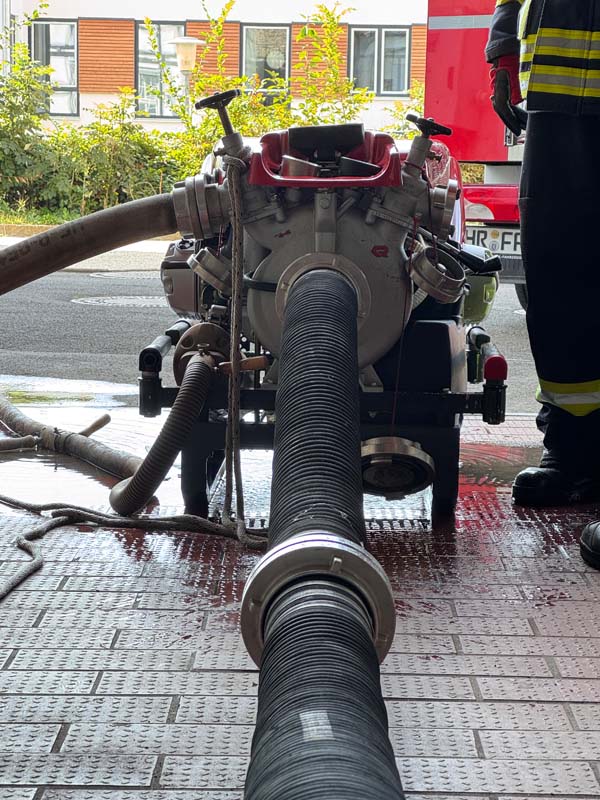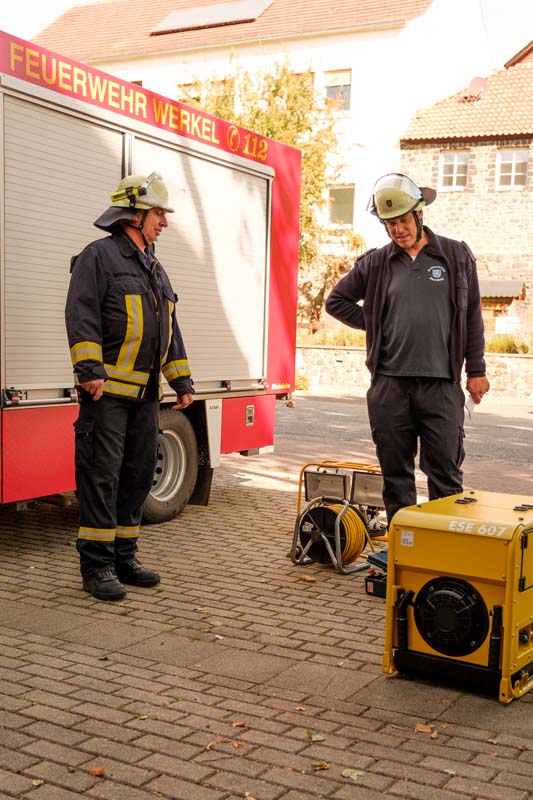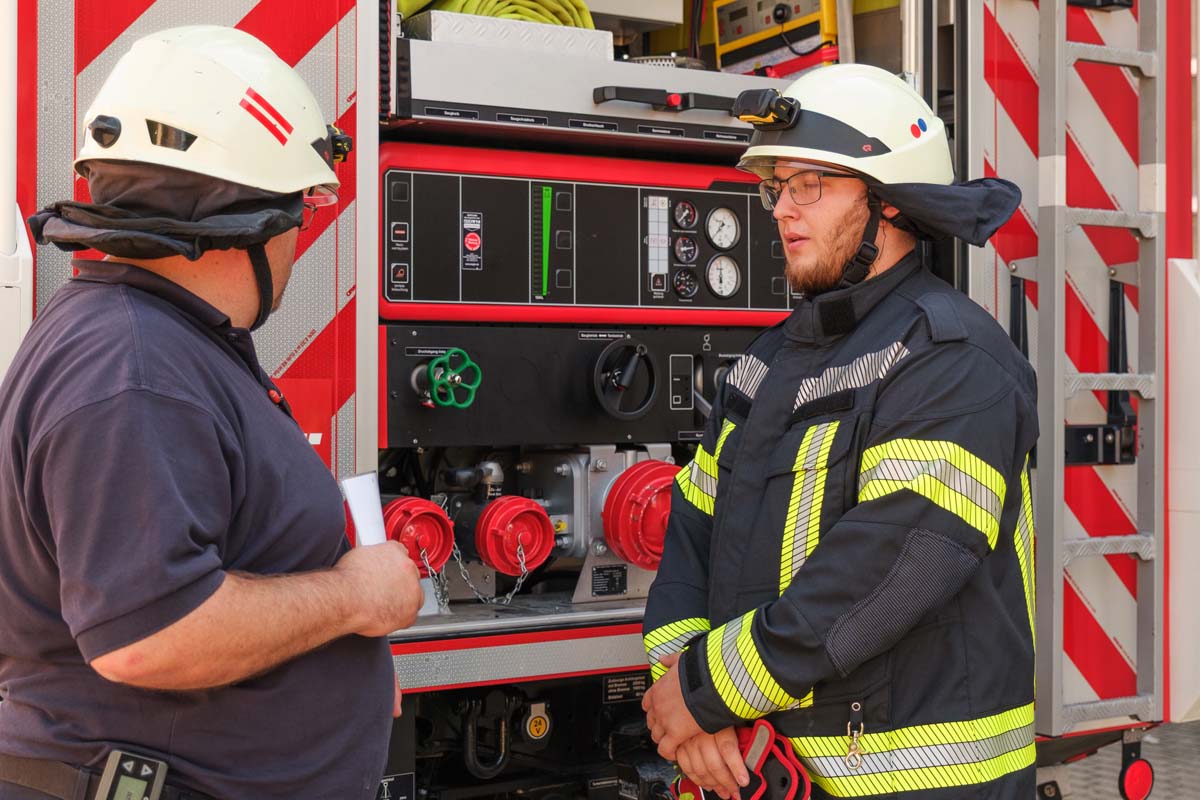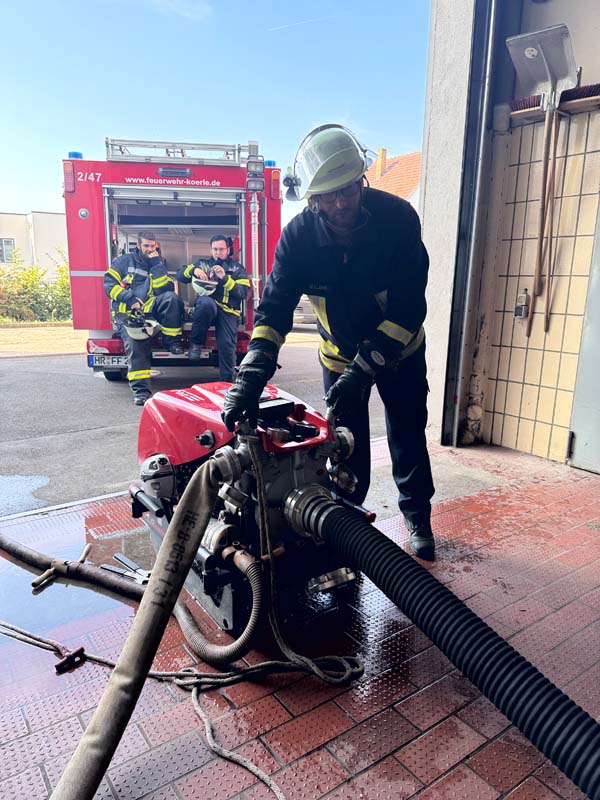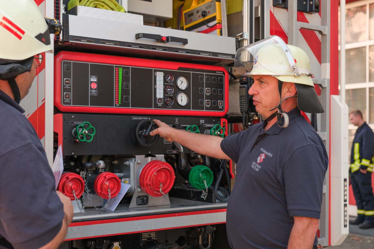 Im anschließenden Praxisteil mit 22 Unterrichtsstunden übten die Teilnehmer am Stützpunkt Homberg und am Behördenzentrum. Unter Anleitung des Kreisausbilderteams setzten sie ihr Wissen in Übungen um. Neben der Bedienung von Pumpen und Stromerzeugern wurde auch die Berechnung und der Aufbau längerer Förderstrecken behandelt.