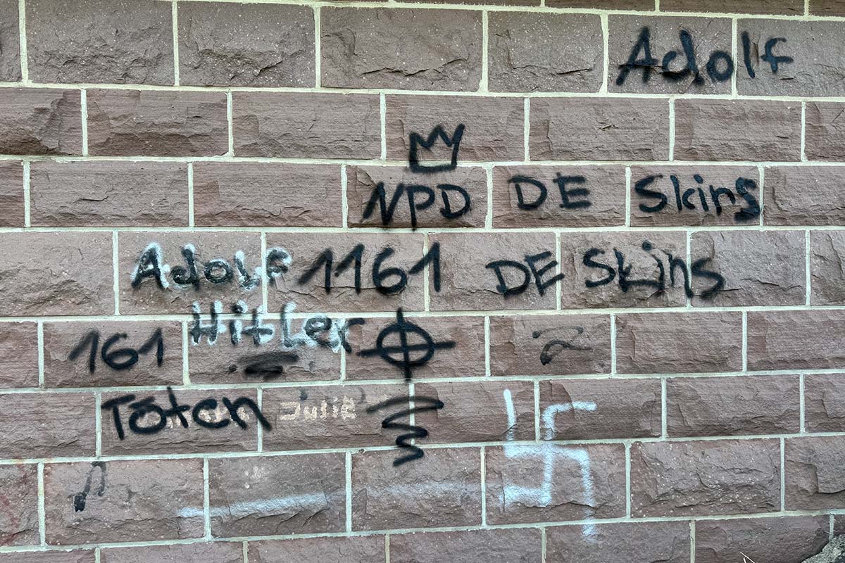 An mehreren Stellen brachten die Unbekannten drei Hakenkreuze sowie verschiedene Schriftzüge mit politischem Bezug an. Verwendet wurde schwarze und weiße Sprühfarbe. Der entstandene Sachschaden ist derzeit noch nicht beziffert.