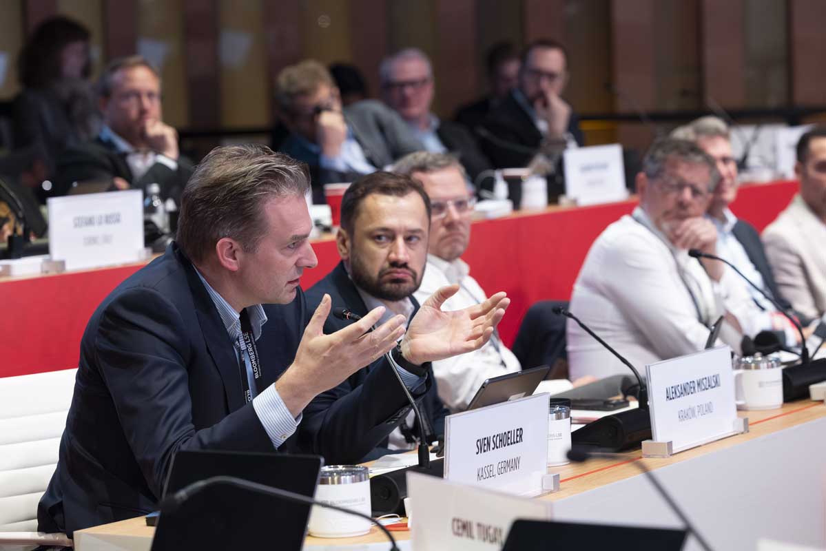 Oberbürgermeister Schoeller (im Bild links) beim regen Austausch mit anderen Netzwerkmetropolen ©Bloomberg IP Holdings LLC | nh