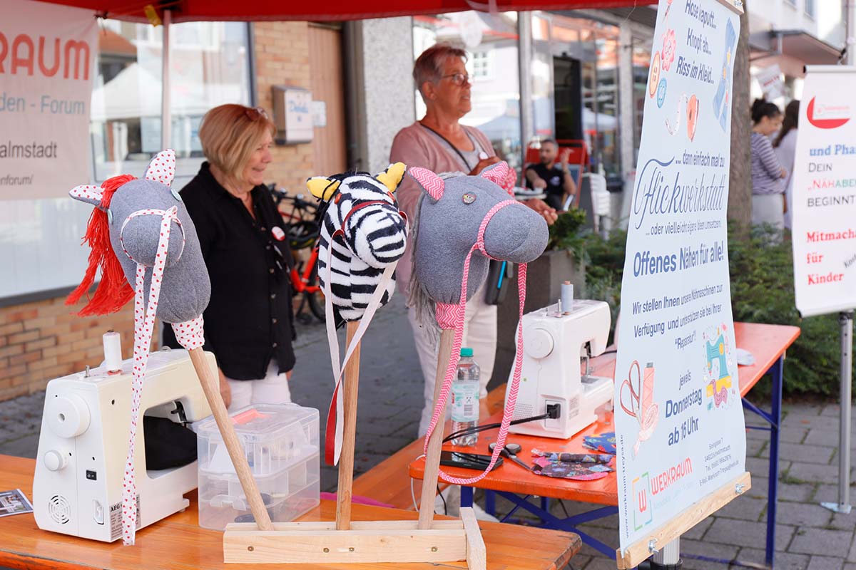 Neben Stoffen, Nähgarn, Strickgarn, Wolle und Handarbeitsbüchern werden weitere Materialien rund ums kreative Gestalten angeboten. Für das leibliche Wohl ist mit Kaffee und selbstgebackenem Kuchen gesorgt.