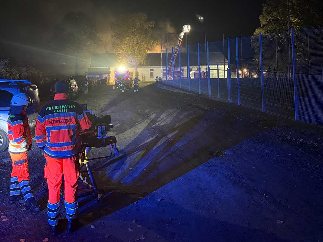 Kurz nach 5 Uhr gingen bei der Leitstelle mehrere Notrufe wegen eines Gebäudebrands in der Straße Schwarzer Stein ein. Die Feuerwehr Kassel rückte mit dem Löschzug der Feuerwache 1, einem Rettungswagen sowie der Freiwilligen Feuerwehr Kassel-Forstfeld aus. Die Leitung hatte Berufsfeuerwehreinsatzleiter Steffen Rödel.