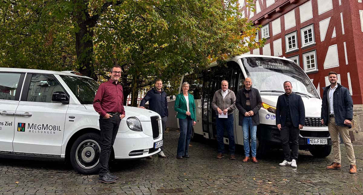 Frank Werner (Ordnungsamtsleiter der Stadt Melsungen), Moritz Marggraf (Taxi Marggraf), Ulrike Hund (Erste Stadträtin der Stadt Melsungen), Helmut Keim (Betriebsleiter und Fahrer der Stadtbuslinie der Frölich-Reisen GmbH), Jens Marggraf (Geschäftsführer von Taxi Marggraf), Timo Riedemann (Bürgermeister der Stadt Melsungen) und Konstantin Frölich (Geschäftsführer der Frölich-Reisen GmbH)