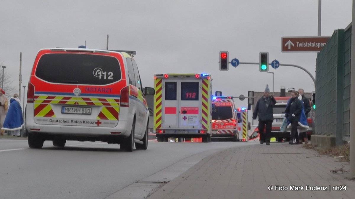 Polizei und Rettungskräfte waren mit einem Großaufgebot vor Ort im Einsatz. Es wurde ein MANV*-Einsatz ausgelöst. Rettungskräfte aus dem Schwalm-Eder-Kreis sowie Rettungshubschrauber wurden ebenfalls nach Volkmarsen alarmiert.