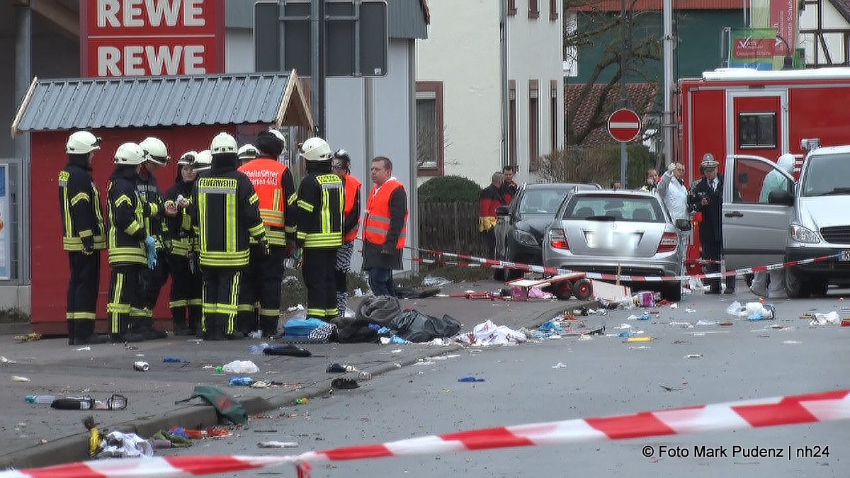 VOLKMARSEN. In Volkmarsen im nordhessischen Landkreis Waldeck-Frankenberg ist am Montagnachmittag gegen 14:45 Uhr ein 29-jähriger deutscher Staatsangehöriger aus Volkmarsen mit einem silbernen Mercedes Kombi in einen Rosenmontagsumzug gefahren. Aktuellen Informationen zufolge sollen etwa 30 Personen, darunter auch Kinder, zum Teil schwer verletzt worden sein.