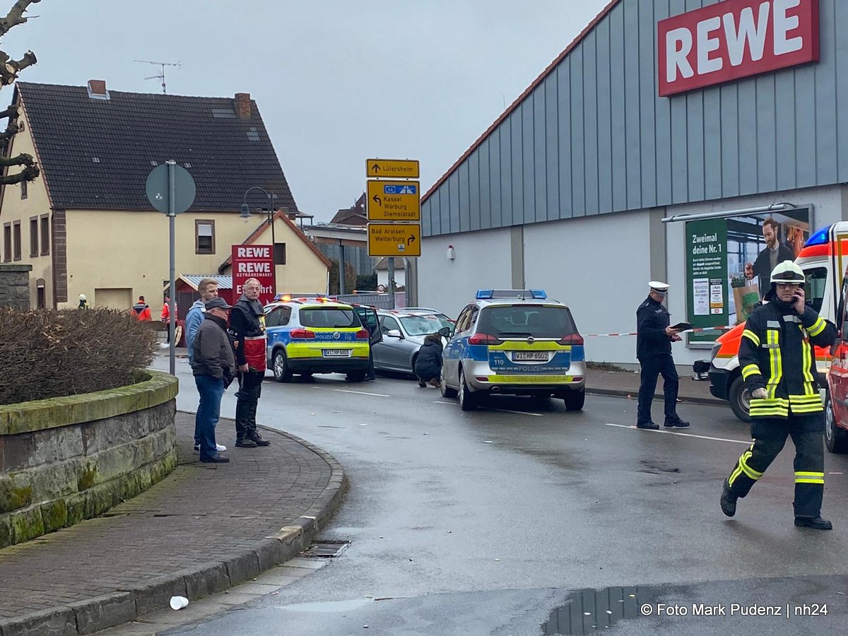 Die Hauptdurchfahrt von Volkmarsen ist voll gesperrt, die Unglücksstelle weiträumig abgesperrt.