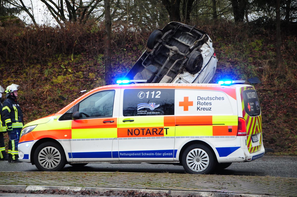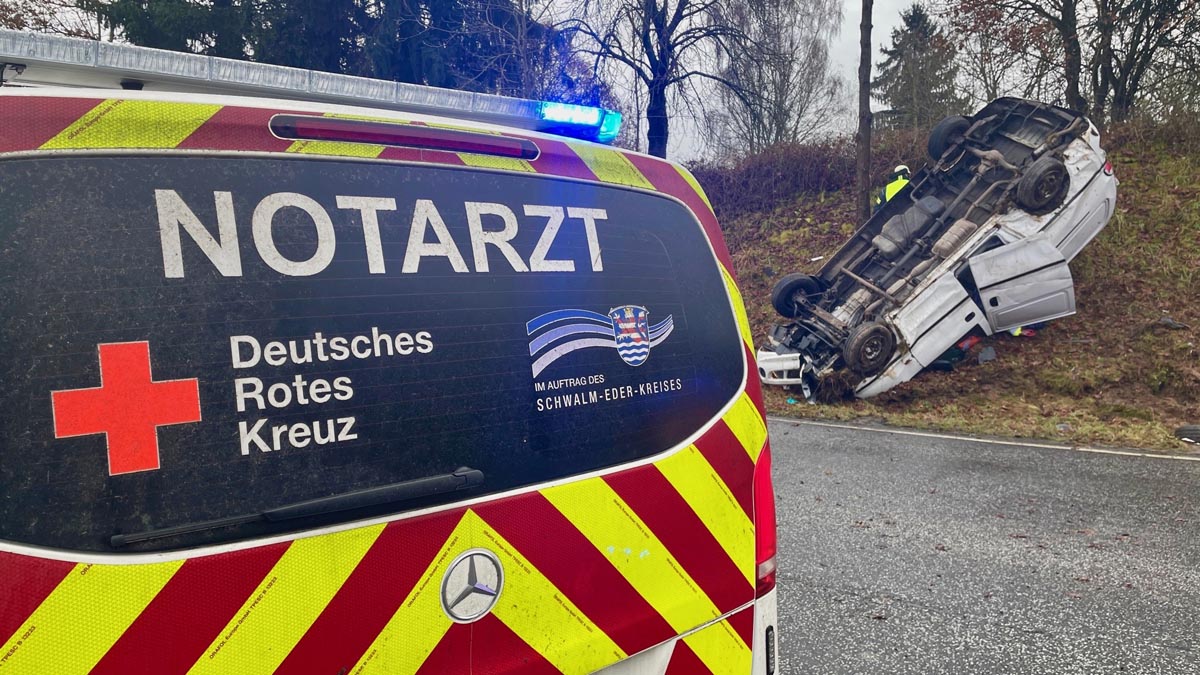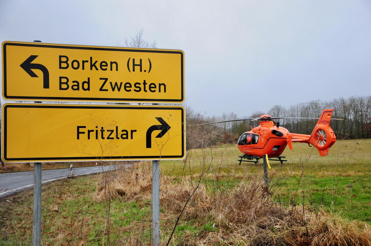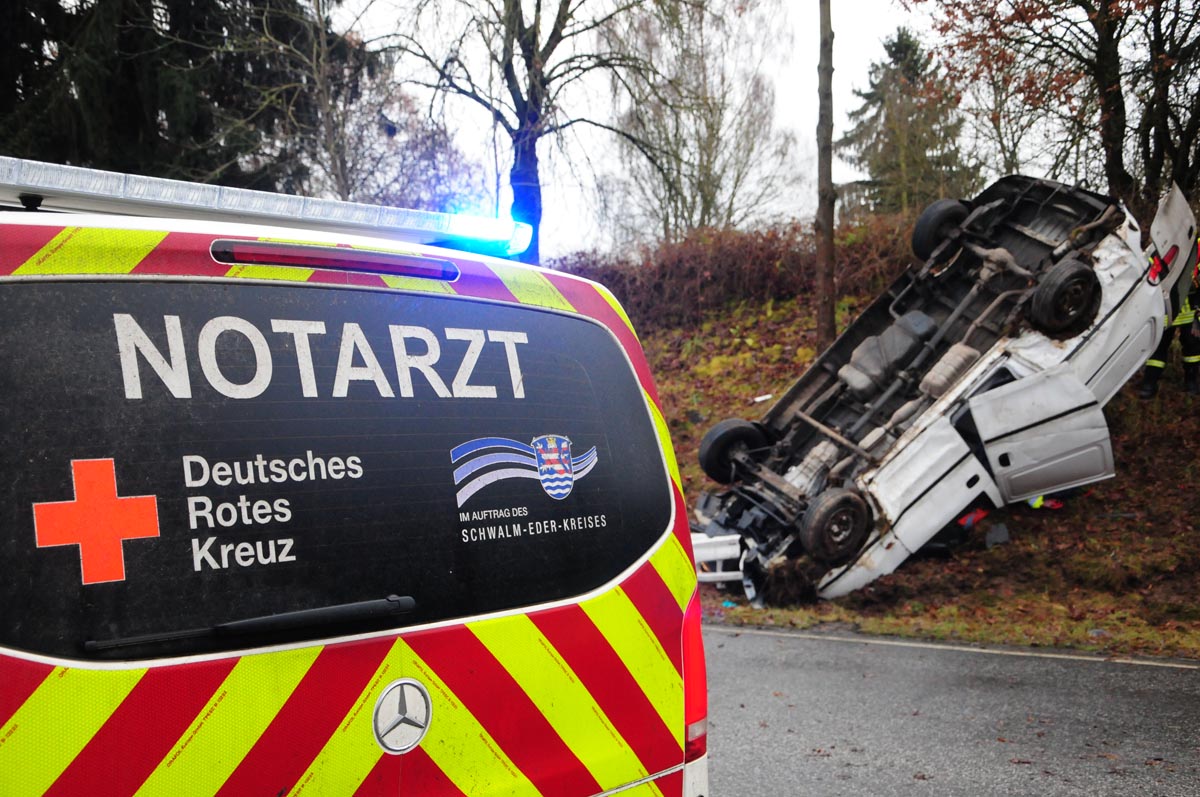 Der 43-jährige Mann aus Wabern war auf der Landesstraße in Richtung Borken unterwegs. Etwa 150 Meter vor der Abfahrt nach Großenenglis geriet er aus bislang unbekannten Gründen nach rechts von der Fahrbahn ab. Der Lieferwagen fuhr durch den Flutgraben und überfuhr dabei mehrere Verkehrsschilder. Im weiteren Verlauf überquerte er dann die Landstraße, überfuhr im Kreuzungsbereich nach Großenenglis eine Verkehrsinsel, überschlug sich und kam auf dem Dach liegend an einem Hang zum Stillstand. Mithilfe von Ersthelfern konnte er sein Fahrzeug verlassen. Der Waberner wurde von Helfern des Rettungsdienstes an der Unfallstelle versorgt und anschließend von der Crew des Rettungshubschraubers Christoph 7 in eine Klinik nach Kassel geflogen wurde. Er erlitt schwere, keinesfalls lebensbedrohliche Verletzungen. Auch ein Ersthelfer wurde zur Kontrolle in ein umliegendes Krankenhaus gebracht.
