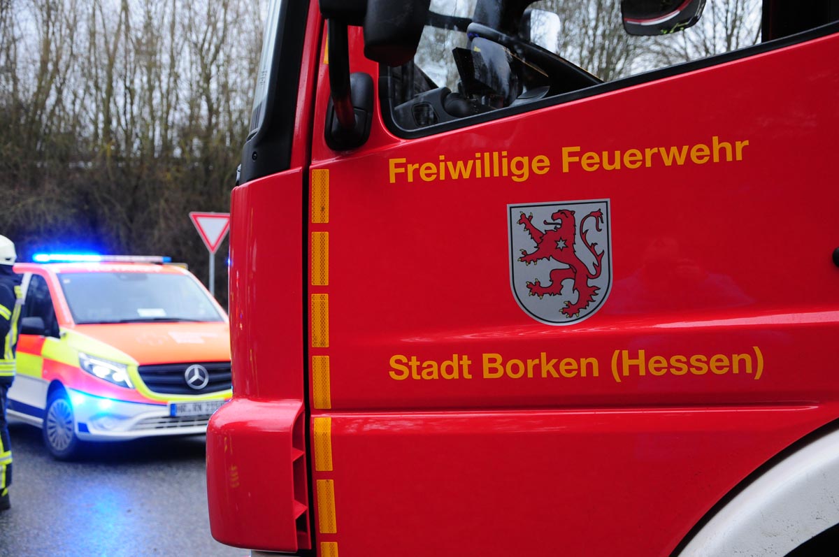 Die Feuerwehr der Stadt Borken (Kernstadt, Kerstenhausen, Kleinenglis und Großenenglis) wurde zu einem Unfall „mit eingeklemmter Person“ alarmiert, was sich vor Ort nicht bestätigte. Die Leitung der 28 Feuerwehrleute hatte Alexander Wilhelm.