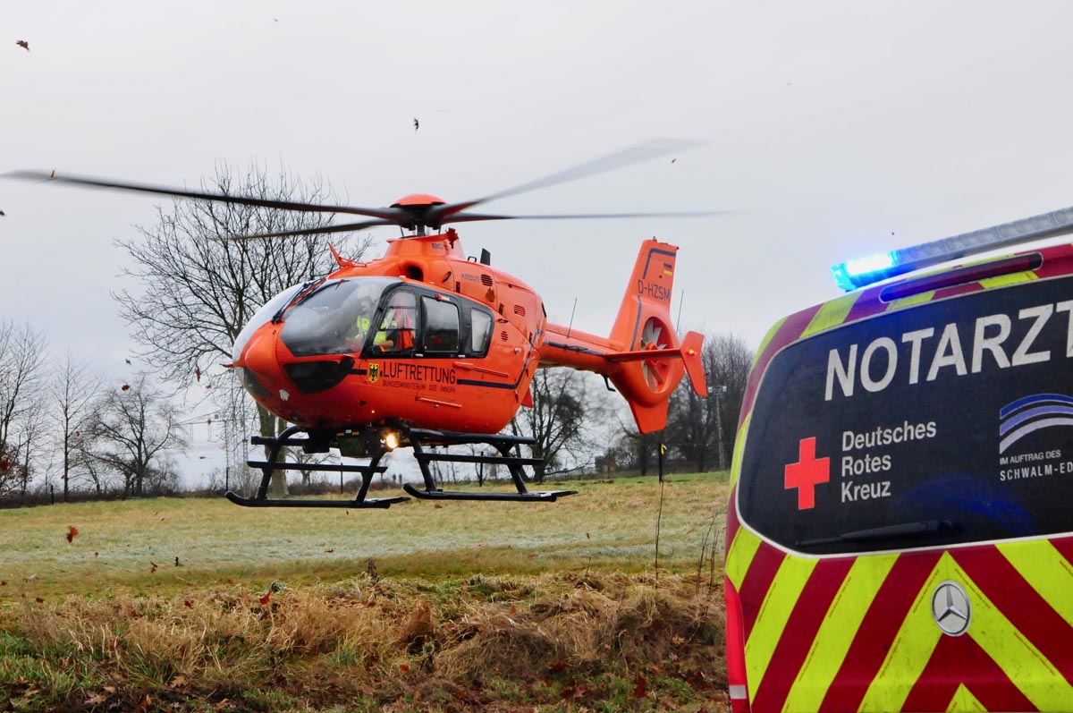 Neben der Feuerwehr waren drei Rettungs- und ein Notarztteam sowie eine Streife der Polizeistation Homberg vor Ort und die Crew des Rettungshubschraubers Christoph 7 im Einsatz. (wal)