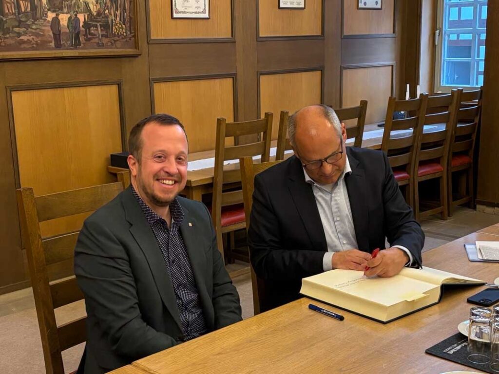 Zur Übergabe waren Vertreterinnen und Vertreter beider Kommunen sowie Abgeordnete aus dem Schwalm-Eder-Kreis und dem Hessischen Landtag anwesend. Im Anschluss trug sich Innenminister Poseck in das Goldene Buch der Stadt Melsungen ein. (wal)