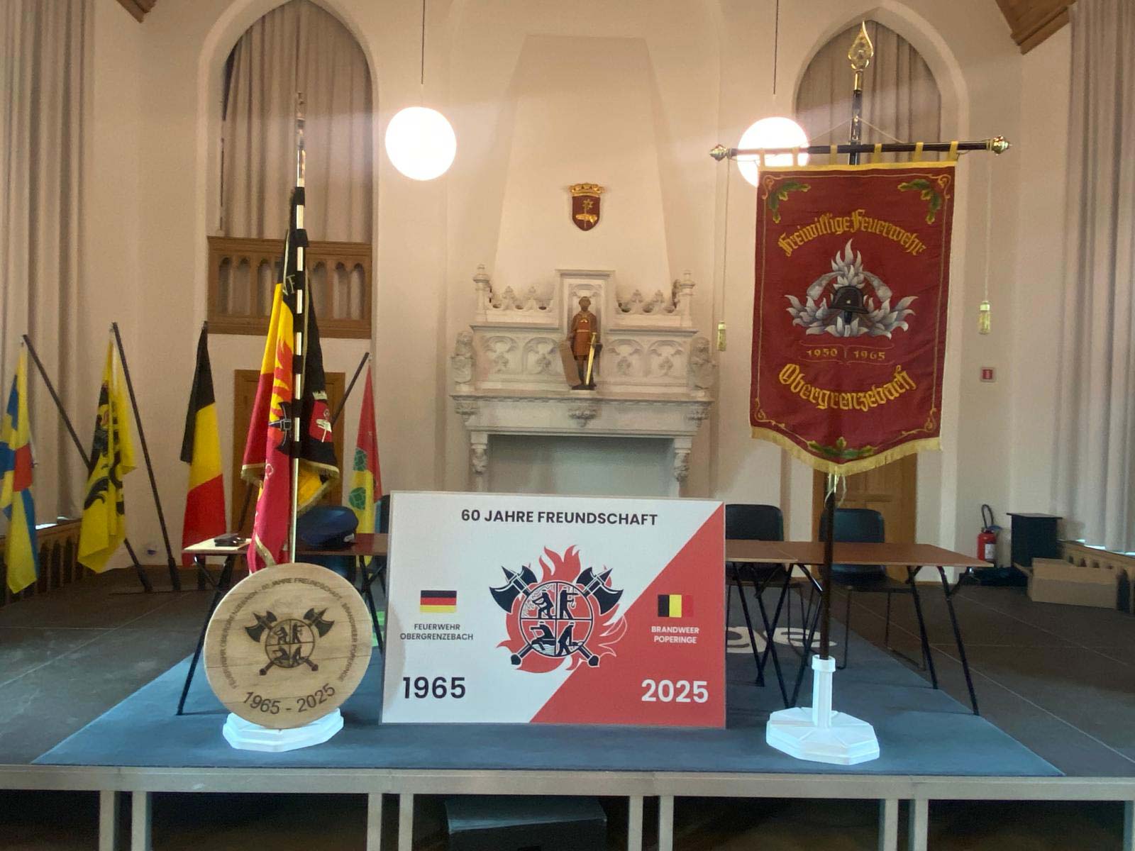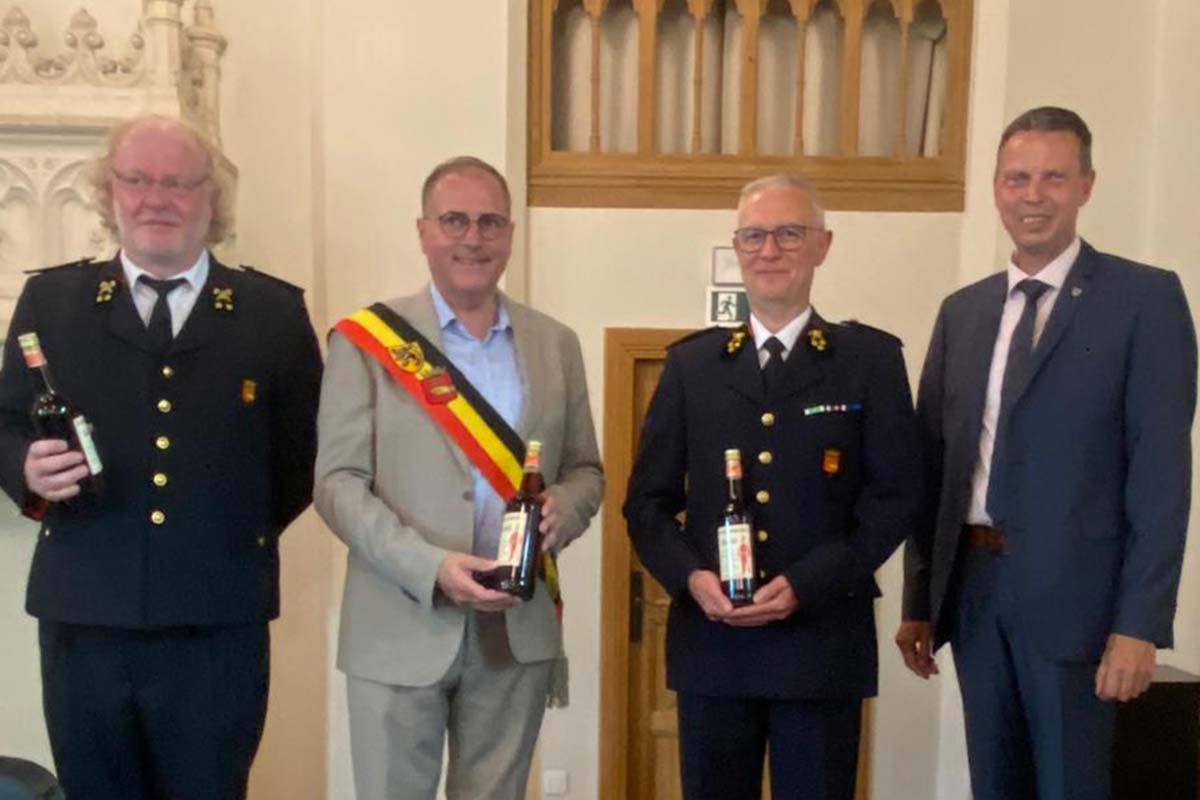 Der offizielle Festakt fand am Samstagabend im Rathaus von Poperinge statt. Beim anschließenden Festbankett verliehen Bürgermeister Christoph Dejaegher und Feuerwehrkommandant Capitain Bart Couwet das Goldene Ehrenzeichen der Flämischen Feuerwehrvereinigung an mehrere deutsche und französische Feuerwehrleute – eine besondere Anerkennung für jahrzehntelanges Engagement über Grenzen hinweg.