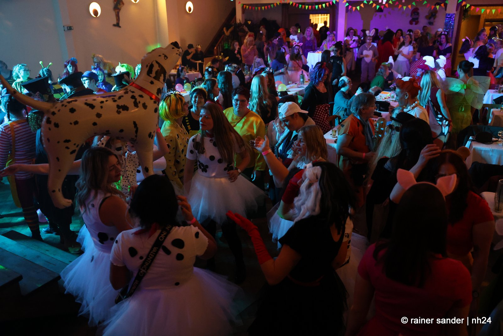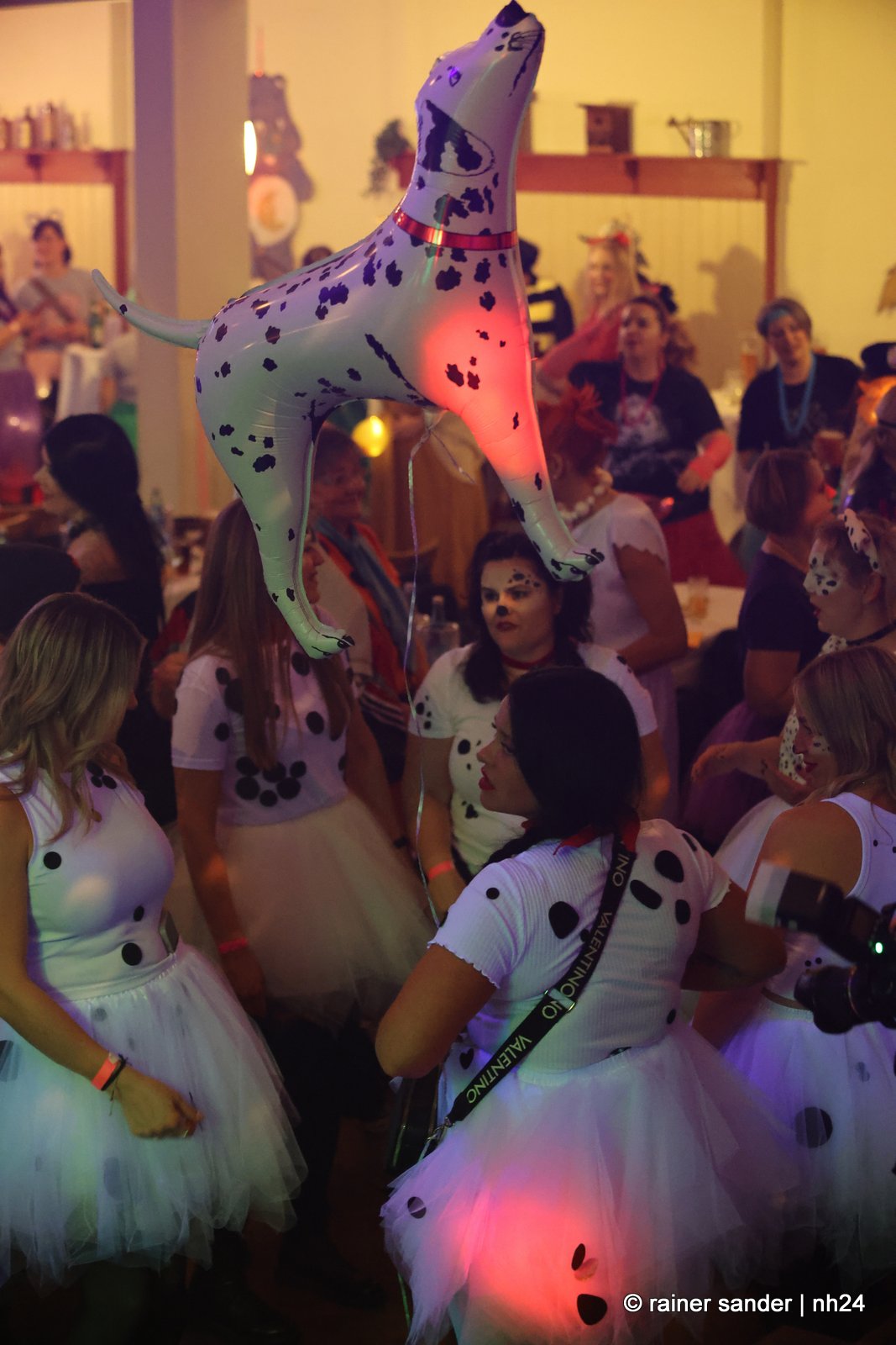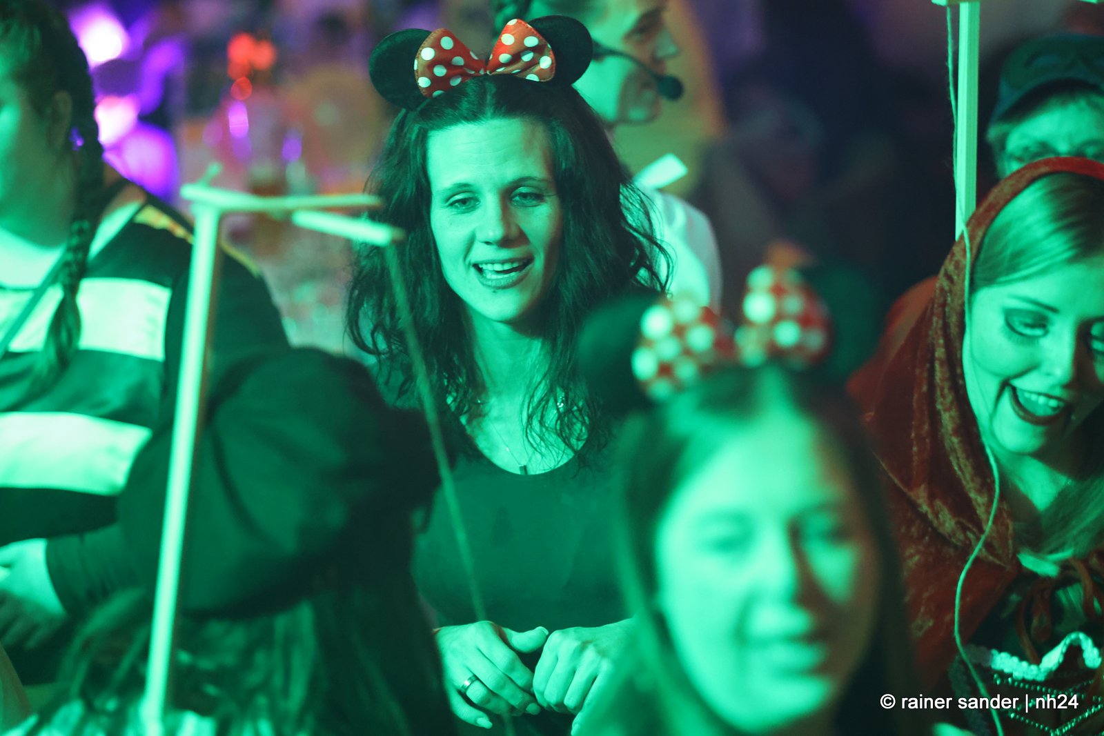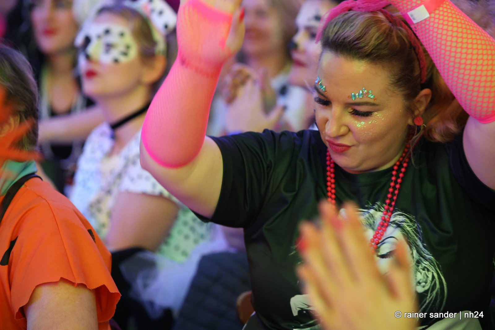 Stefanie Kutarba führte souverän durchs Programm, während Heidi Klum (Sabrina Wischrath) und Bruce Darnell (Yvonne Romanovic) die Show moderierten. Dazu gehörte auch die Prämierung der besten Kostüme. Vetter Itt aus der Addams Family (Kati Fenchel) gewann bei Solokostümen Peter Lustig bei den Gruppen vor den 1001 Dalmatinern. Gefeiert wurde bis tief in die Nacht im Hassia …