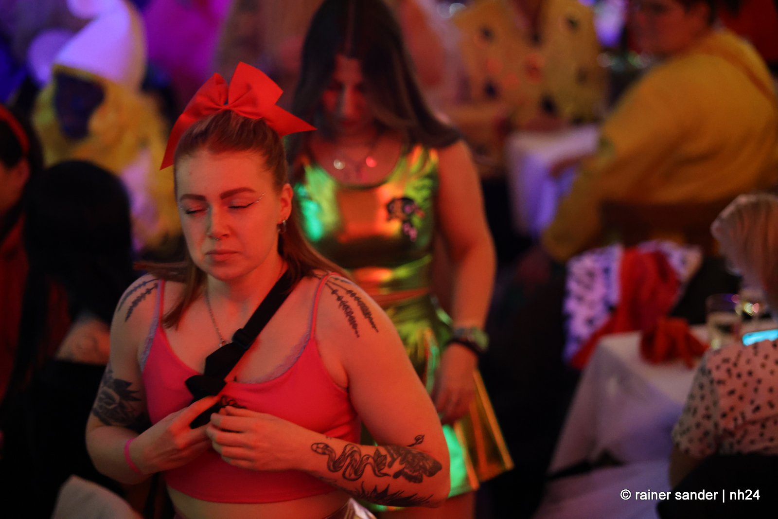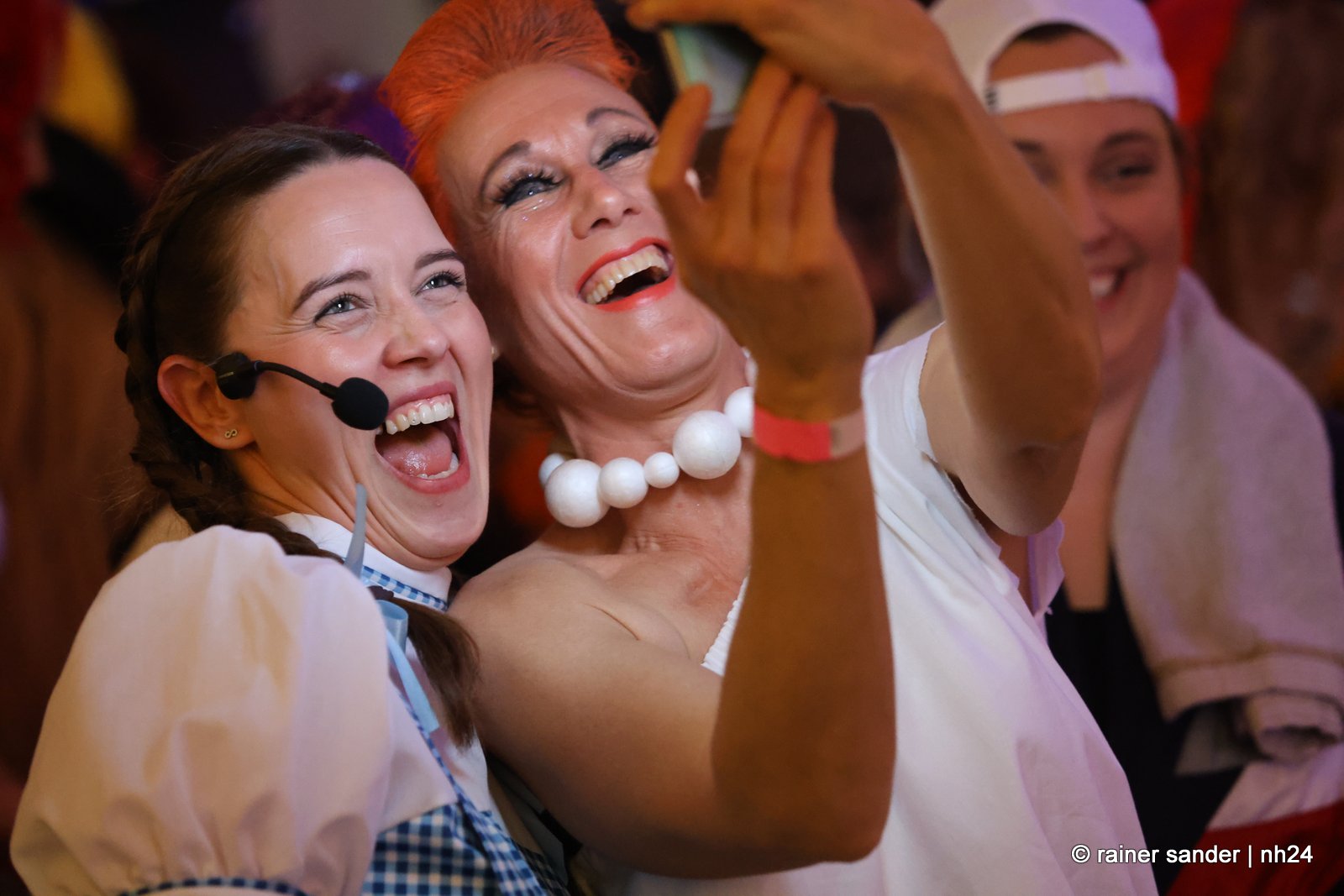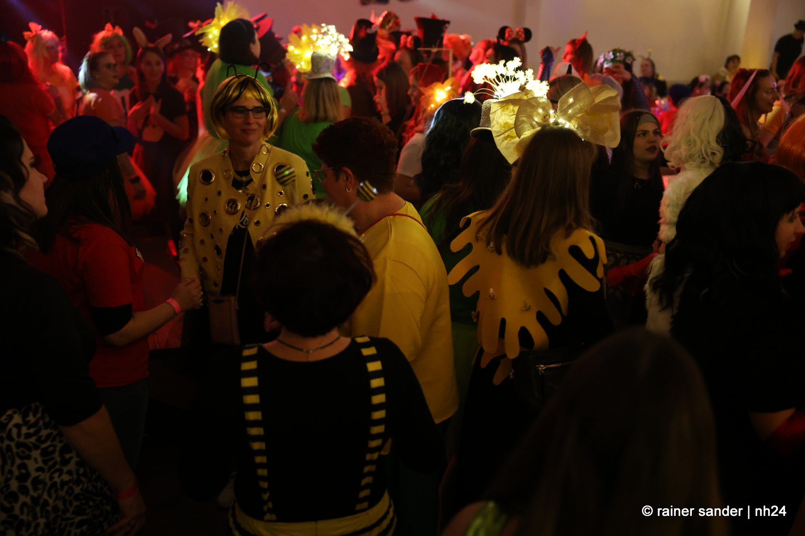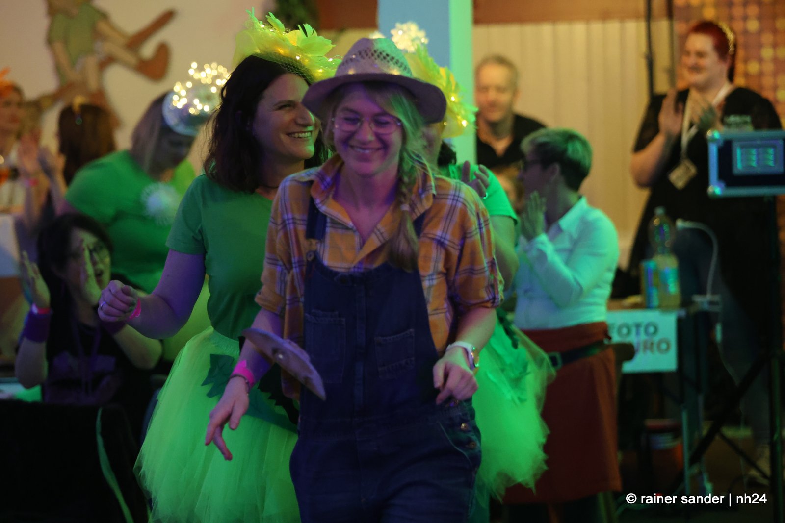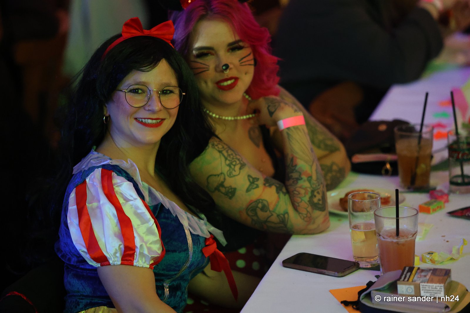 Stefanie Kutarba führte souverän durchs Programm, während Heidi Klum (Sabrina Wischrath) und Bruce Darnell (Yvonne Romanovic) die Show moderierten. Dazu gehörte auch die Prämierung der besten Kostüme. Vetter Itt aus der Addams Family (Kati Fenchel) gewann bei Solokostümen Peter Lustig bei den Gruppen vor den 1001 Dalmatinern. Gefeiert wurde bis tief in die Nacht im Hassia …
