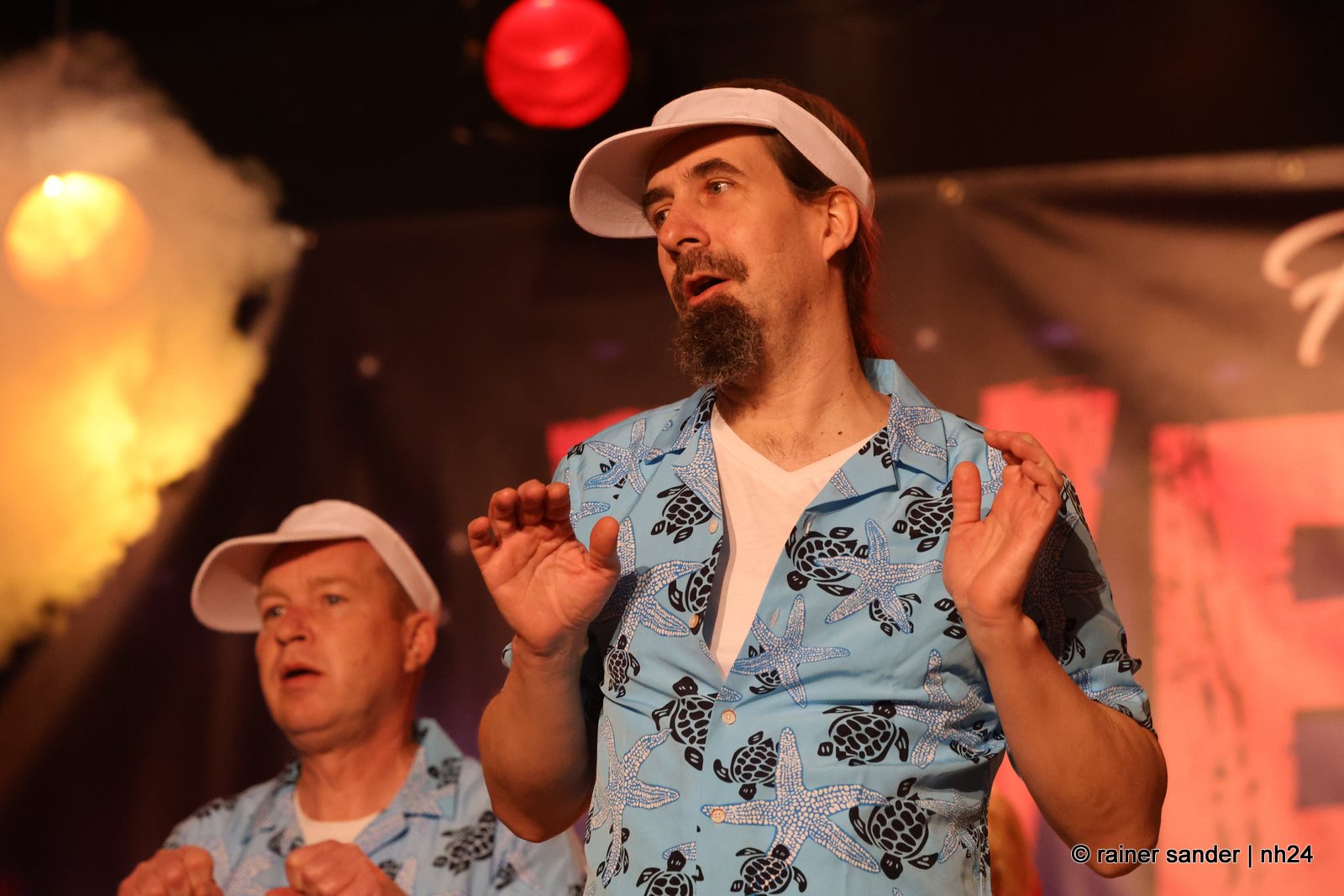 Einen Tag später nämlich haben die strammen Waden, Bizepse, Sixpacks und strammen Popos ihre Pflicht im heimischen Karneval erledigt … In Frielendorf folgt dann ganz entspannt die Kür! So haben der FCV und vor allem das Frielendorfer Männerballett „Fresh Mett Boys“ schon vor Corona im Jahr 2019 das erste „Männerballettfestival“ mit dem ersten Frielendorfer Weiberfasching organisiert. Gestern Abend hatten die frischen Jungs vom Silbersee zum vierten Mal die besten Männer-Ballett-Gruppen aus dem nordhessischen Karneval eingeladen. Sieben an der Zahl waren gekommen. Eine wahrhaft biblische Glückszahl, die optischen sowie auch akustischen Genuss versprach. „Hans Albers“ sang als Opener von der Reeperbahn nachts um halb eins. So lange ging das Programm …