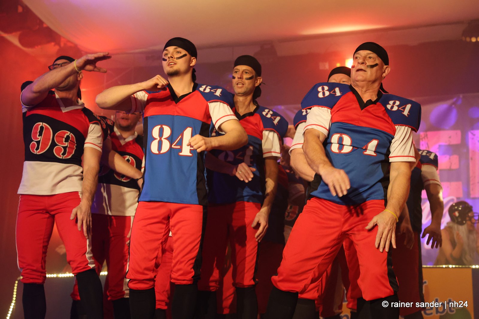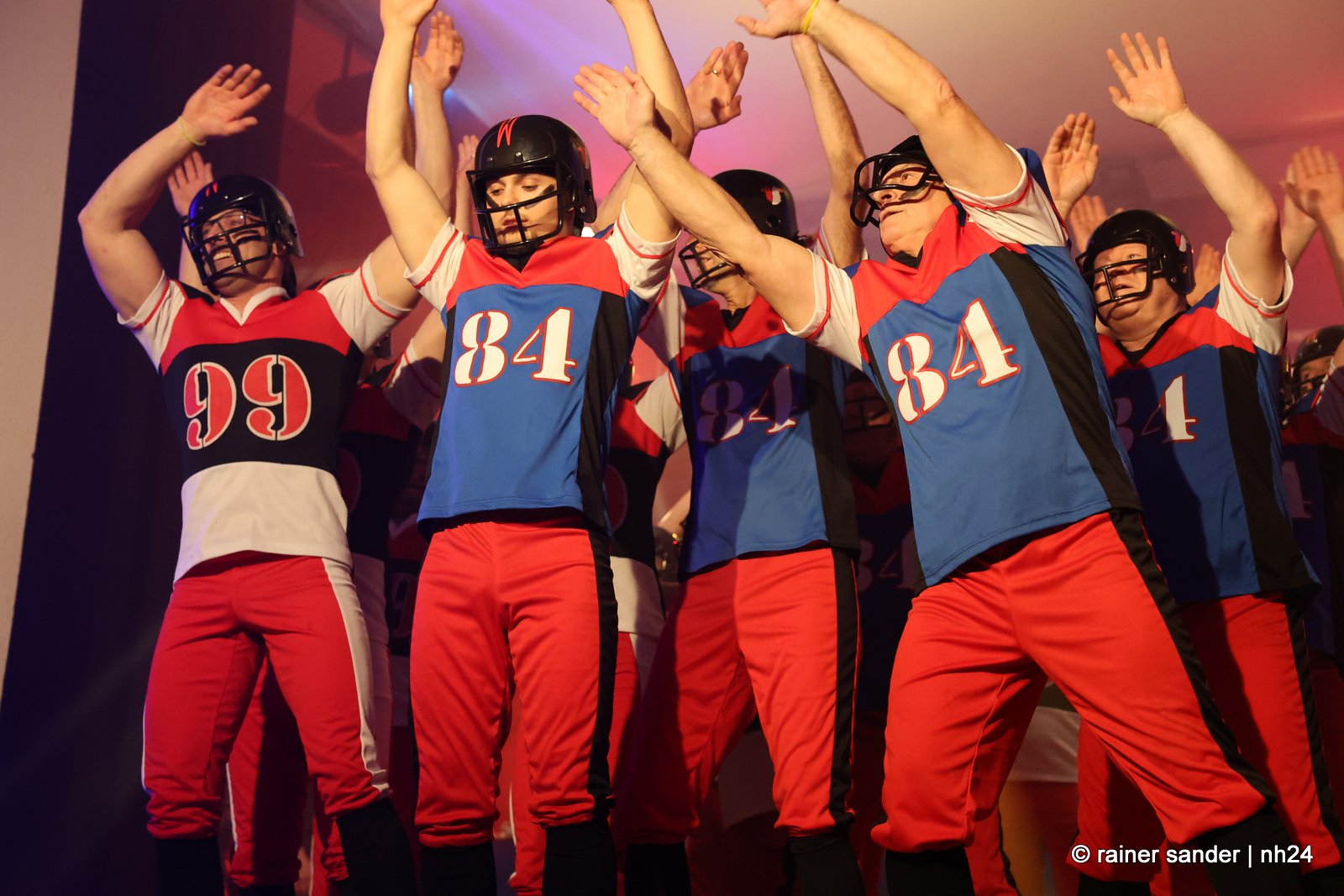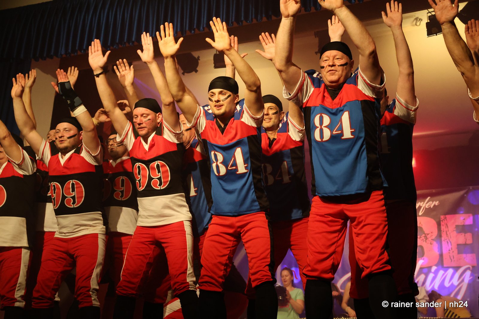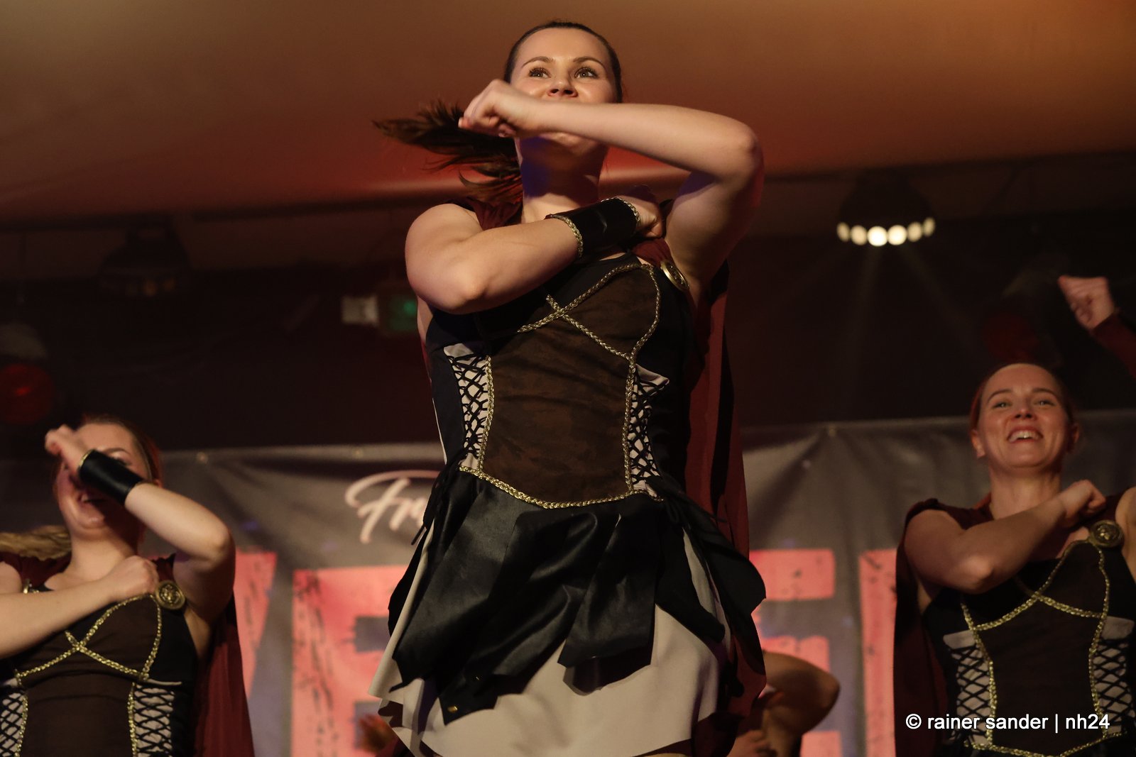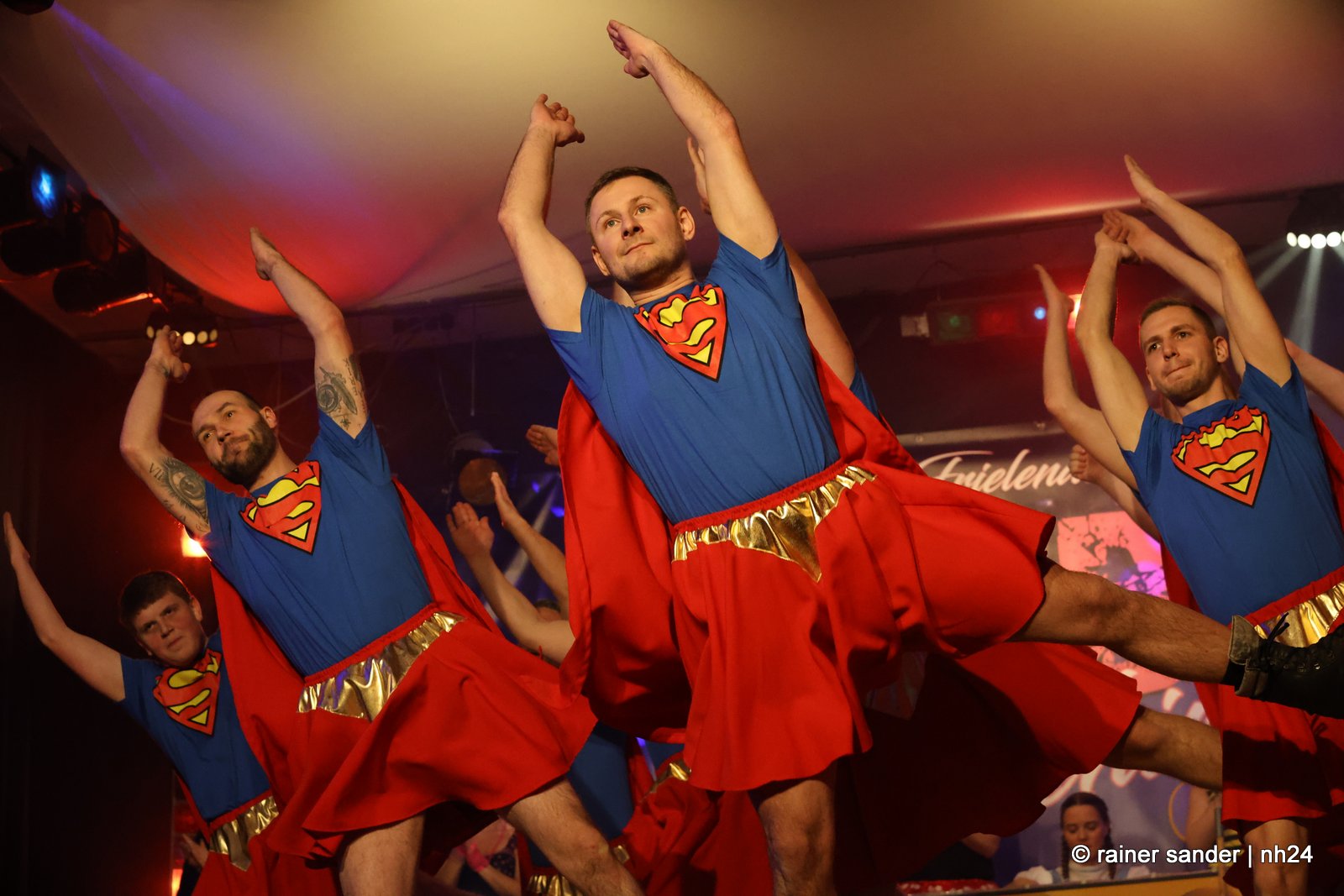 Vorbei sind die Zeiten, als die Männer im Karnevalsballett zur Erheiterung der Damenwelt ungeschickt über die Bühne stolperten. Die tanzenden Männer hat allerorts der Ehrgeiz gepackt! Die Couch-Potatoes sind zu durchtrainierten Tänzern geworden und sie gehen mit dem gleichen oder gar noch mehr Ehrgeiz zu Werke als ihre weiblichen Pendants. Gott bewahre, es wird nichts kopiert, was die Tanzgarden auf die Bühne zaubern, es wird auch nicht Marsch getanzt: Es ist Showtime! Und wenn sich Kraft mit Eleganz vereinen und literweise Trainingsschweiß geflossen ist, dann wird das gut! Ganz offensichtlich ist nicht nur während Corona, sondern auch 2023 und 2024 die eine oder andere Trainingsstunde hinzugekommen. Was die Frielendorfer Weiber zu sehen bekamen, war – wie immer – pure Freude, ausgelassene Stimmung und Athletik auf maximalem Niveau.