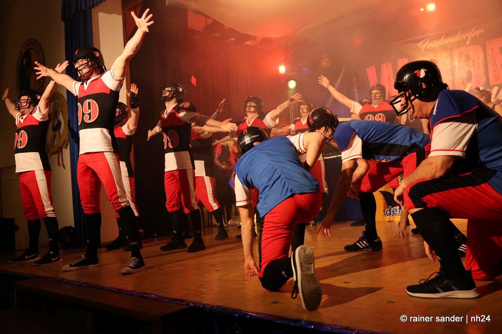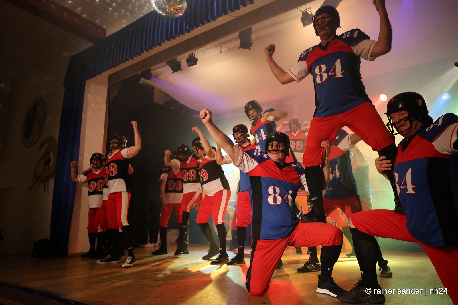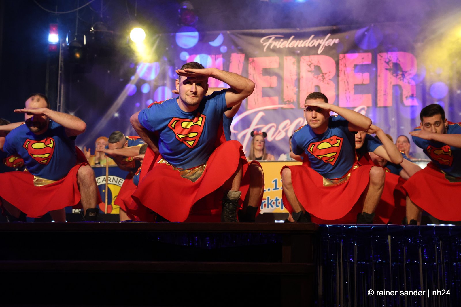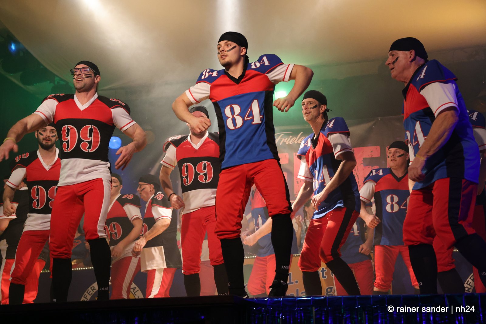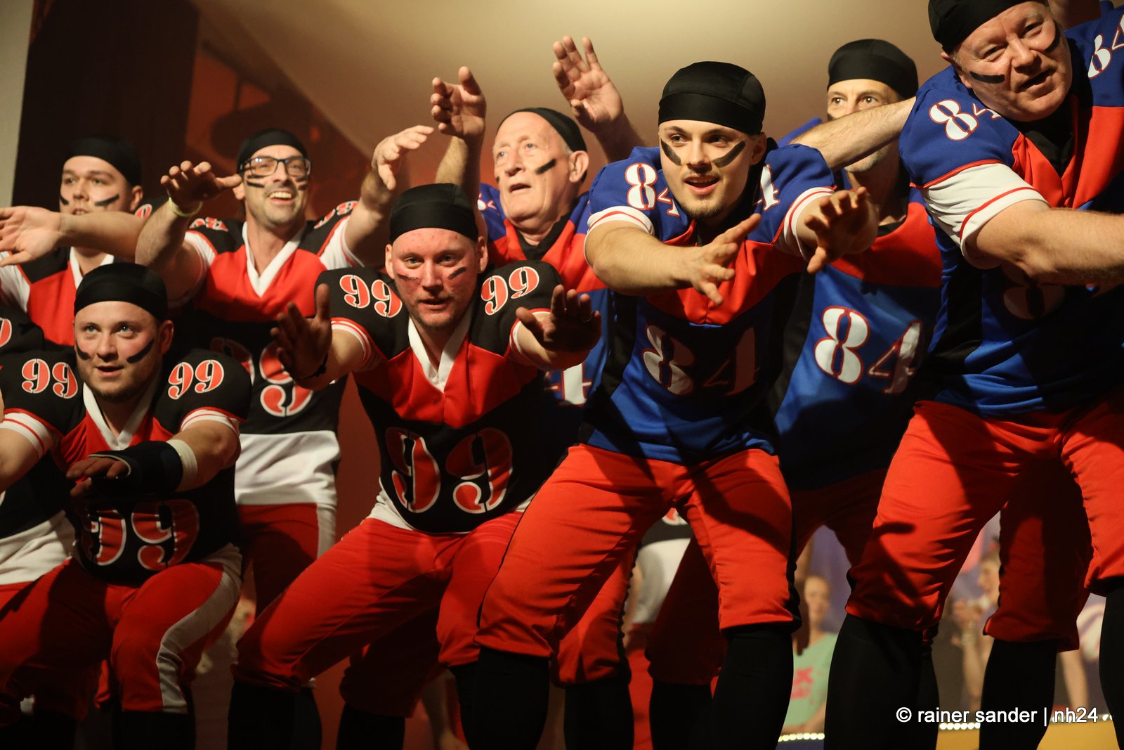 Vorbei sind die Zeiten, als die Männer im Karnevalsballett zur Erheiterung der Damenwelt ungeschickt über die Bühne stolperten. Die tanzenden Männer hat allerorts der Ehrgeiz gepackt! Die Couch-Potatoes sind zu durchtrainierten Tänzern geworden und sie gehen mit dem gleichen oder gar noch mehr Ehrgeiz zu Werke als ihre weiblichen Pendants. Gott bewahre, es wird nichts kopiert, was die Tanzgarden auf die Bühne zaubern, es wird auch nicht Marsch getanzt: Es ist Showtime! Und wenn sich Kraft mit Eleganz vereinen und literweise Trainingsschweiß geflossen ist, dann wird das gut! Ganz offensichtlich ist nicht nur während Corona, sondern auch 2023 und 2024 die eine oder andere Trainingsstunde hinzugekommen. Was die Frielendorfer Weiber zu sehen bekamen, war – wie immer – pure Freude, ausgelassene Stimmung und Athletik auf maximalem Niveau.