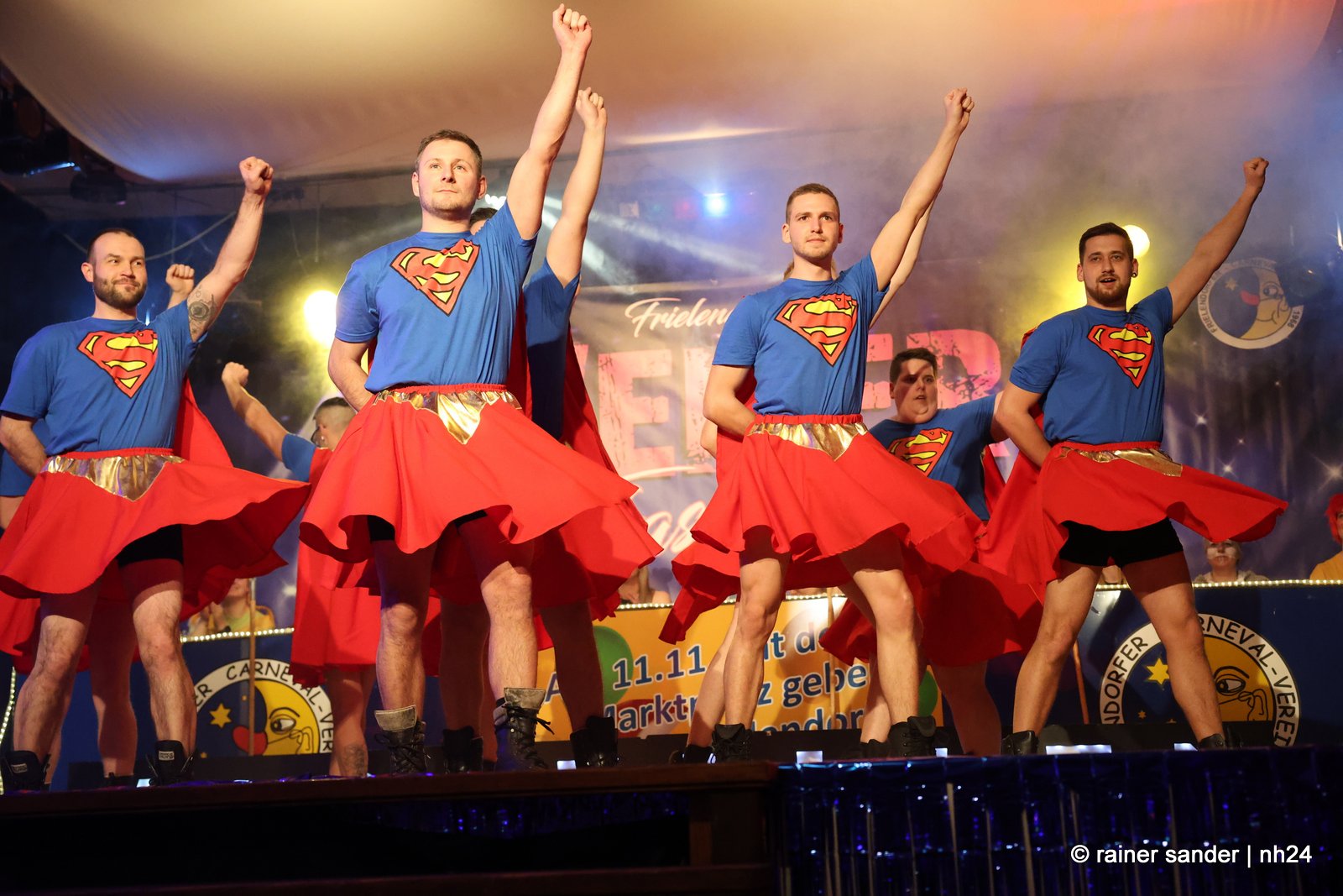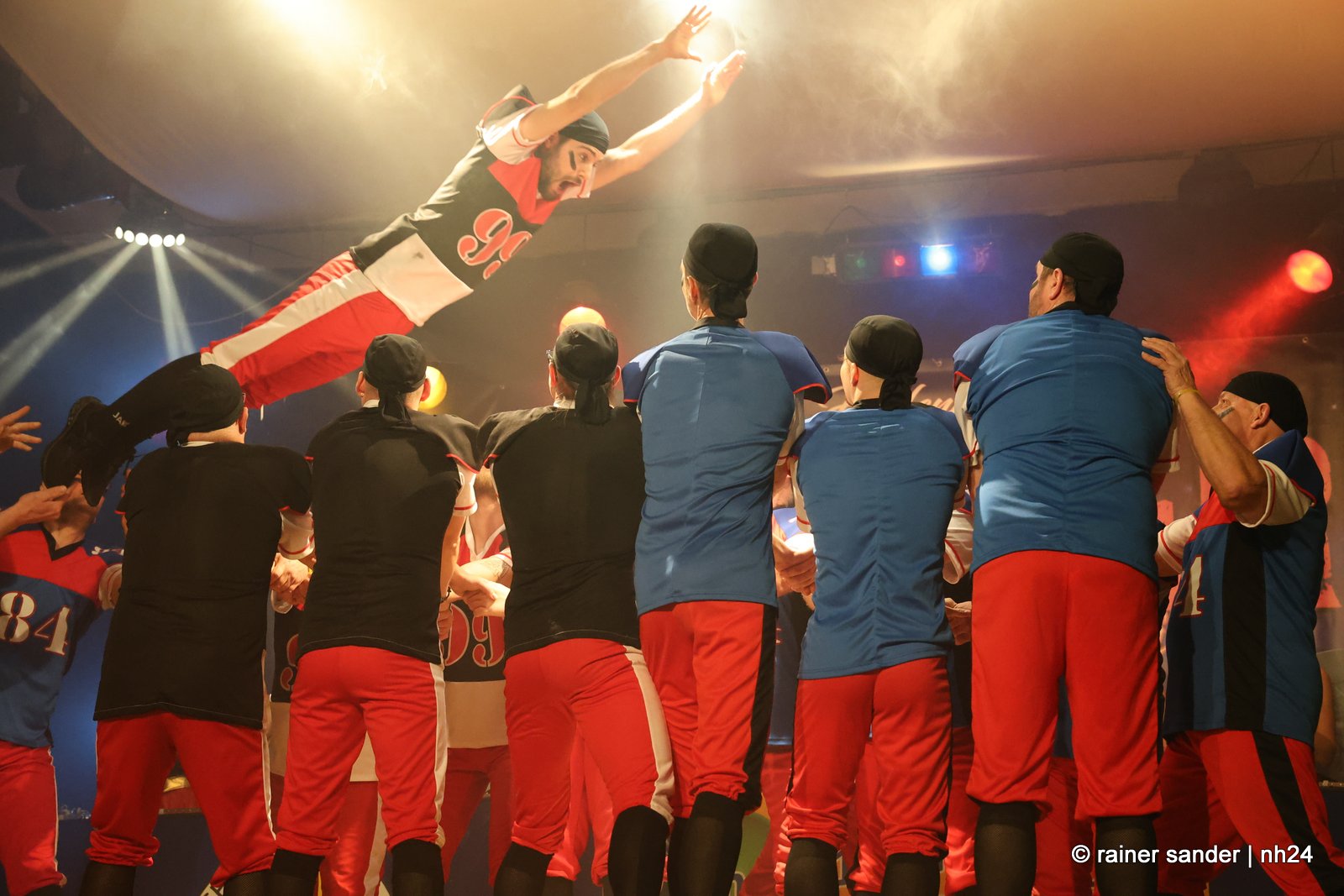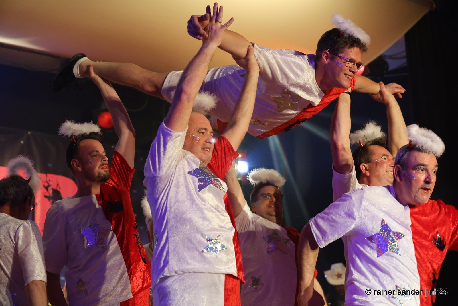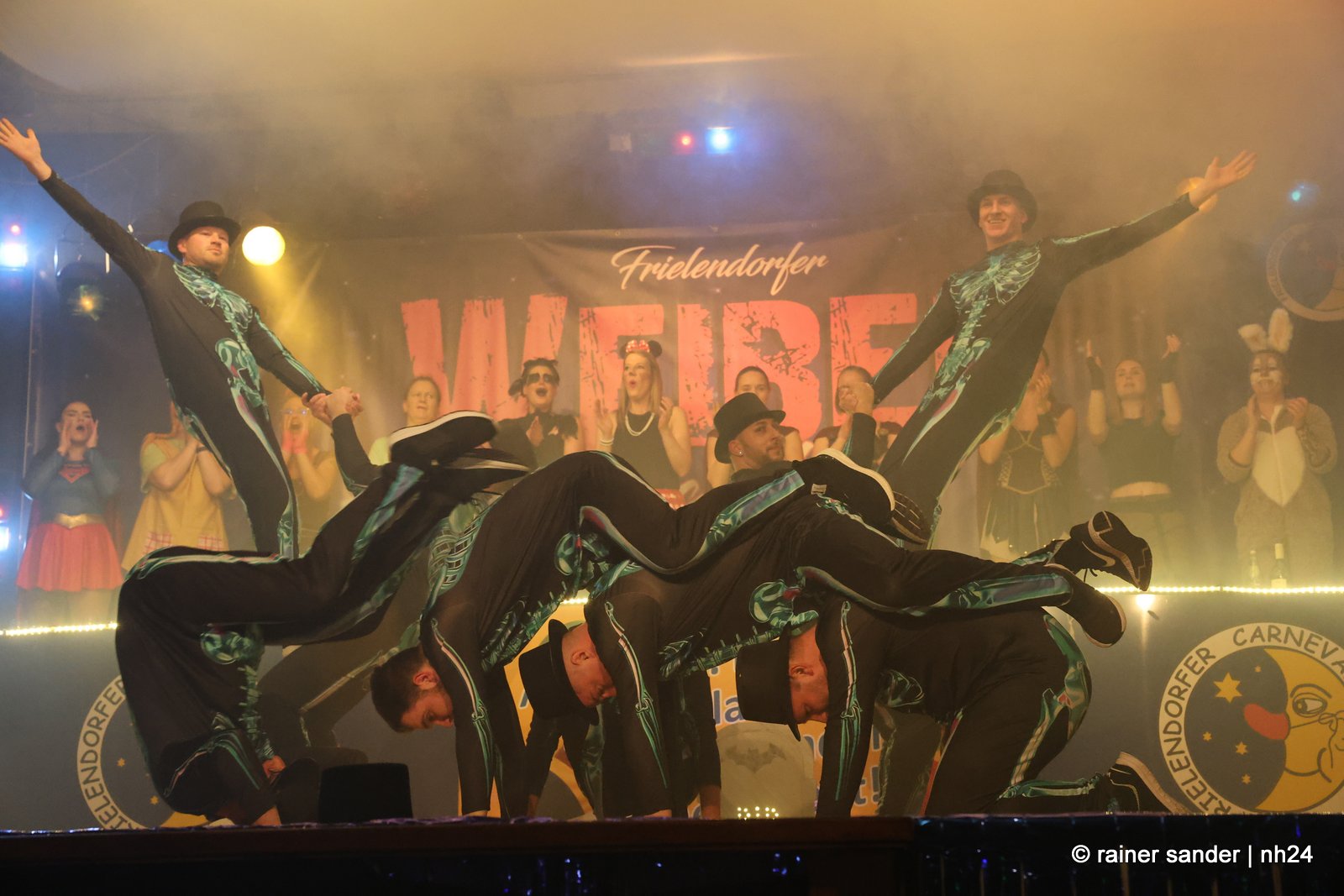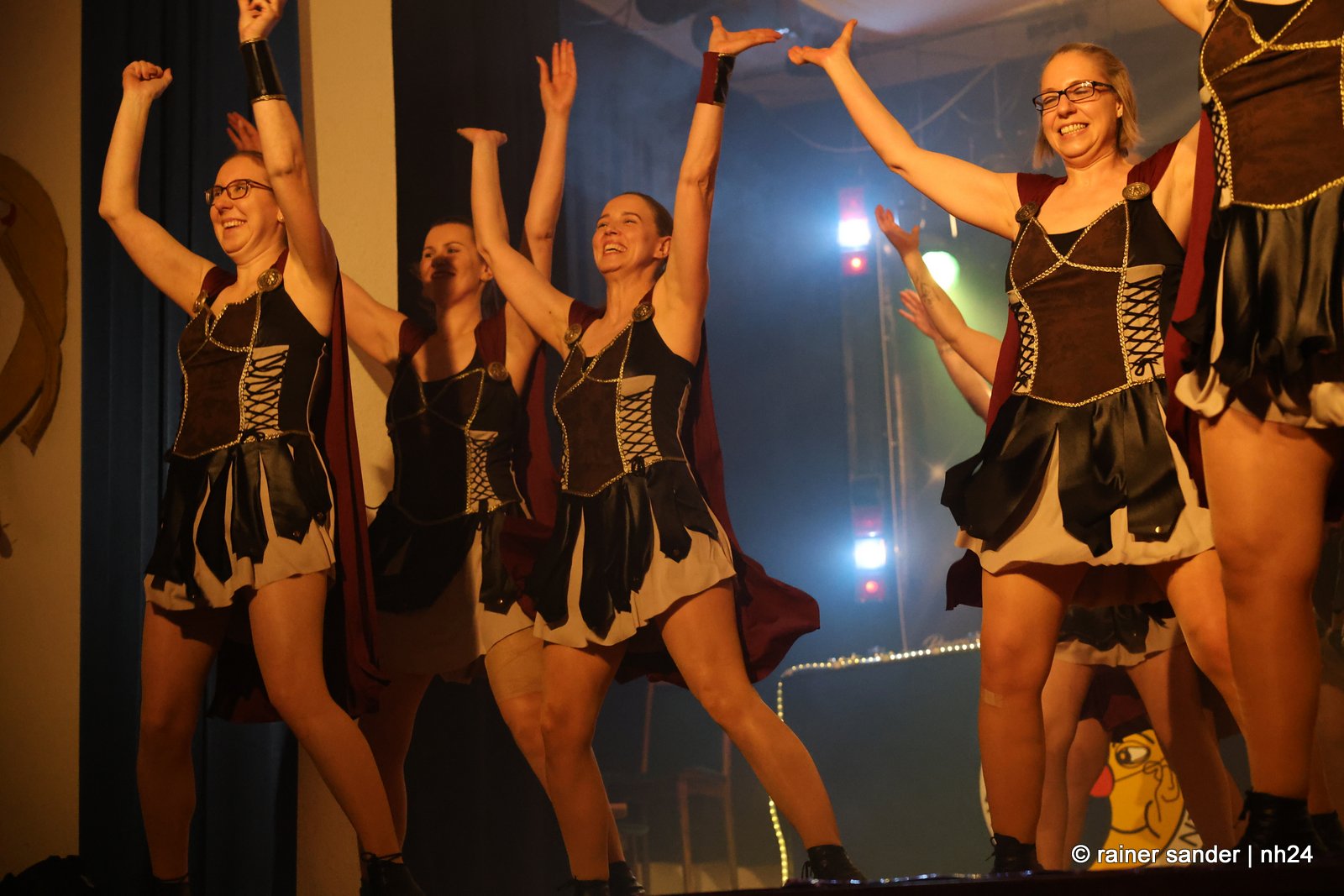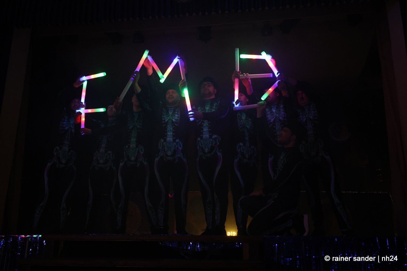 Vorbei sind die Zeiten, als die Männer im Karnevalsballett zur Erheiterung der Damenwelt ungeschickt über die Bühne stolperten. Die tanzenden Männer hat allerorts der Ehrgeiz gepackt! Die Couch-Potatoes sind zu durchtrainierten Tänzern geworden und sie gehen mit dem gleichen oder gar noch mehr Ehrgeiz zu Werke als ihre weiblichen Pendants. Gott bewahre, es wird nichts kopiert, was die Tanzgarden auf die Bühne zaubern, es wird auch nicht Marsch getanzt: Es ist Showtime! Und wenn sich Kraft mit Eleganz vereinen und literweise Trainingsschweiß geflossen ist, dann wird das gut! Ganz offensichtlich ist nicht nur während Corona, sondern auch 2023 und 2024 die eine oder andere Trainingsstunde hinzugekommen. Was die Frielendorfer Weiber zu sehen bekamen, war – wie immer – pure Freude, ausgelassene Stimmung und Athletik auf maximalem Niveau.