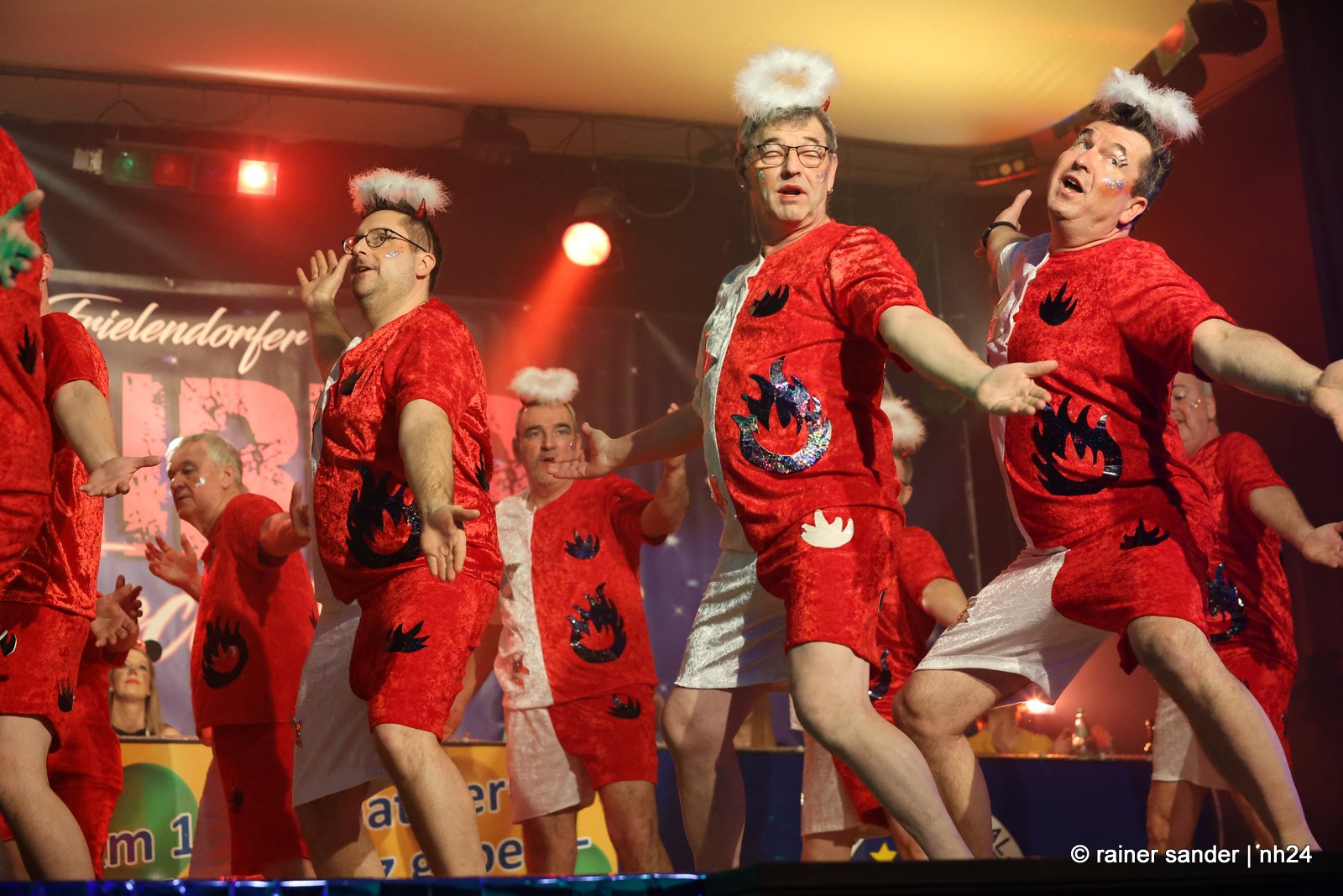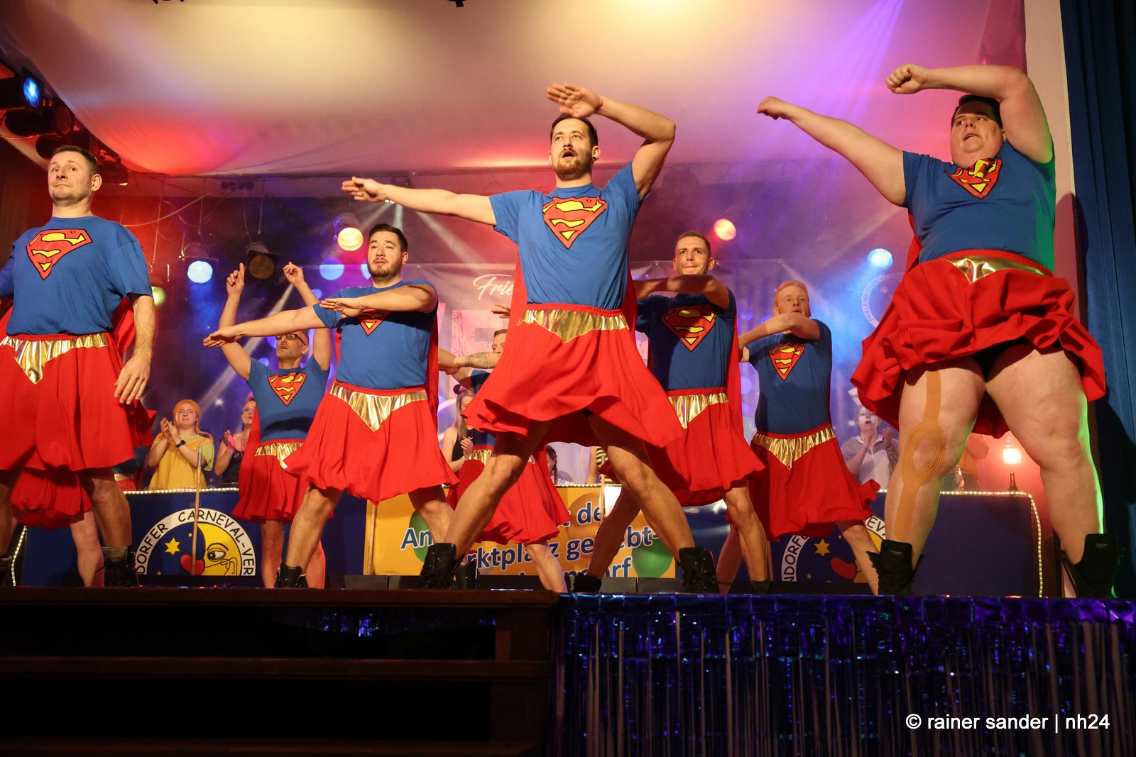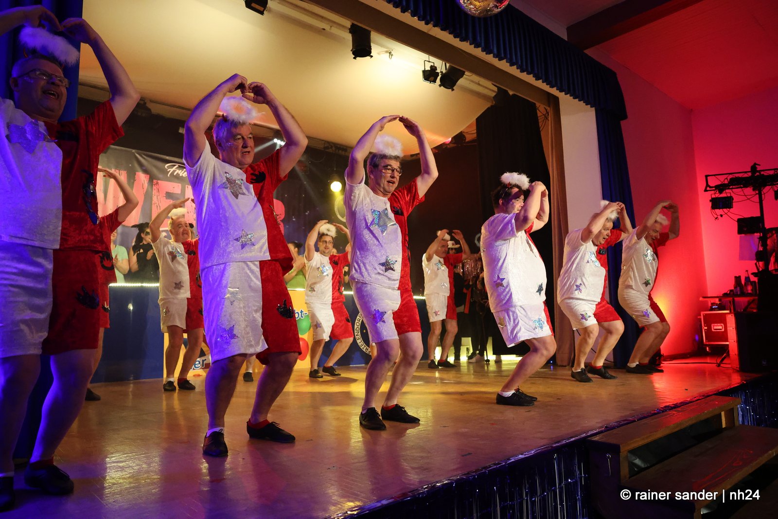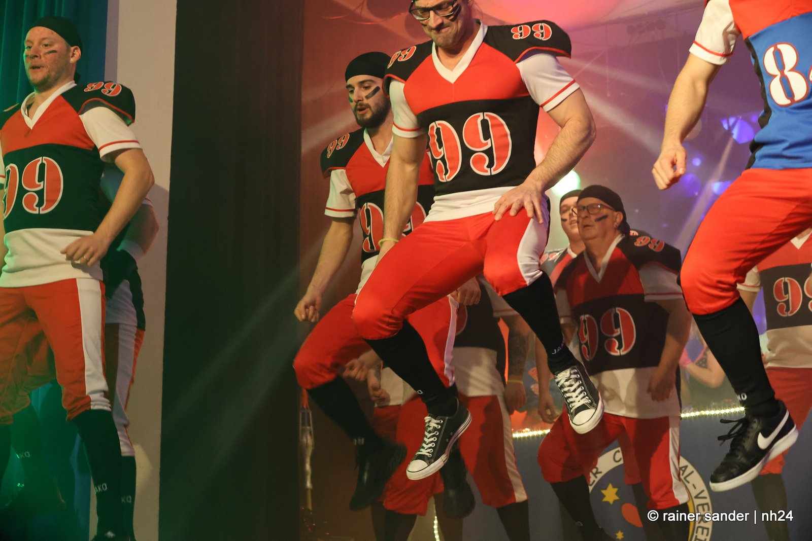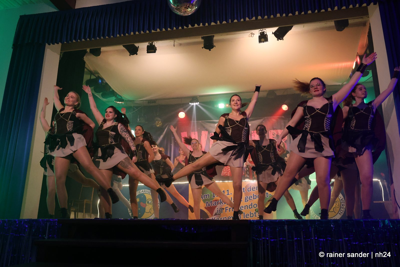 Vorbei sind die Zeiten, als die Männer im Karnevalsballett zur Erheiterung der Damenwelt ungeschickt über die Bühne stolperten. Die tanzenden Männer hat allerorts der Ehrgeiz gepackt! Die Couch-Potatoes sind zu durchtrainierten Tänzern geworden und sie gehen mit dem gleichen oder gar noch mehr Ehrgeiz zu Werke als ihre weiblichen Pendants. Gott bewahre, es wird nichts kopiert, was die Tanzgarden auf die Bühne zaubern, es wird auch nicht Marsch getanzt: Es ist Showtime! Und wenn sich Kraft mit Eleganz vereinen und literweise Trainingsschweiß geflossen ist, dann wird das gut! Ganz offensichtlich ist nicht nur während Corona, sondern auch 2023 und 2024 die eine oder andere Trainingsstunde hinzugekommen. Was die Frielendorfer Weiber zu sehen bekamen, war – wie immer – pure Freude, ausgelassene Stimmung und Athletik auf maximalem Niveau.