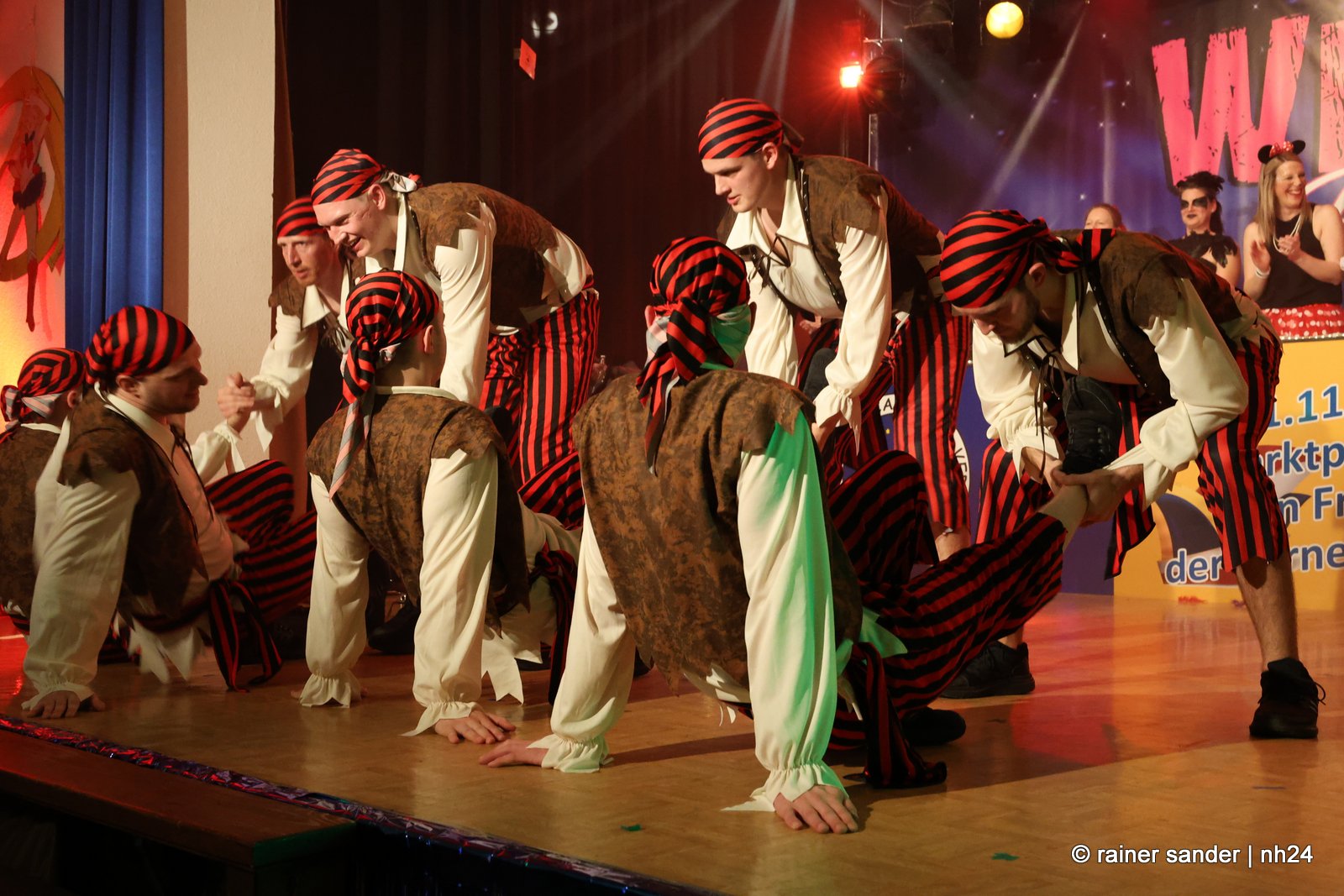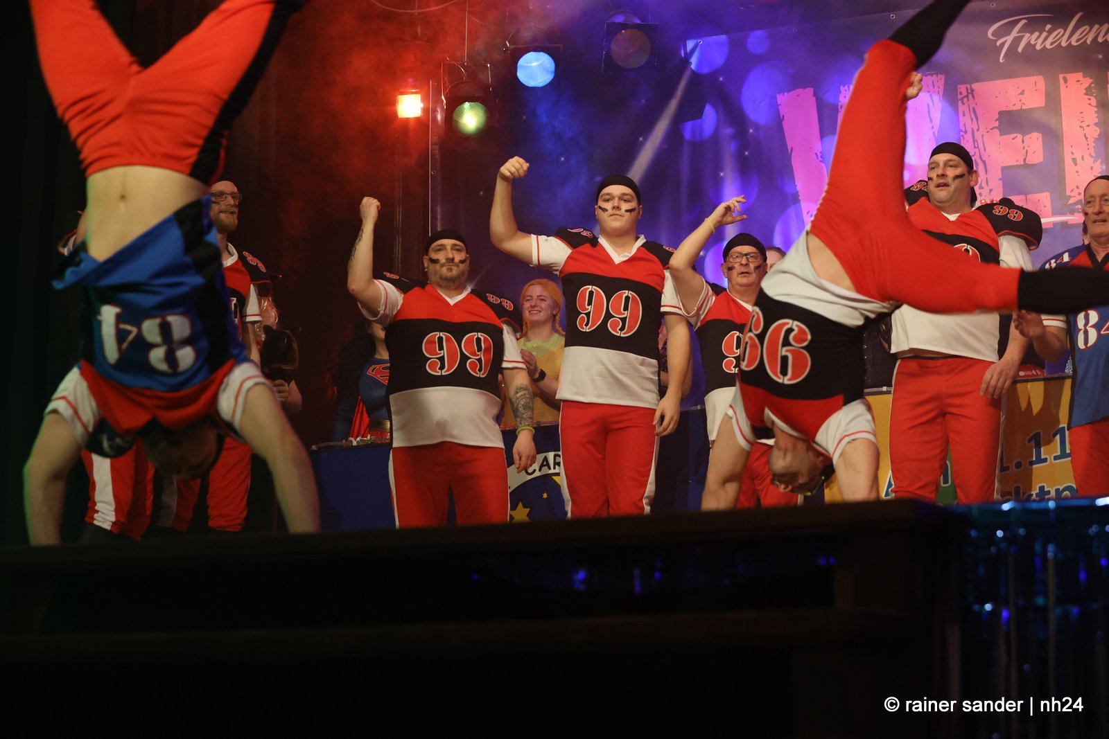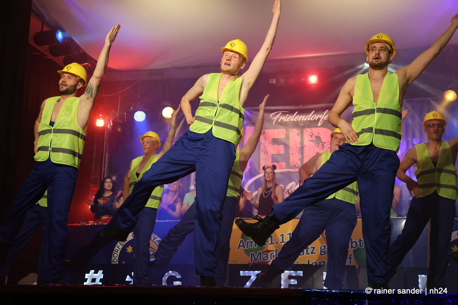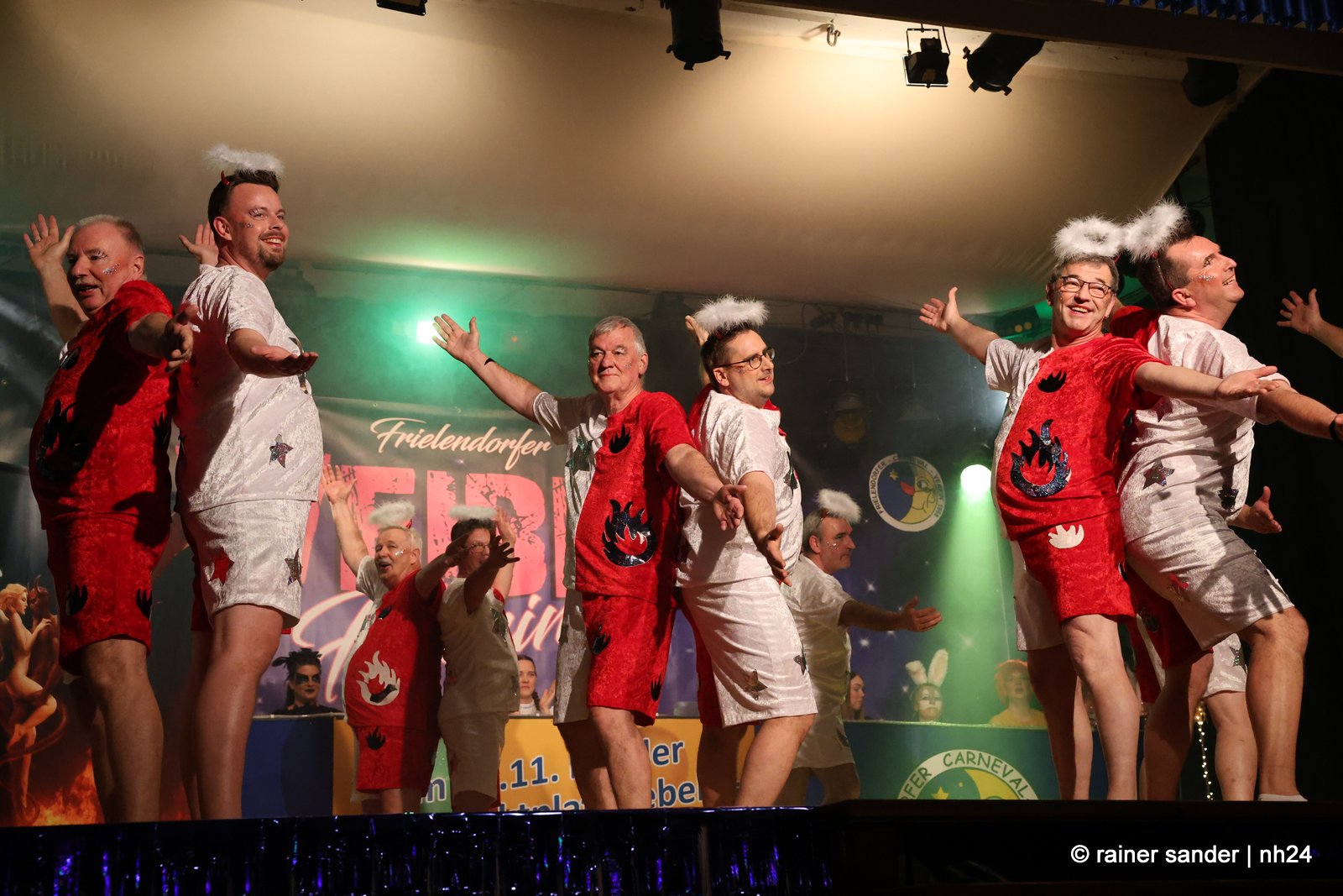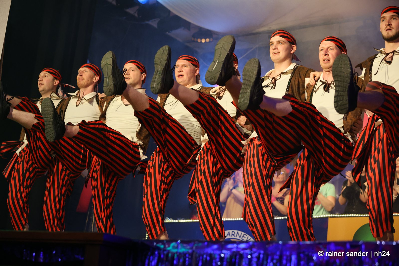 Vorbei sind die Zeiten, als die Männer im Karnevalsballett zur Erheiterung der Damenwelt ungeschickt über die Bühne stolperten. Die tanzenden Männer hat allerorts der Ehrgeiz gepackt! Die Couch-Potatoes sind zu durchtrainierten Tänzern geworden und sie gehen mit dem gleichen oder gar noch mehr Ehrgeiz zu Werke als ihre weiblichen Pendants. Gott bewahre, es wird nichts kopiert, was die Tanzgarden auf die Bühne zaubern, es wird auch nicht Marsch getanzt: Es ist Showtime! Und wenn sich Kraft mit Eleganz vereinen und literweise Trainingsschweiß geflossen ist, dann wird das gut! Ganz offensichtlich ist nicht nur während Corona, sondern auch 2023 und 2024 die eine oder andere Trainingsstunde hinzugekommen. Was die Frielendorfer Weiber zu sehen bekamen, war – wie immer – pure Freude, ausgelassene Stimmung und Athletik auf maximalem Niveau.
