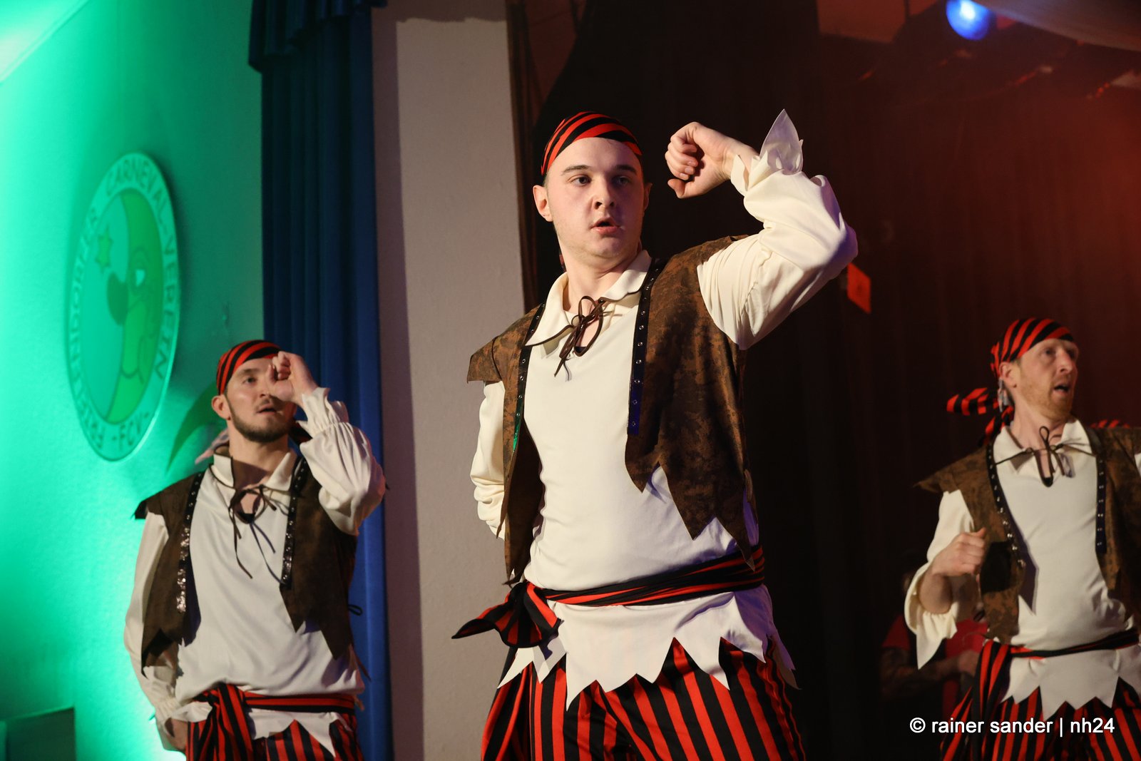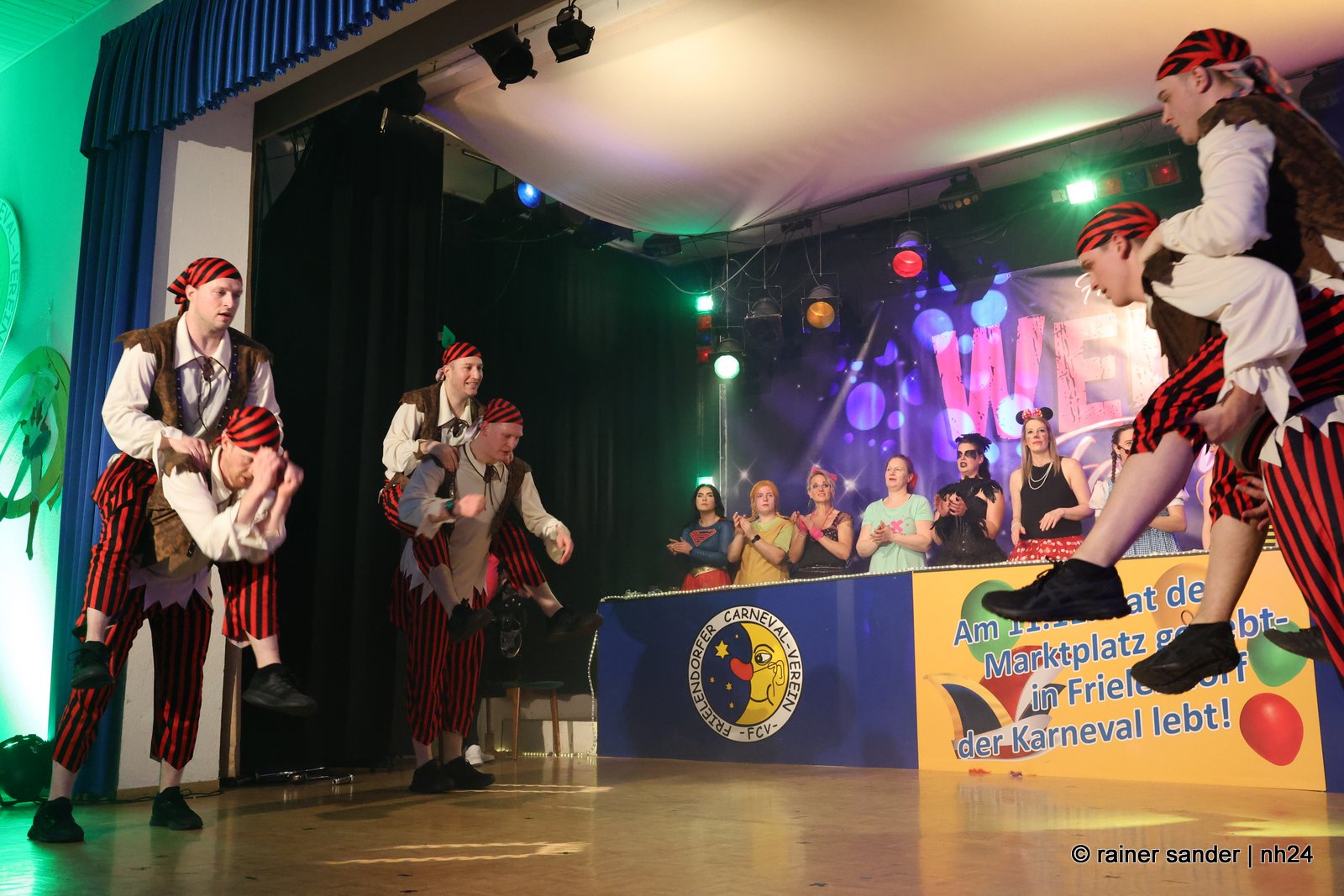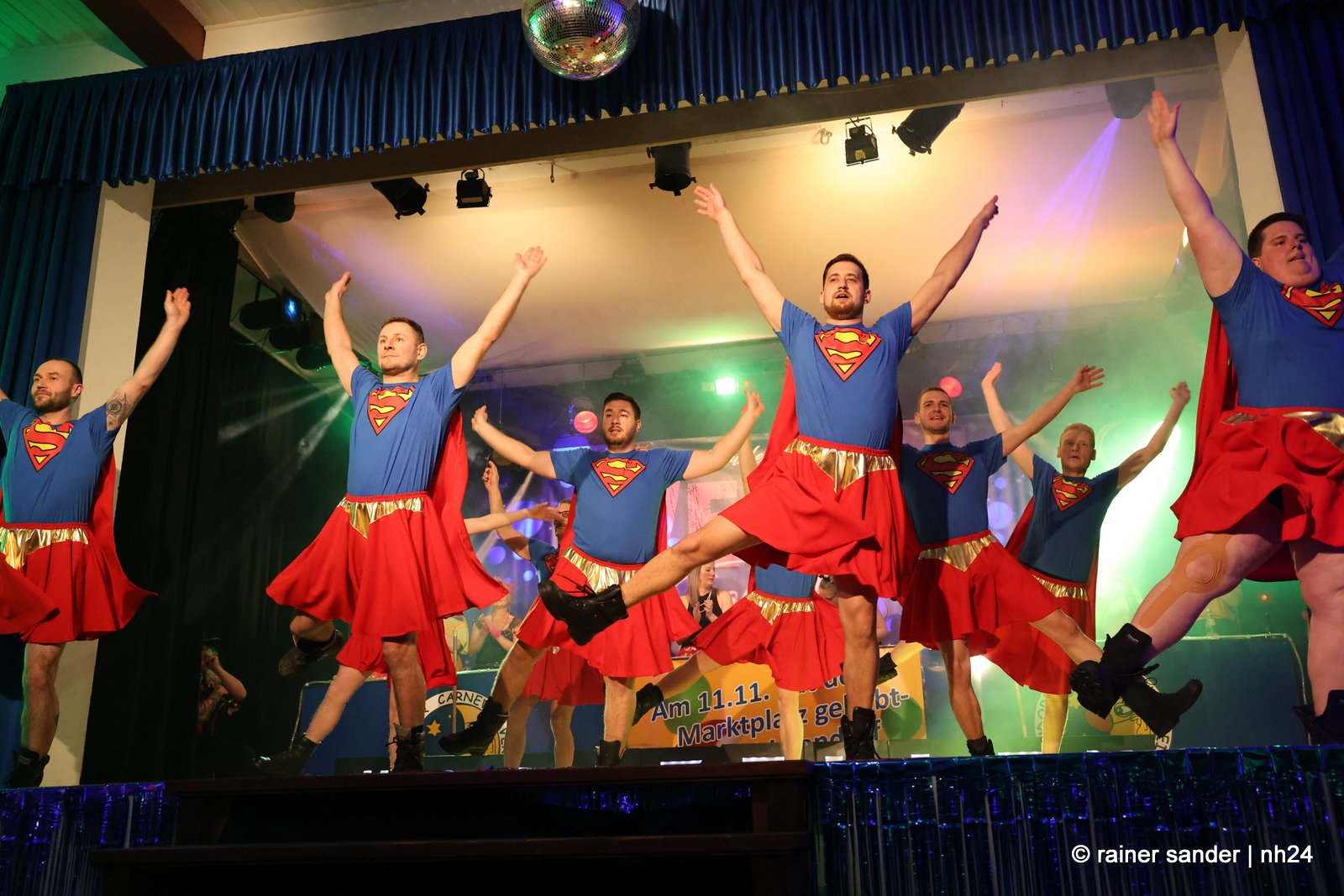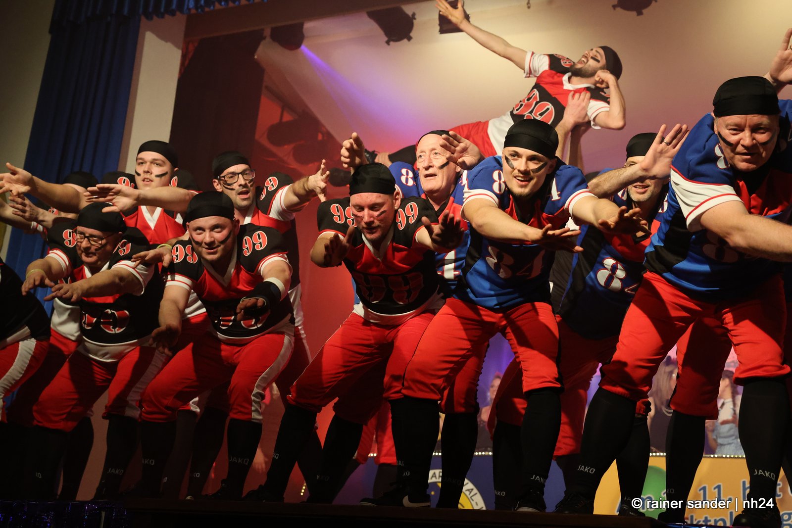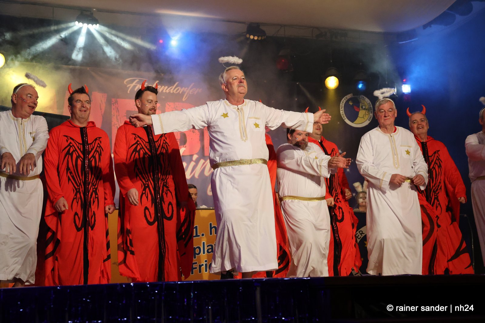 Vorbei sind die Zeiten, als die Männer im Karnevalsballett zur Erheiterung der Damenwelt ungeschickt über die Bühne stolperten. Die tanzenden Männer hat allerorts der Ehrgeiz gepackt! Die Couch-Potatoes sind zu durchtrainierten Tänzern geworden und sie gehen mit dem gleichen oder gar noch mehr Ehrgeiz zu Werke als ihre weiblichen Pendants. Gott bewahre, es wird nichts kopiert, was die Tanzgarden auf die Bühne zaubern, es wird auch nicht Marsch getanzt: Es ist Showtime! Und wenn sich Kraft mit Eleganz vereinen und literweise Trainingsschweiß geflossen ist, dann wird das gut! Ganz offensichtlich ist nicht nur während Corona, sondern auch 2023 und 2024 die eine oder andere Trainingsstunde hinzugekommen. Was die Frielendorfer Weiber zu sehen bekamen, war – wie immer – pure Freude, ausgelassene Stimmung und Athletik auf maximalem Niveau.