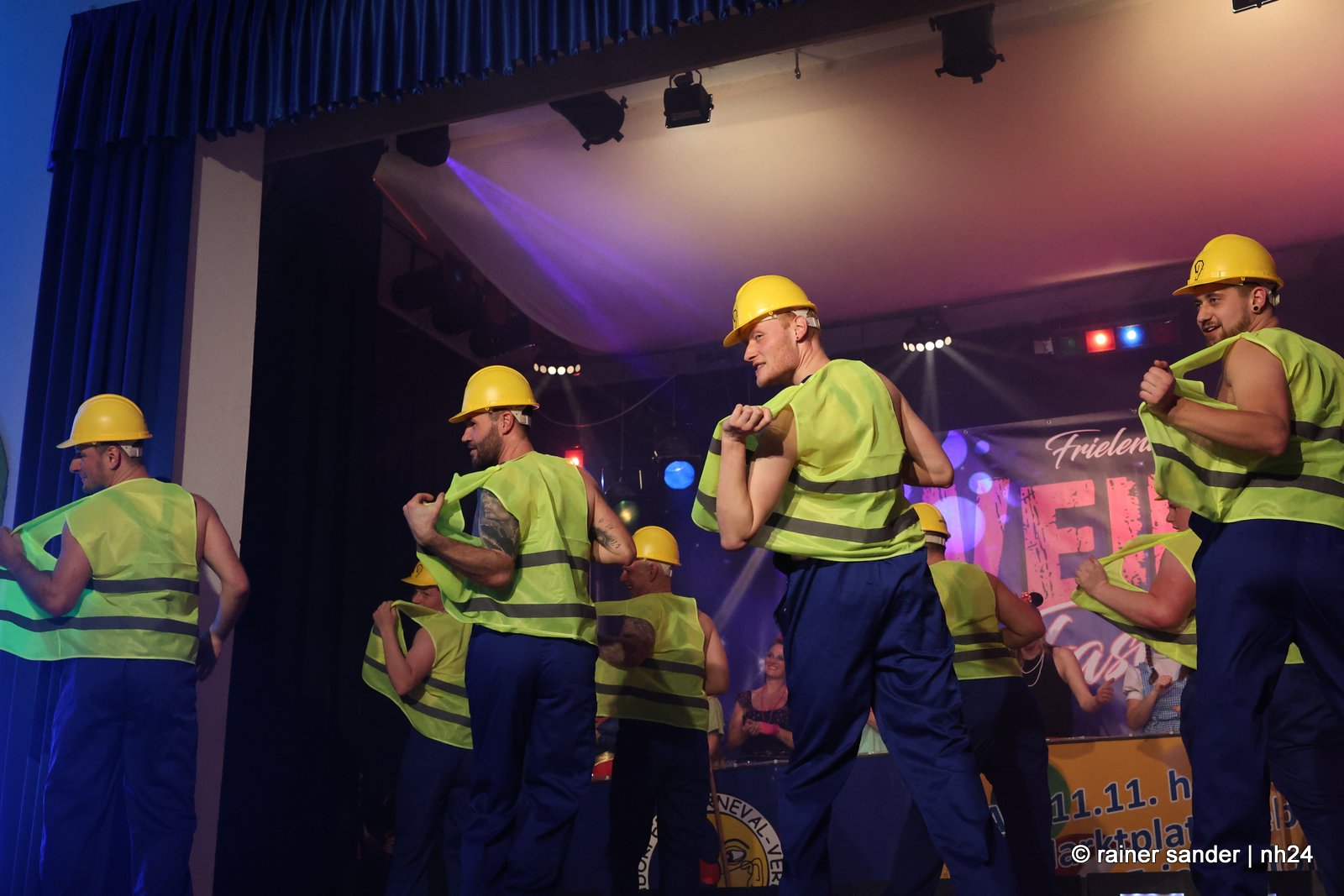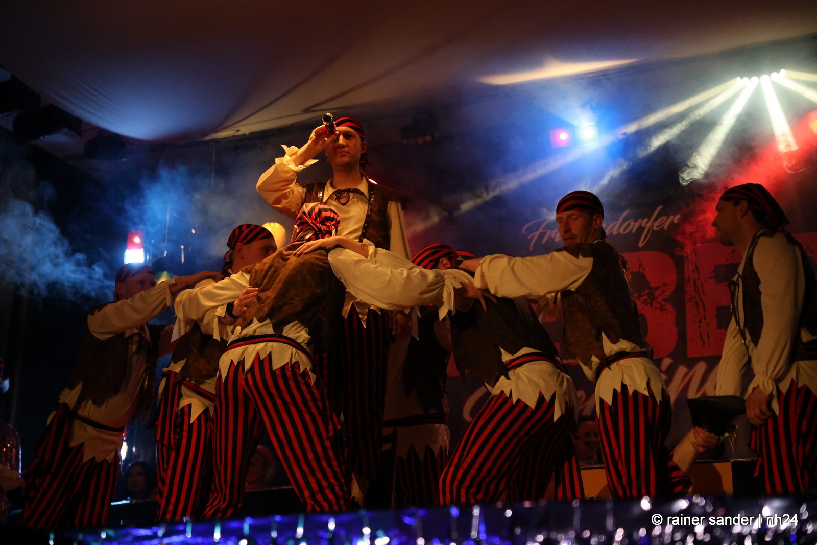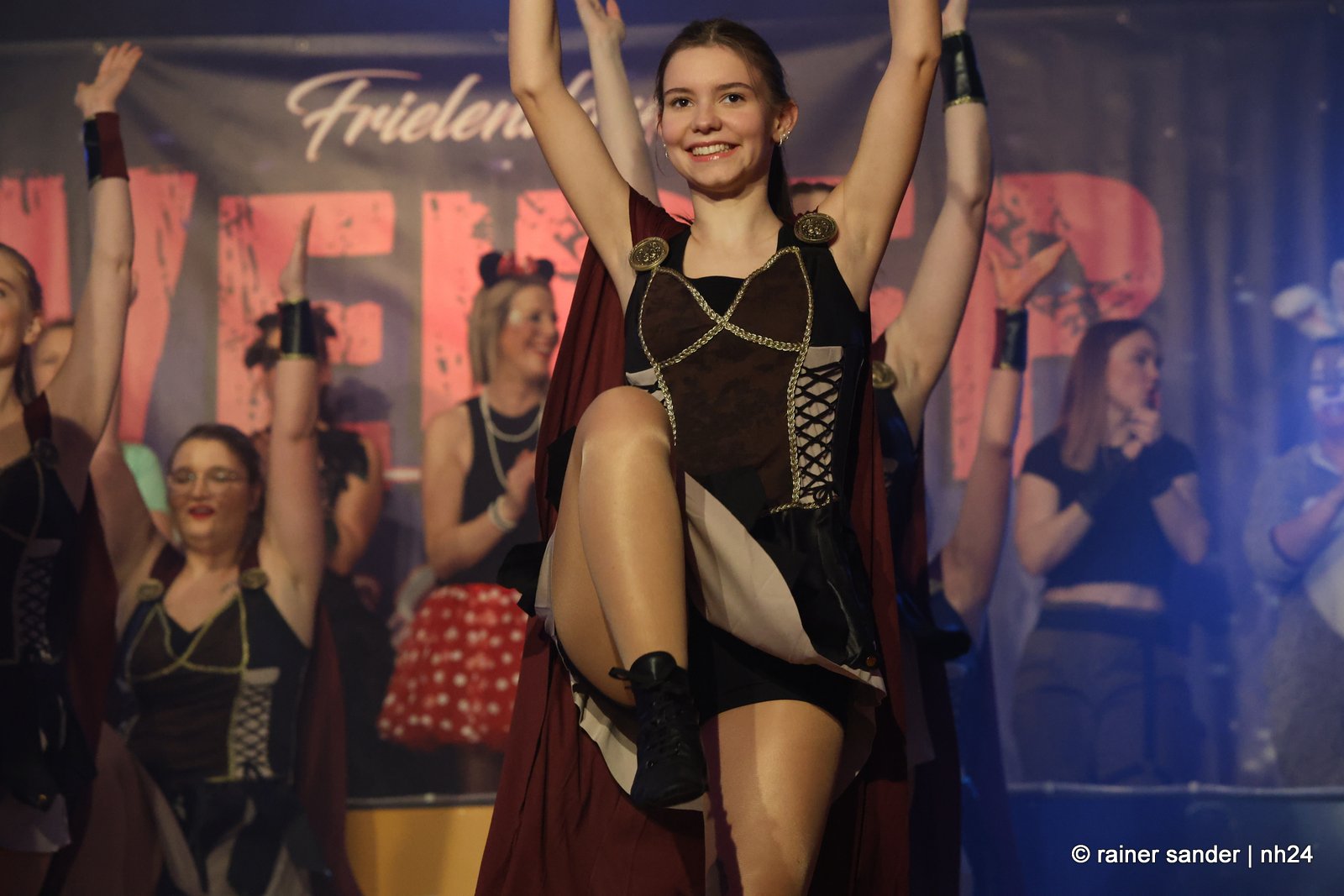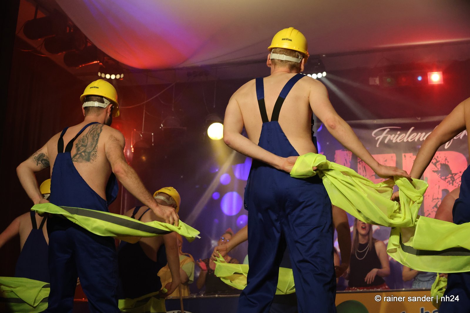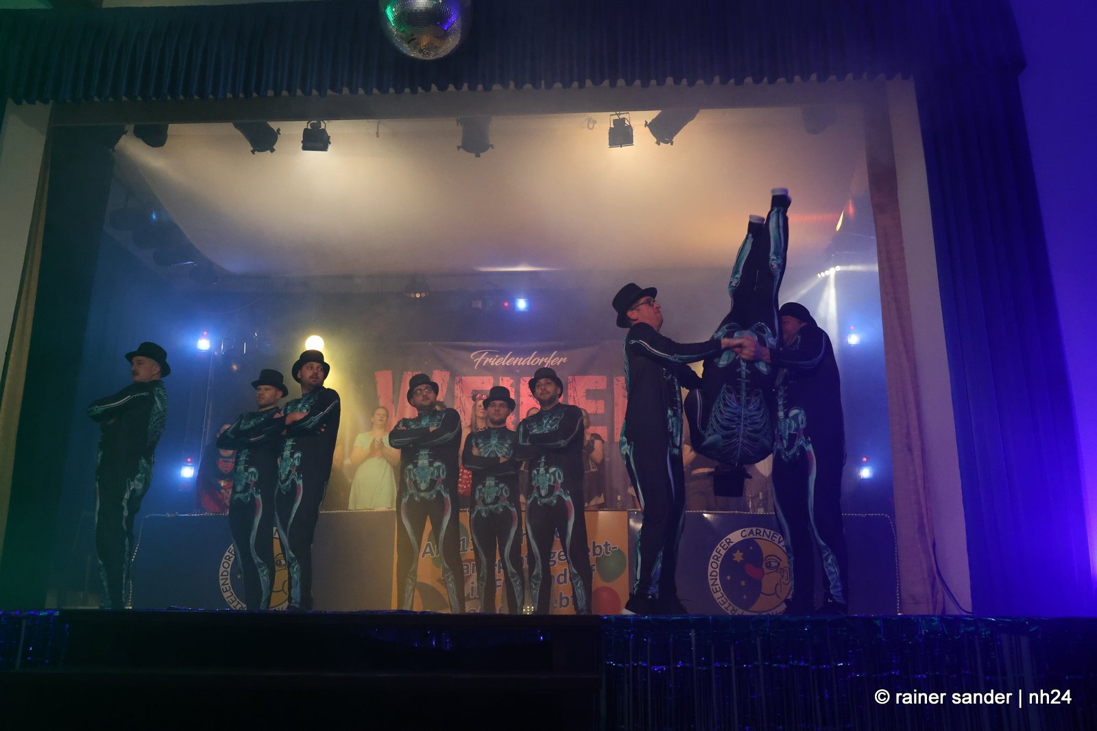Vorbei sind die Zeiten, als die Männer im Karnevalsballett zur Erheiterung der Damenwelt ungeschickt über die Bühne stolperten. Die tanzenden Männer hat allerorts der Ehrgeiz gepackt! Die Couch-Potatoes sind zu durchtrainierten Tänzern geworden und sie gehen mit dem gleichen oder gar noch mehr Ehrgeiz zu Werke als ihre weiblichen Pendants. Gott bewahre, es wird nichts kopiert, was die Tanzgarden auf die Bühne zaubern, es wird auch nicht Marsch getanzt: Es ist Showtime! Und wenn sich Kraft mit Eleganz vereinen und literweise Trainingsschweiß geflossen ist, dann wird das gut! Ganz offensichtlich ist nicht nur während Corona, sondern auch 2023 und 2024 die eine oder andere Trainingsstunde hinzugekommen. Was die Frielendorfer Weiber zu sehen bekamen, war – wie immer – pure Freude, ausgelassene Stimmung und Athletik auf maximalem Niveau.
