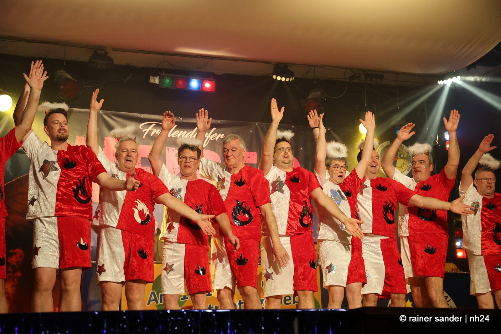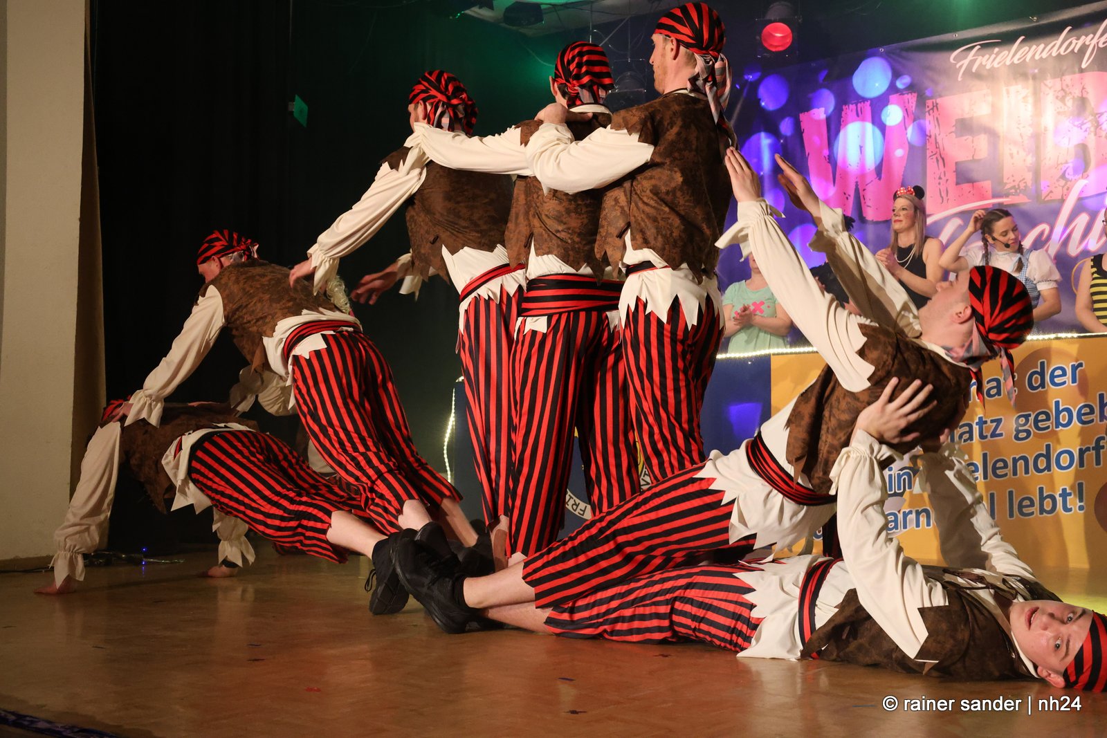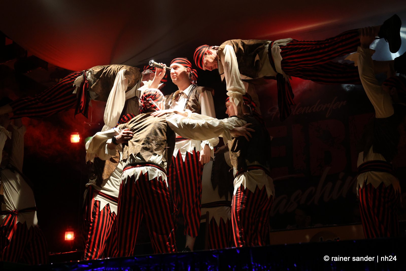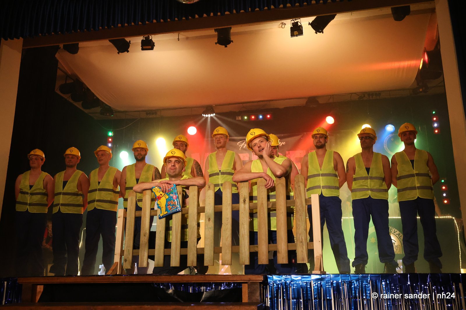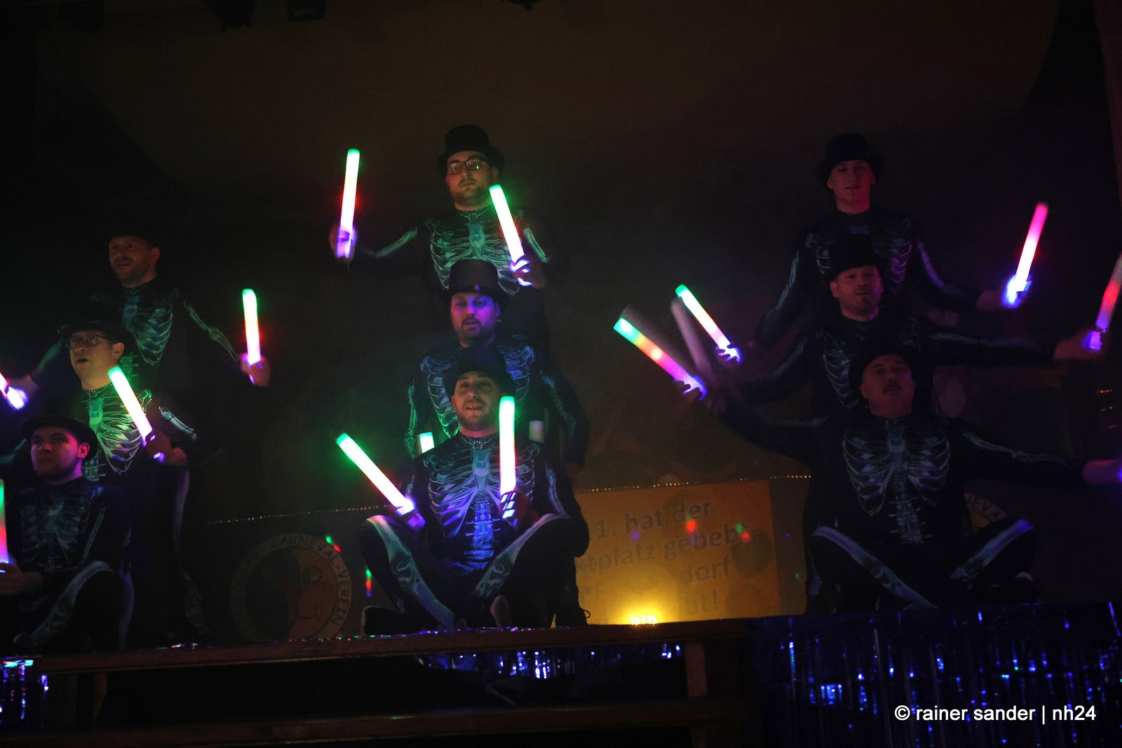 Vorbei sind die Zeiten, als die Männer im Karnevalsballett zur Erheiterung der Damenwelt ungeschickt über die Bühne stolperten. Die tanzenden Männer hat allerorts der Ehrgeiz gepackt! Die Couch-Potatoes sind zu durchtrainierten Tänzern geworden und sie gehen mit dem gleichen oder gar noch mehr Ehrgeiz zu Werke als ihre weiblichen Pendants. Gott bewahre, es wird nichts kopiert, was die Tanzgarden auf die Bühne zaubern, es wird auch nicht Marsch getanzt: Es ist Showtime! Und wenn sich Kraft mit Eleganz vereinen und literweise Trainingsschweiß geflossen ist, dann wird das gut! Ganz offensichtlich ist nicht nur während Corona, sondern auch 2023 und 2024 die eine oder andere Trainingsstunde hinzugekommen. Was die Frielendorfer Weiber zu sehen bekamen, war – wie immer – pure Freude, ausgelassene Stimmung und Athletik auf maximalem Niveau.
