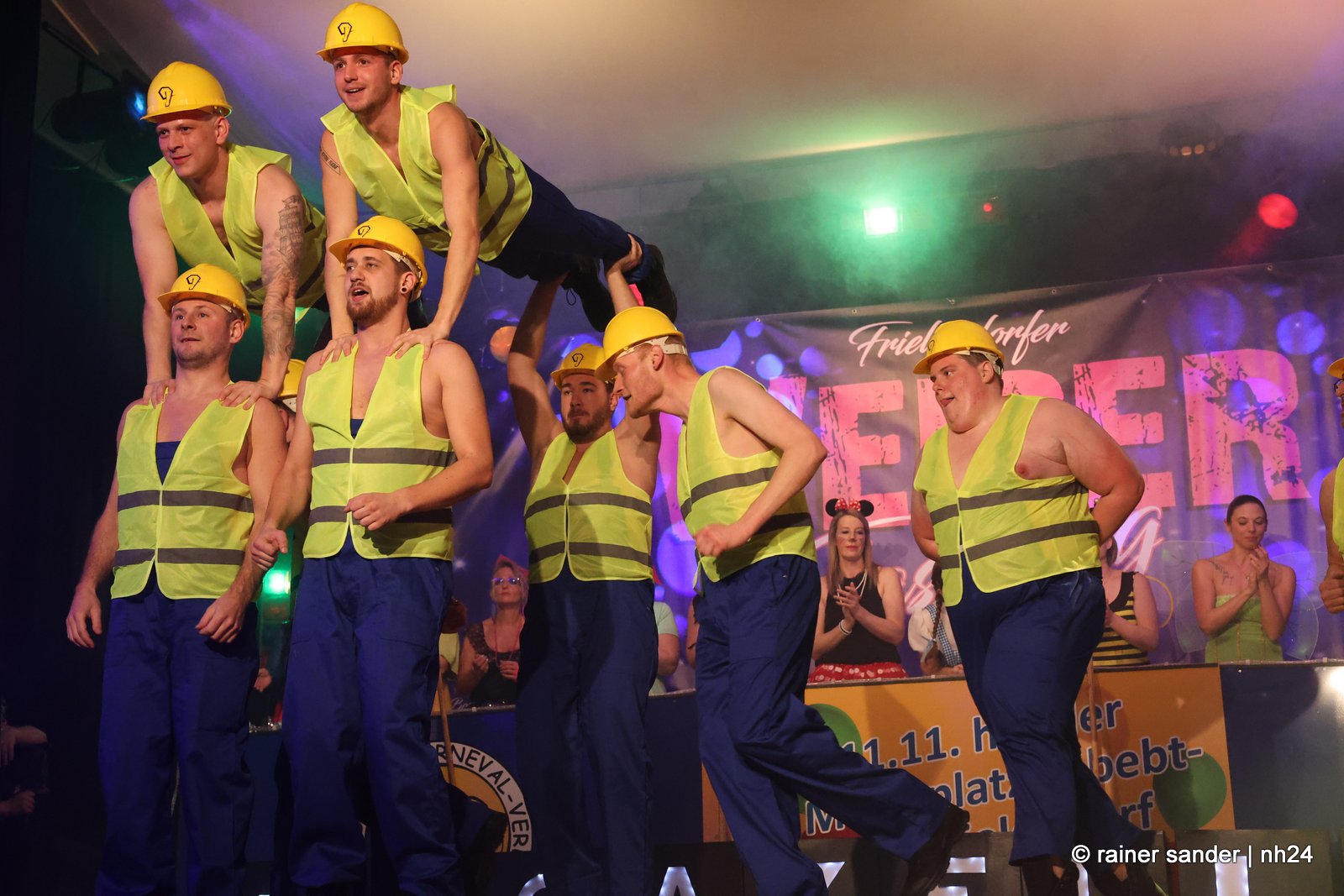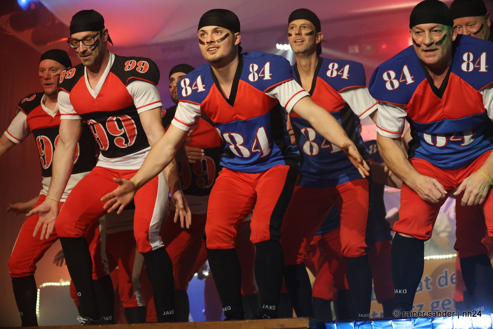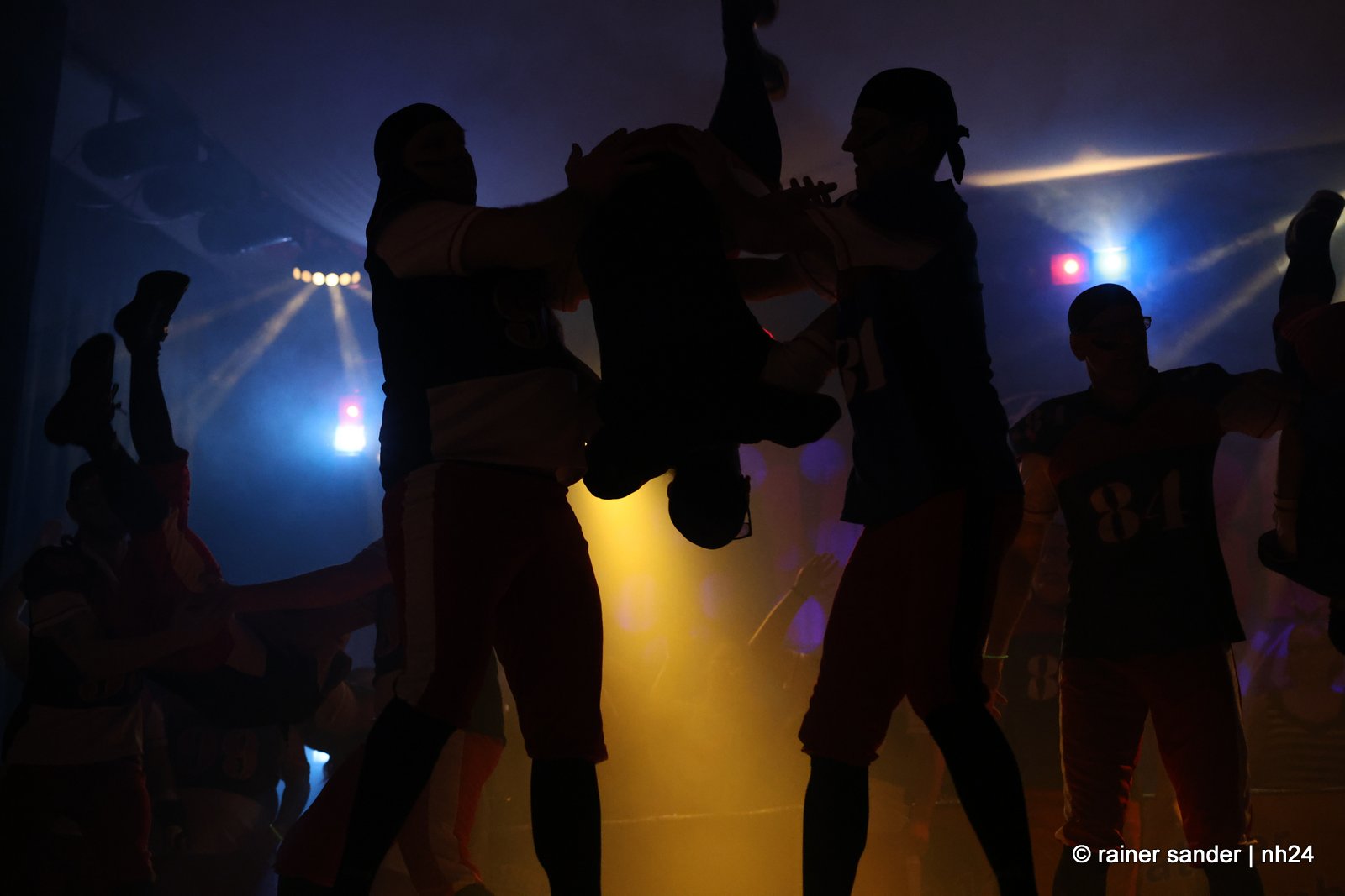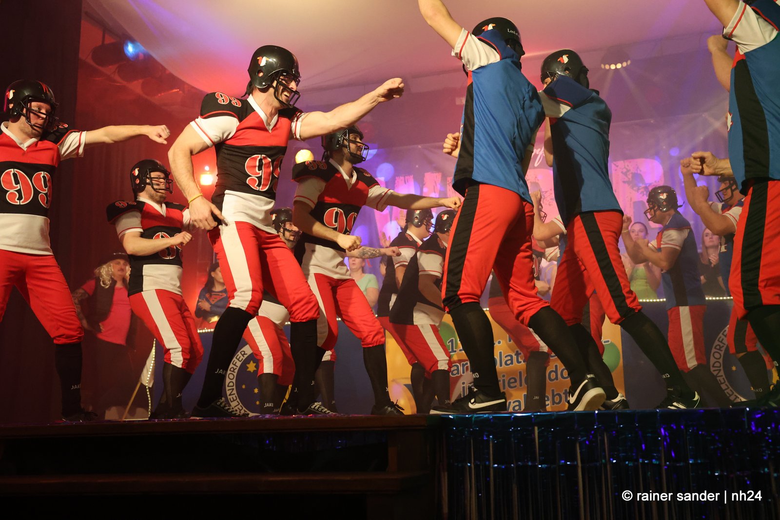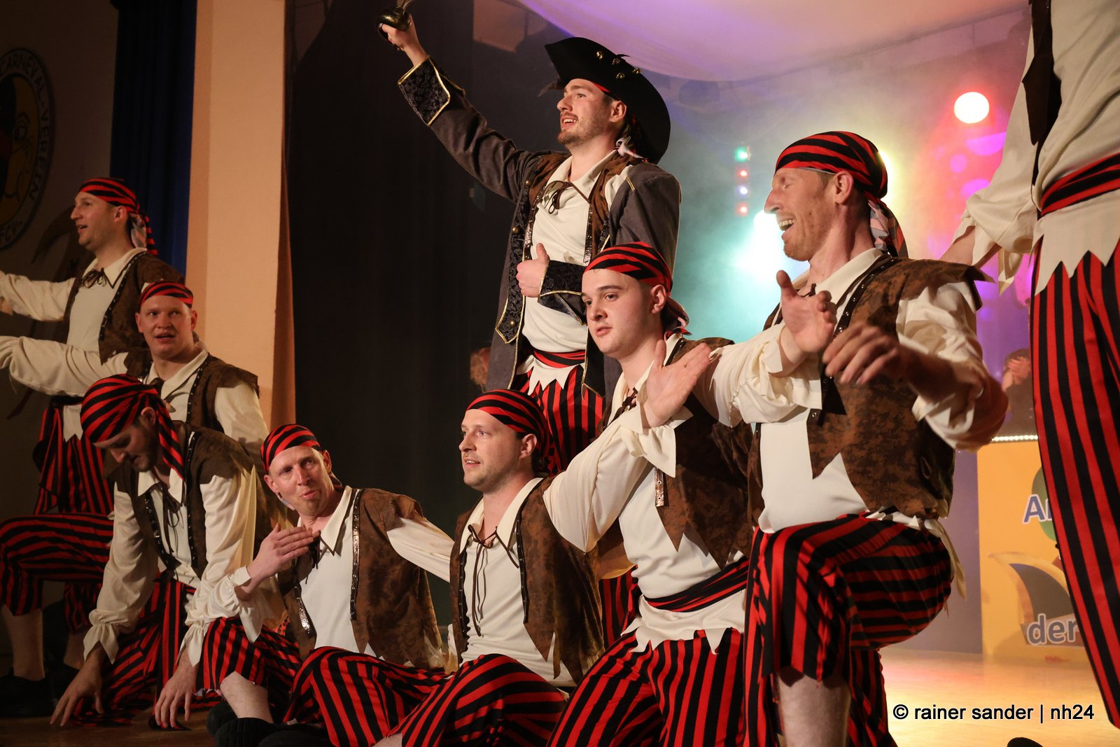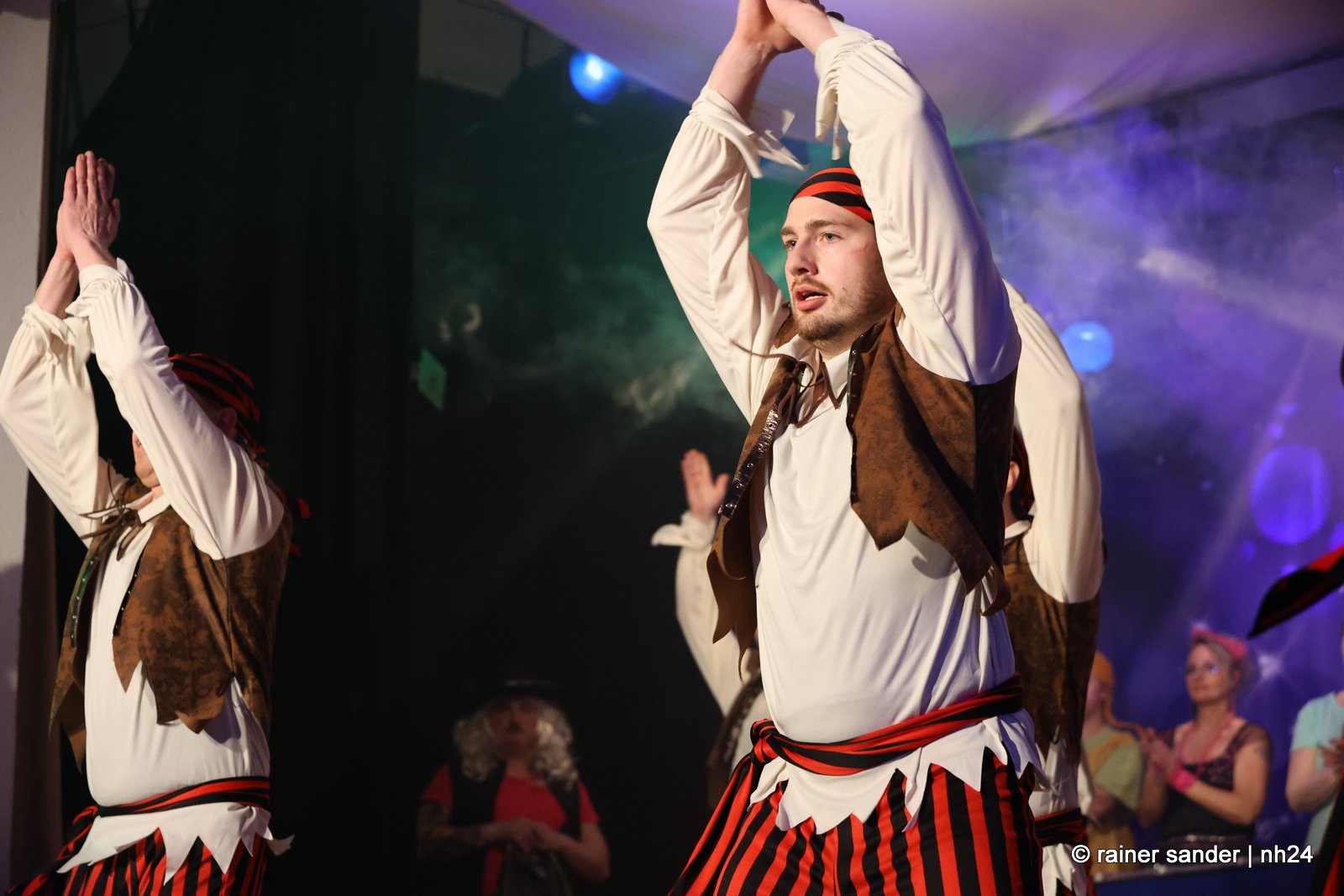 Vorbei sind die Zeiten, als die Männer im Karnevalsballett zur Erheiterung der Damenwelt ungeschickt über die Bühne stolperten. Die tanzenden Männer hat allerorts der Ehrgeiz gepackt! Die Couch-Potatoes sind zu durchtrainierten Tänzern geworden und sie gehen mit dem gleichen oder gar noch mehr Ehrgeiz zu Werke als ihre weiblichen Pendants. Gott bewahre, es wird nichts kopiert, was die Tanzgarden auf die Bühne zaubern, es wird auch nicht Marsch getanzt: Es ist Showtime! Und wenn sich Kraft mit Eleganz vereinen und literweise Trainingsschweiß geflossen ist, dann wird das gut! Ganz offensichtlich ist nicht nur während Corona, sondern auch 2023 und 2024 die eine oder andere Trainingsstunde hinzugekommen. Was die Frielendorfer Weiber zu sehen bekamen, war – wie immer – pure Freude, ausgelassene Stimmung und Athletik auf maximalem Niveau.