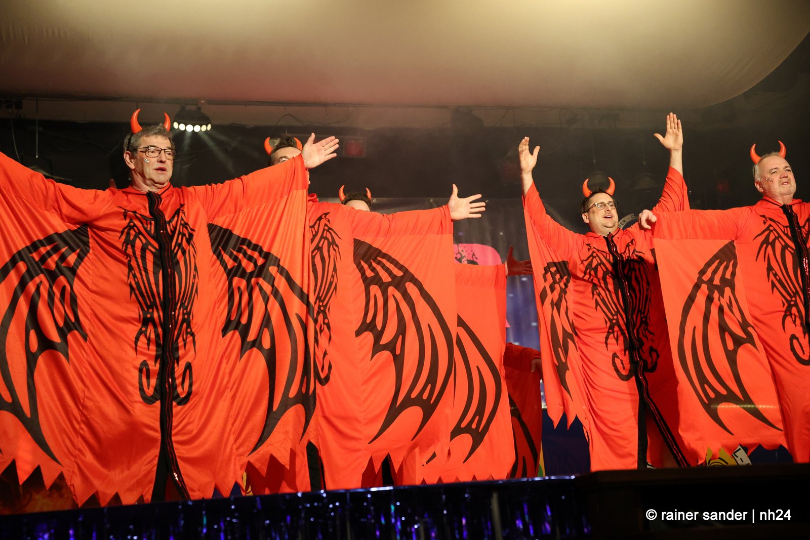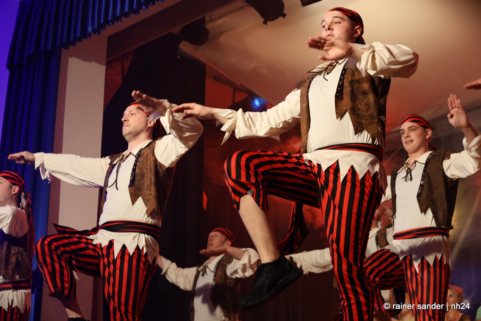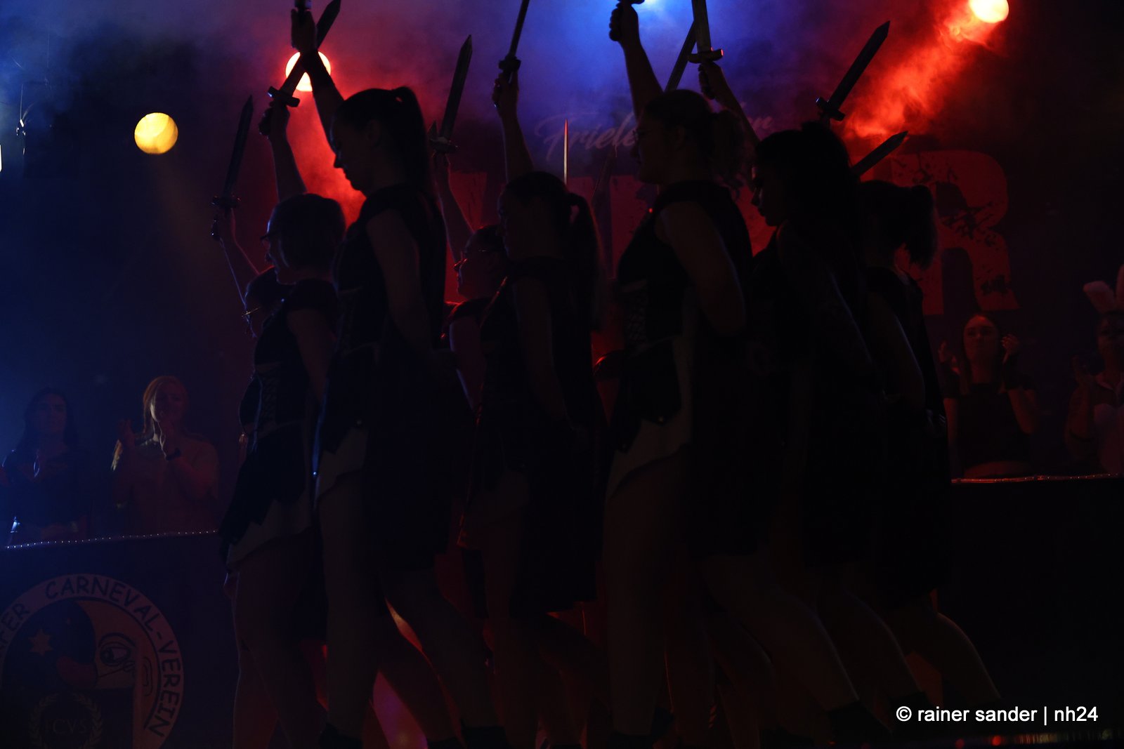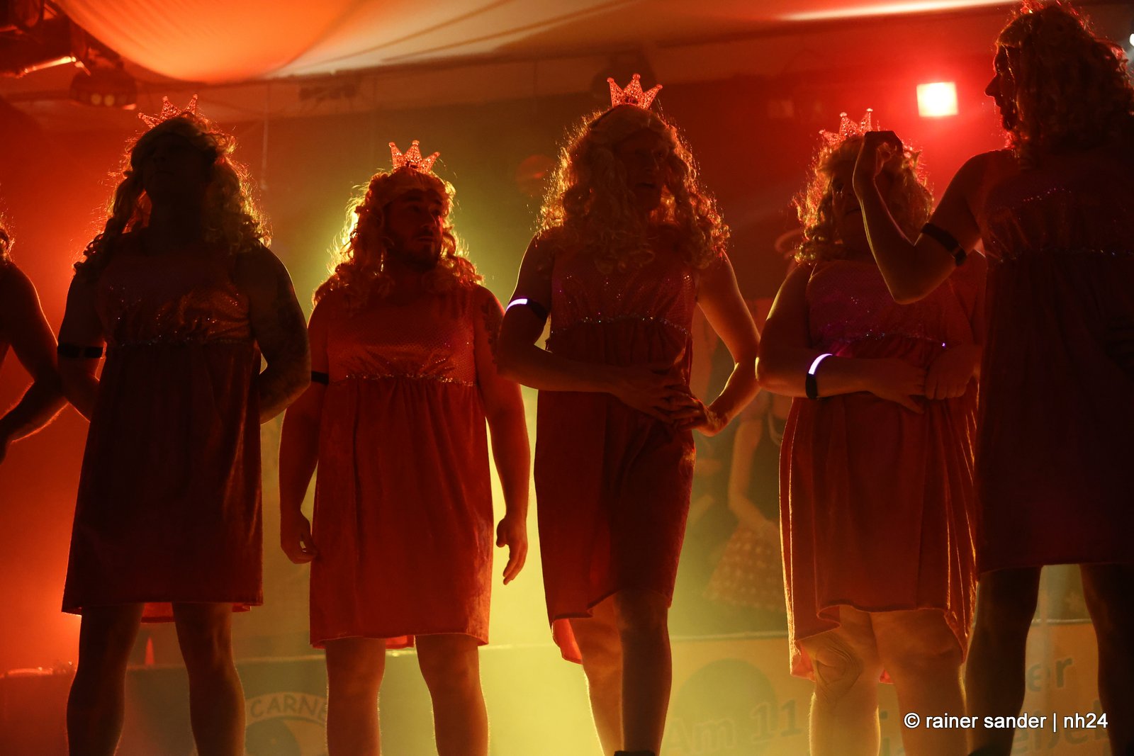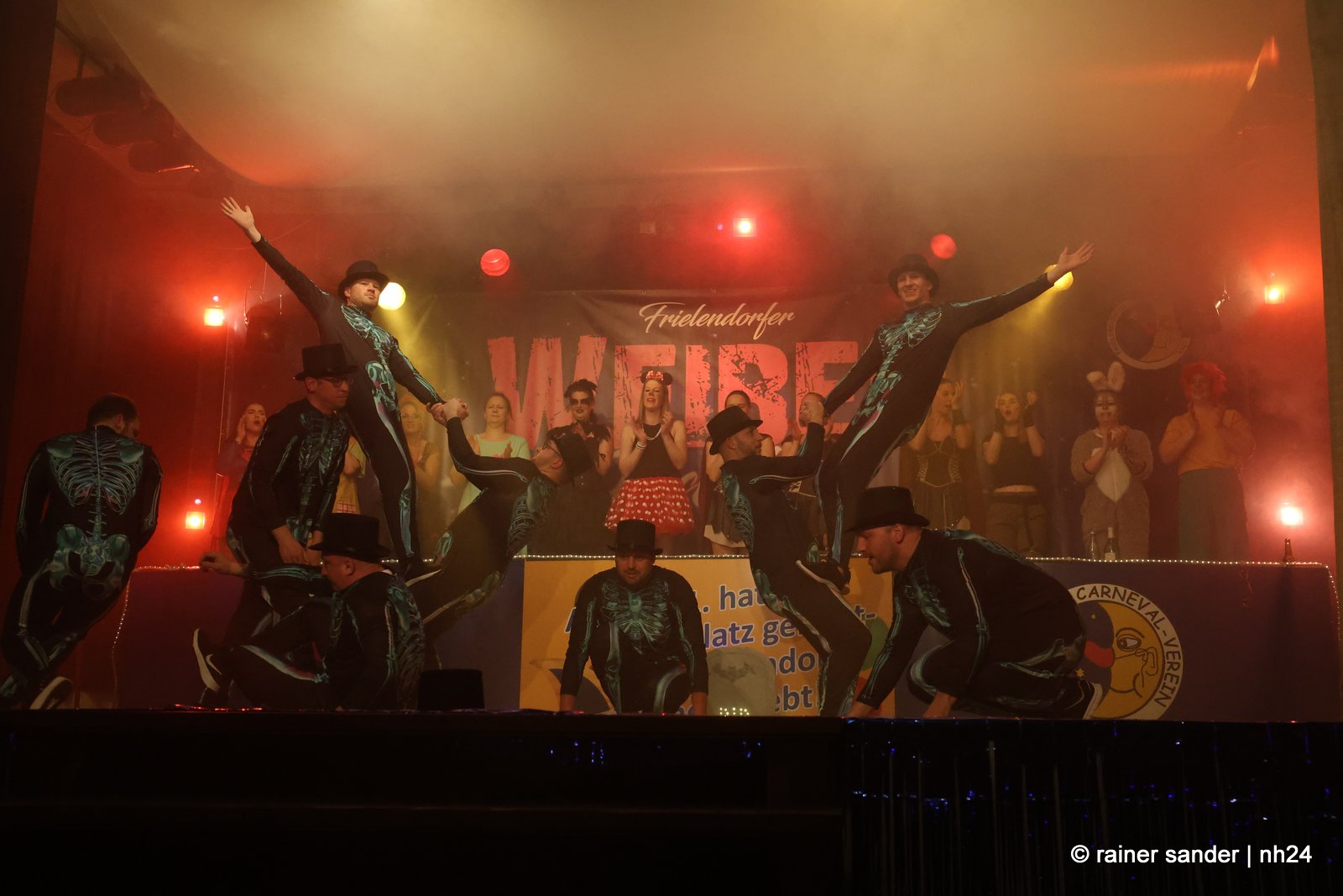 Vorbei sind die Zeiten, als die Männer im Karnevalsballett zur Erheiterung der Damenwelt ungeschickt über die Bühne stolperten. Die tanzenden Männer hat allerorts der Ehrgeiz gepackt! Die Couch-Potatoes sind zu durchtrainierten Tänzern geworden und sie gehen mit dem gleichen oder gar noch mehr Ehrgeiz zu Werke als ihre weiblichen Pendants. Gott bewahre, es wird nichts kopiert, was die Tanzgarden auf die Bühne zaubern, es wird auch nicht Marsch getanzt: Es ist Showtime! Und wenn sich Kraft mit Eleganz vereinen und literweise Trainingsschweiß geflossen ist, dann wird das gut! Ganz offensichtlich ist nicht nur während Corona, sondern auch 2023 und 2024 die eine oder andere Trainingsstunde hinzugekommen. Was die Frielendorfer Weiber zu sehen bekamen, war – wie immer – pure Freude, ausgelassene Stimmung und Athletik auf maximalem Niveau.