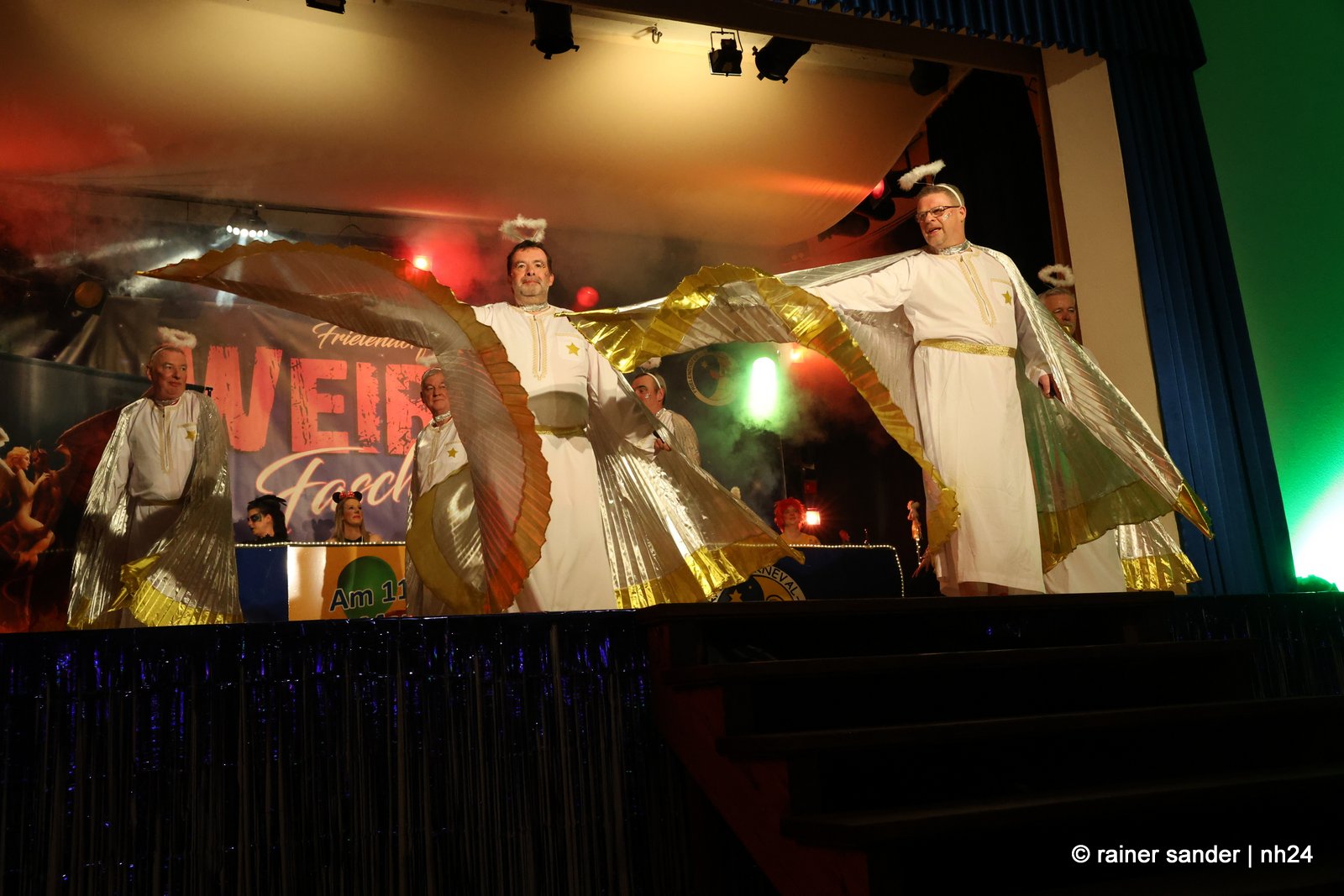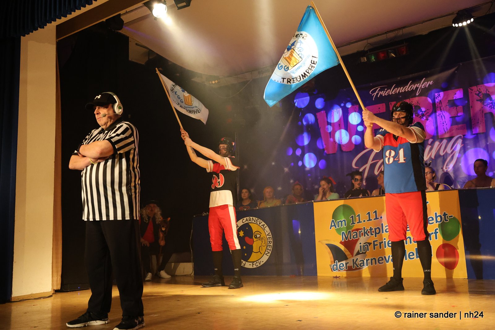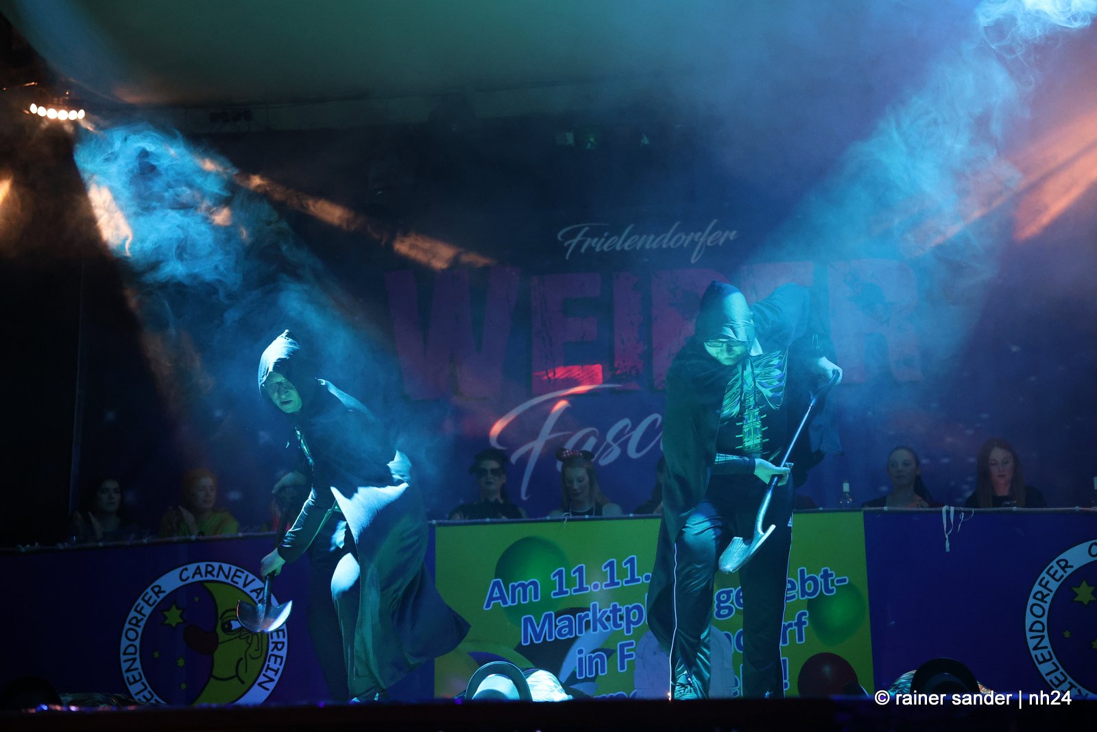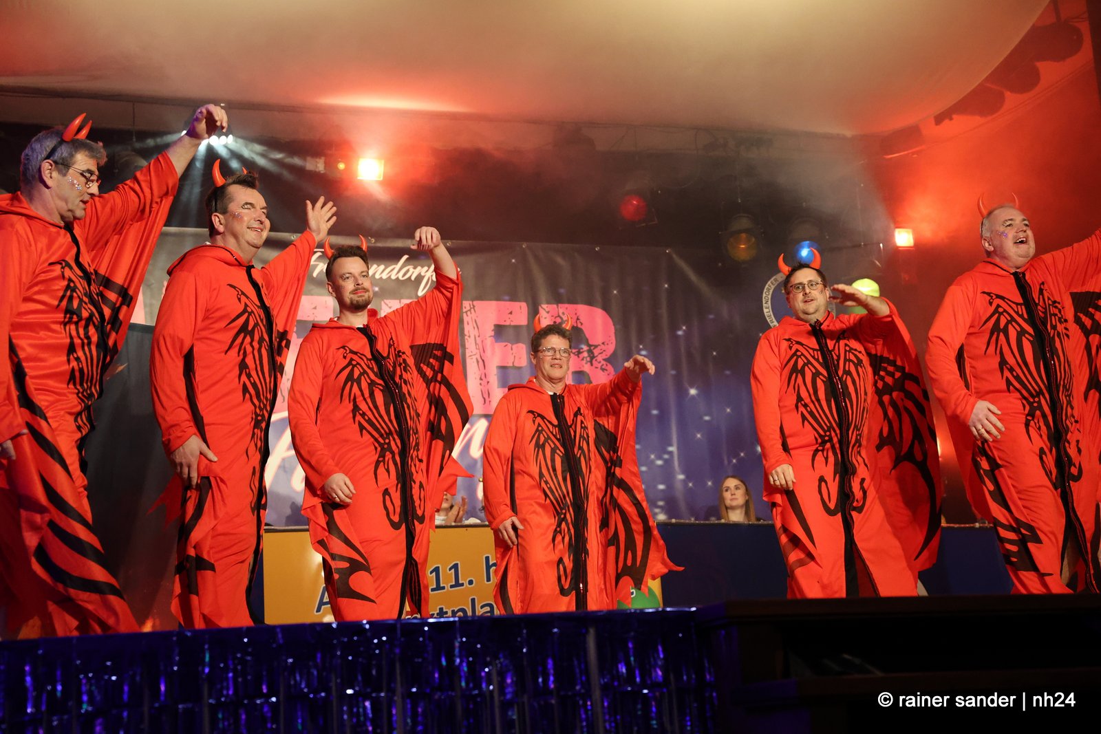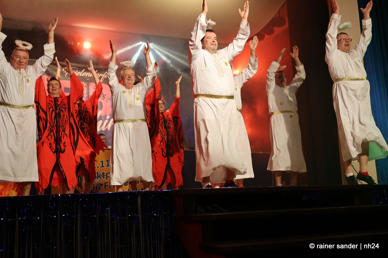 Vorbei sind die Zeiten, als die Männer im Karnevalsballett zur Erheiterung der Damenwelt ungeschickt über die Bühne stolperten. Die tanzenden Männer hat allerorts der Ehrgeiz gepackt! Die Couch-Potatoes sind zu durchtrainierten Tänzern geworden und sie gehen mit dem gleichen oder gar noch mehr Ehrgeiz zu Werke als ihre weiblichen Pendants. Gott bewahre, es wird nichts kopiert, was die Tanzgarden auf die Bühne zaubern, es wird auch nicht Marsch getanzt: Es ist Showtime! Und wenn sich Kraft mit Eleganz vereinen und literweise Trainingsschweiß geflossen ist, dann wird das gut! Ganz offensichtlich ist nicht nur während Corona, sondern auch 2023 und 2024 die eine oder andere Trainingsstunde hinzugekommen. Was die Frielendorfer Weiber zu sehen bekamen, war – wie immer – pure Freude, ausgelassene Stimmung und Athletik auf maximalem Niveau.