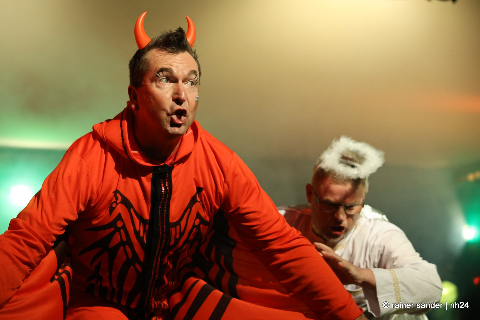 Helden der Kindheit war das Thema. Damit präsentierten sich die Männer des BCC Borken mächtig verjüngt. Ob Barbie tatsächlich Heldin der Borkener Männer in ihrer Jugend gewesen ist? Gestern Abend jedenfalls hieß es „Come on Barbie let’s go Party!“ Die Unglaublichen aus Fürstenhagen brachten Olivia Jones mit. Helden sind Helden, ob Jugend oder nicht. Engelchen und Teufelchen sind immer Helden, je nachdem, wie man’s sieht. Die Wonneproppen aus Lohfelden waren teuflisch gut und himmlisch sympathisch auf der kleinen Frielendorfer Bühne. Ihren Hoppeditz hatten sie am Loh gelassen, der wird Dienstagnacht beerdigt.
