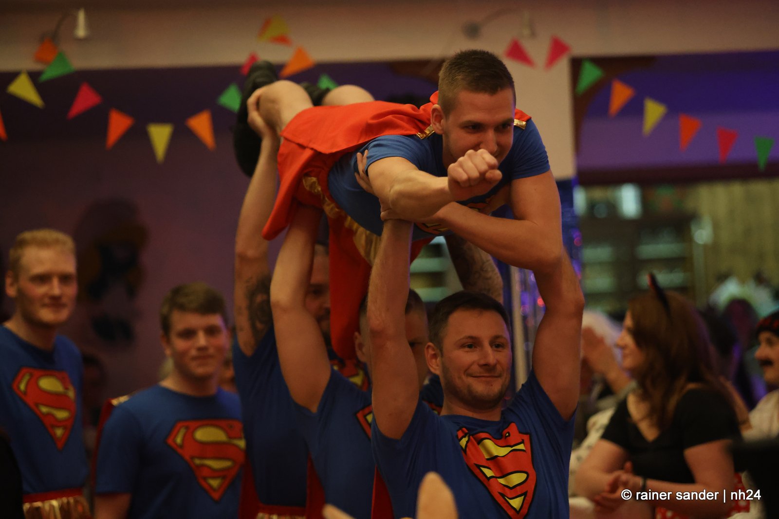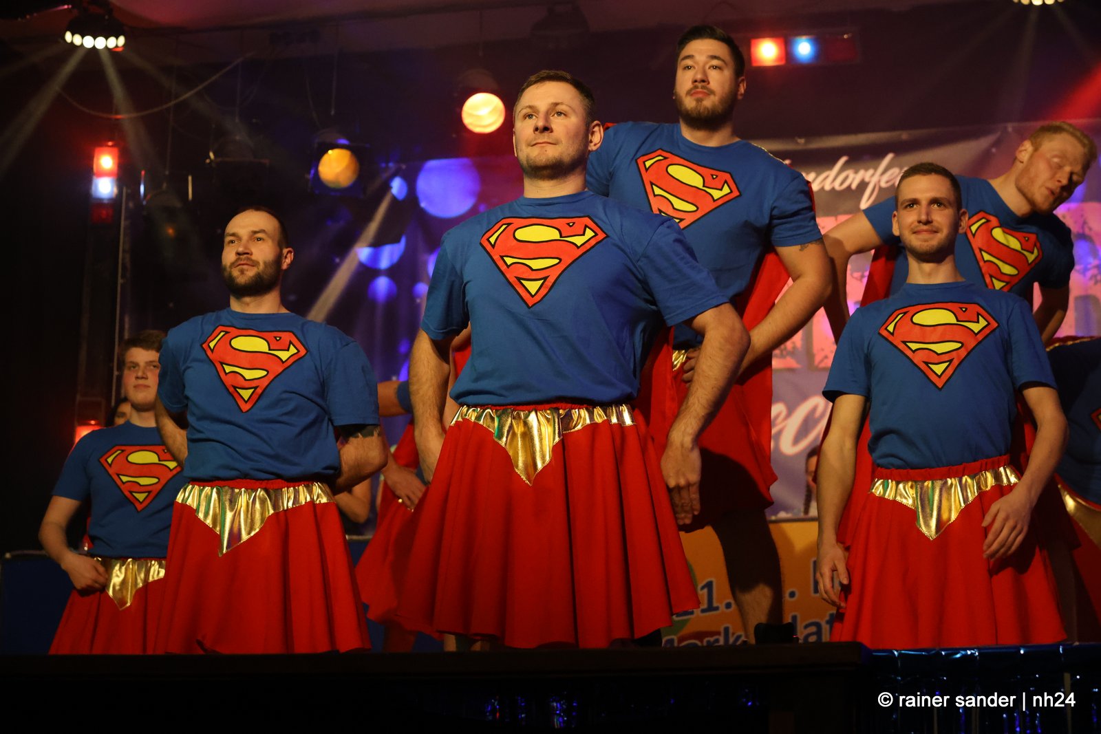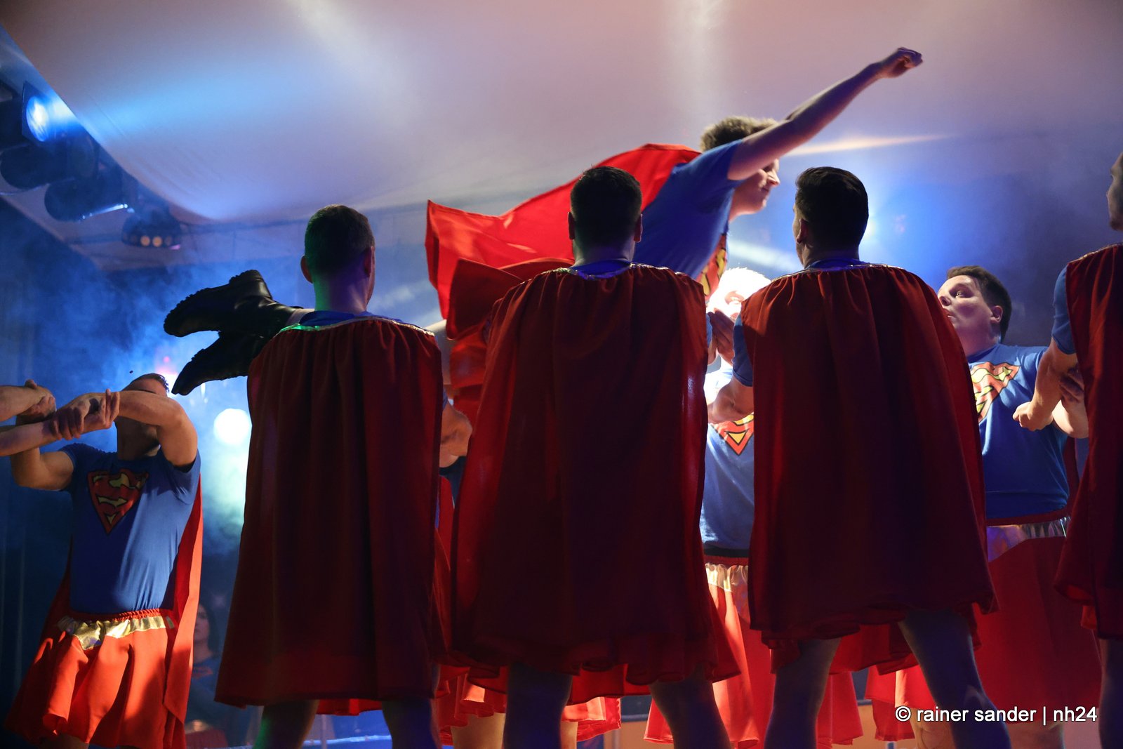 NASA aus Röllshausen zog es hinaus aufs Meer. Zwischen Fluch der Karibik, Achim Reichel und Wellerman Shanty ist Platz für viel Fantasie und Athletik. Die Gazellen aus Treysa haben sich dieses Jahr als Supermänner in die Gummibären verliebt und schwanken zwischen Haribo und Comic. Heute Abend müssen sie in Treysa noch einmal ran. Das fordert bei der atemberaubenden Show eine Menge Kondition. Mega athletisch stürmte die Ranzengarde Blaue Funken aus Guxhagen die Bühne. Mit dem Superbowl tanzten sie ein wahres Heldenthema. Und schließlich sorgten die gastgebenden Fresh Mett Boys aus Frielendorf mit einer Reise durch die Heldengeschichte der Rockmusik von Elvis und Michael Jackson bis Queen für Begeisterungsstürme. Lebende Legenden!