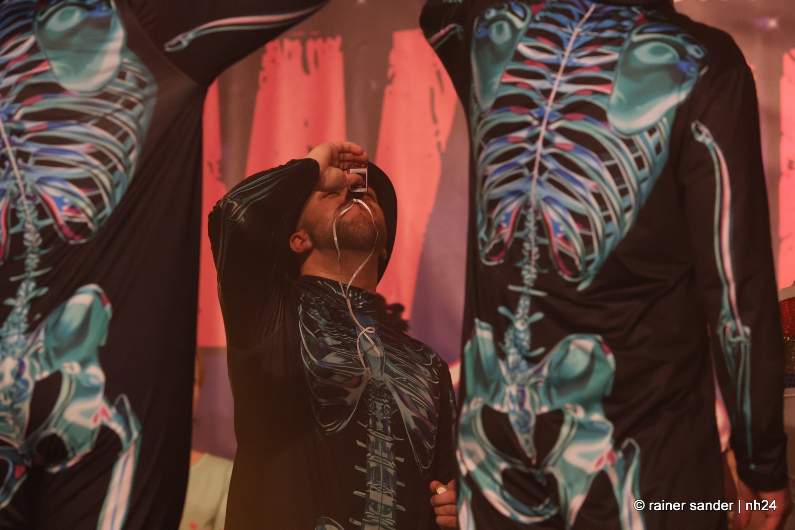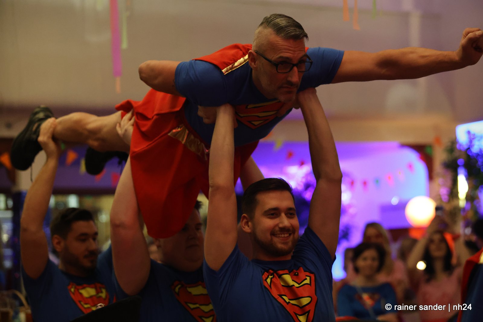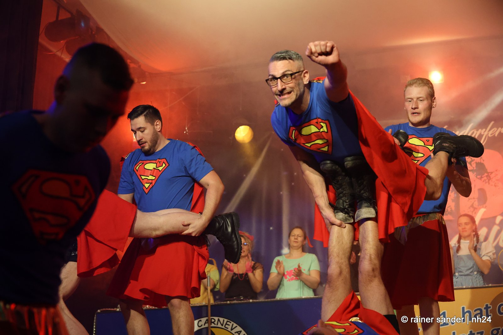 NASA aus Röllshausen zog es hinaus aufs Meer. Zwischen Fluch der Karibik, Achim Reichel und Wellerman Shanty ist Platz für viel Fantasie und Athletik. Die Gazellen aus Treysa haben sich dieses Jahr als Supermänner in die Gummibären verliebt und schwanken zwischen Haribo und Comic. Heute Abend müssen sie in Treysa noch einmal ran. Das fordert bei der atemberaubenden Show eine Menge Kondition. Mega athletisch stürmte die Ranzengarde Blaue Funken aus Guxhagen die Bühne. Mit dem Superbowl tanzten sie ein wahres Heldenthema. Und schließlich sorgten die gastgebenden Fresh Mett Boys aus Frielendorf mit einer Reise durch die Heldengeschichte der Rockmusik von Elvis und Michael Jackson bis Queen für Begeisterungsstürme. Lebende Legenden!