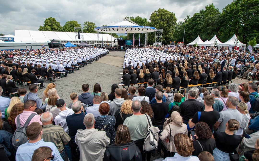 FRITZLAR. Beim „Tag der Polizei“ auf dem Hessentag wurden rund 700 Kommissaranwärterinnen und -anwärter vereidigt. Ministerpräsident Boris Rhein und Innenminister Roman Poseck nahmen die Zeremonie vor. Die Anwärter legten den Diensteid auf das Grundgesetz und die Verfassung des Landes Hessen ab. Sie sind zwischen 18 und 38 Jahre alt, über ein Drittel sind Frauen, und vier gehören der Sportfördergruppe an.
