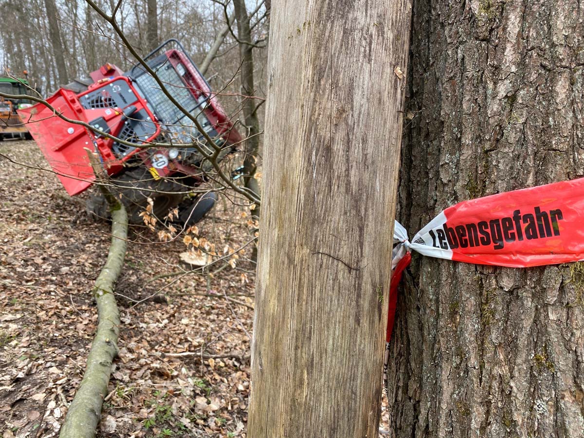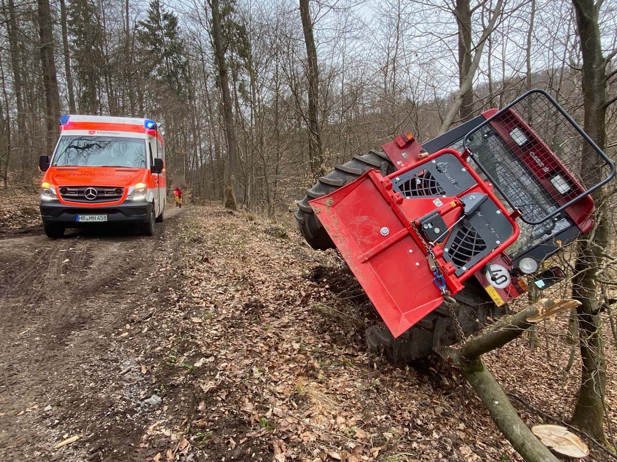 Nach ersten Erkenntnissen von der Einsatzstelle zog der Mann mit seinem Traktor einen etwa 10 Meter langen Baumstamm auf einen abschüssigen Waldweg. Im Verlauf soll sich der 89-Jährige zwischen Rückeschild und Baumstamm befunden haben, als sich aus bislang ungeklärten Umständen sein Traktor samt Baumstamm in Bewegung setzte, den Berg hinunterrollte und den Senior dabei schwer verletzte.