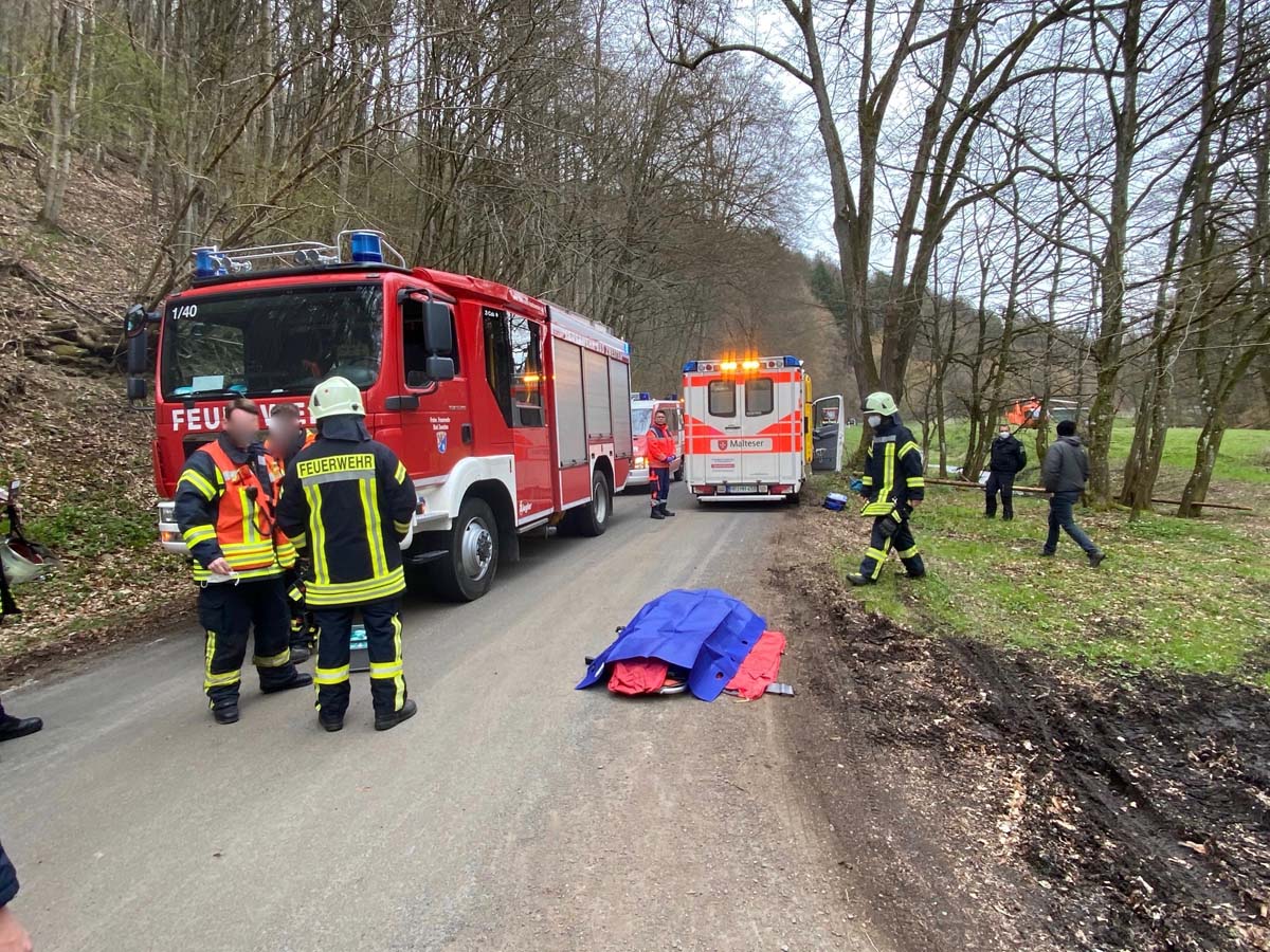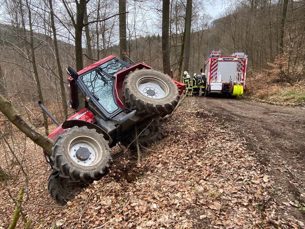 Wie lange der Mann bis zu seinem Auffinden schon dort lag, ist unklar. Ein Rettungs- und ein Notarztteam eilten zur Einsatzstelle. Aufgrund der schwierigen Lage und der drohenden Absturzgefahr des Traktors wurden Einsatzkräfte der Feuerwehr hinzugezogen.