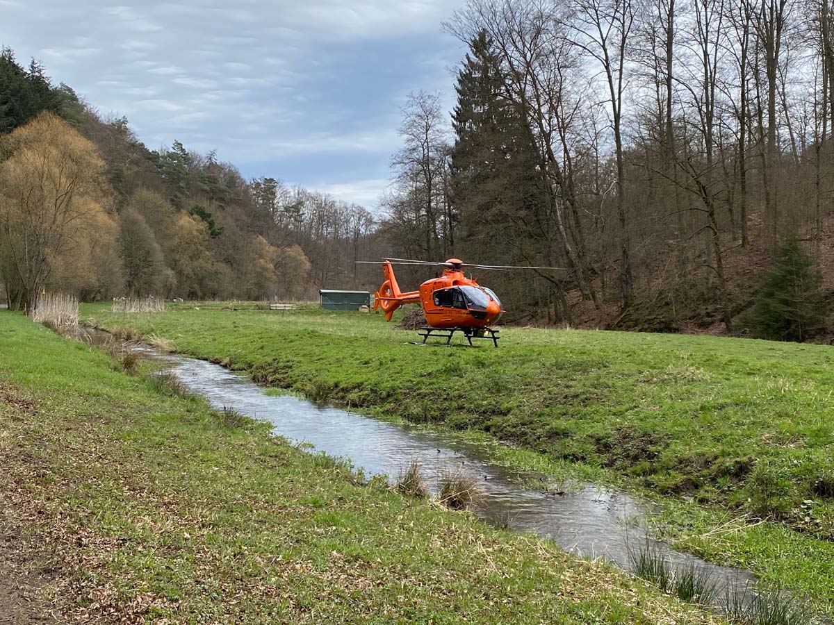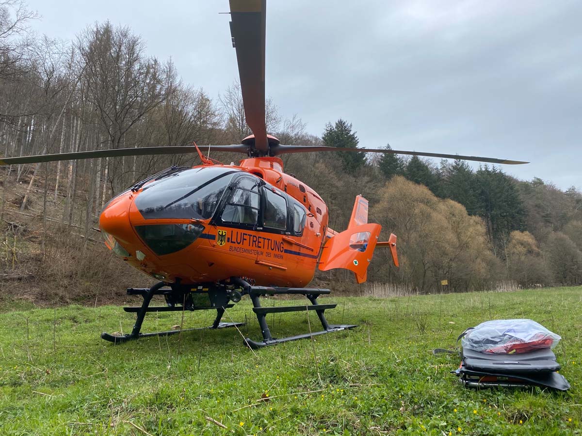 Nach seiner Erstversorgung an der Einsatzstelle, flog den Mann die Crew des Rettungshubschrauber Christoph 7 in eine Kasseler Klinik.