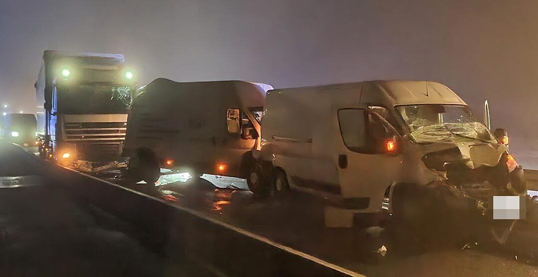 44 Jahre alter Fahrer aus Polen erkannte den Unfall zu spät und fuhr mit seinem Renault Master wiederum auf den Sattelzug des 56-Jährigen auf. Sowohl der 22-jährige Ducato-Fahrer als auch der 28-jährige Boxer-Fahrer hatten sich bei dem Unfall leicht verletzt. Außer dem Lkw des 38-Jährigen mussten alle Fahrzeuge abgeschleppt werden.