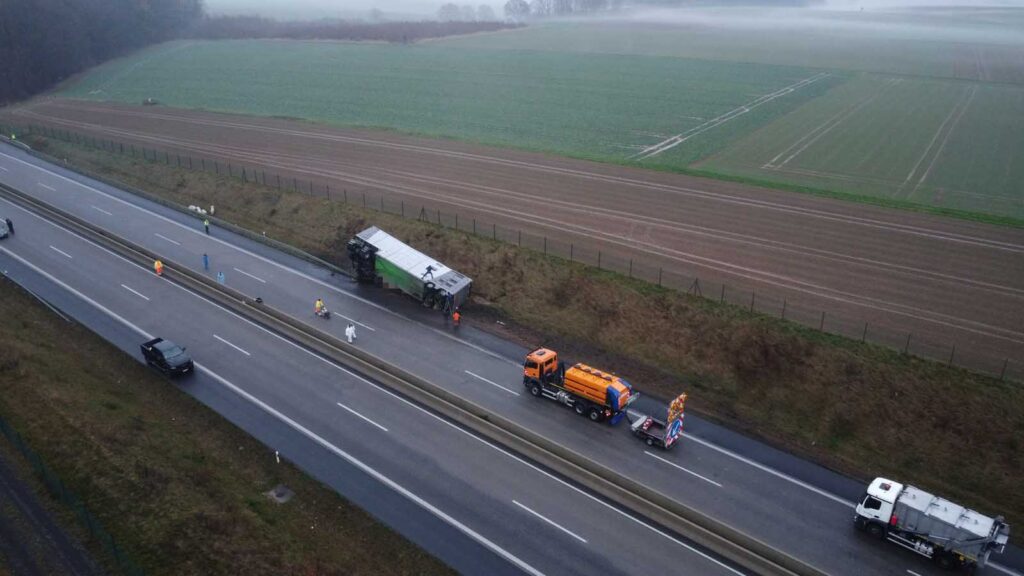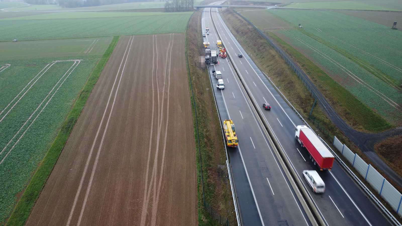 Der Schaden an Sattelzugmaschine und Auflieger wird auf rund 100.000 EUR geschätzt.