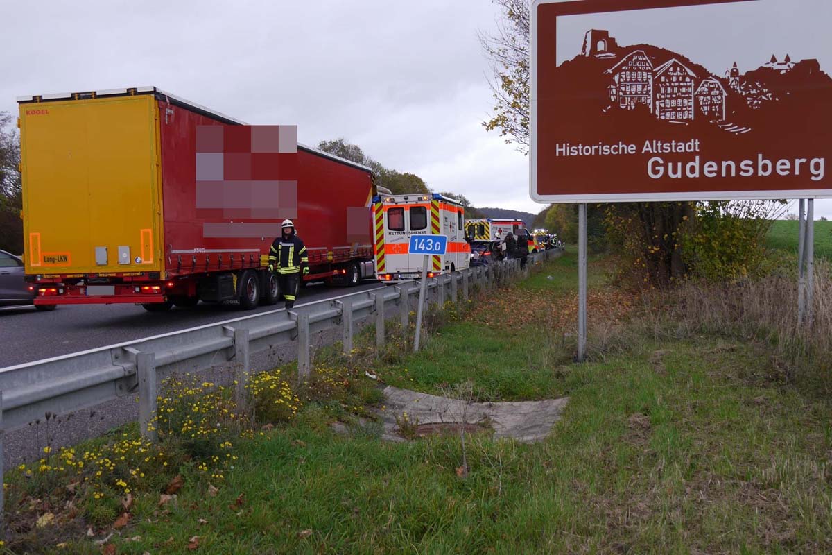 Der Unfall war zunächst schwerer gemeldet worden, weswegen auch die Feuerwehren aus Fritzlar und Gudensberg vor Ort waren, um möglicherweise eingeklemmte Personen zu befreien. Eingeklemmt oder schwerwiegend verletzt wurde aber niemand.