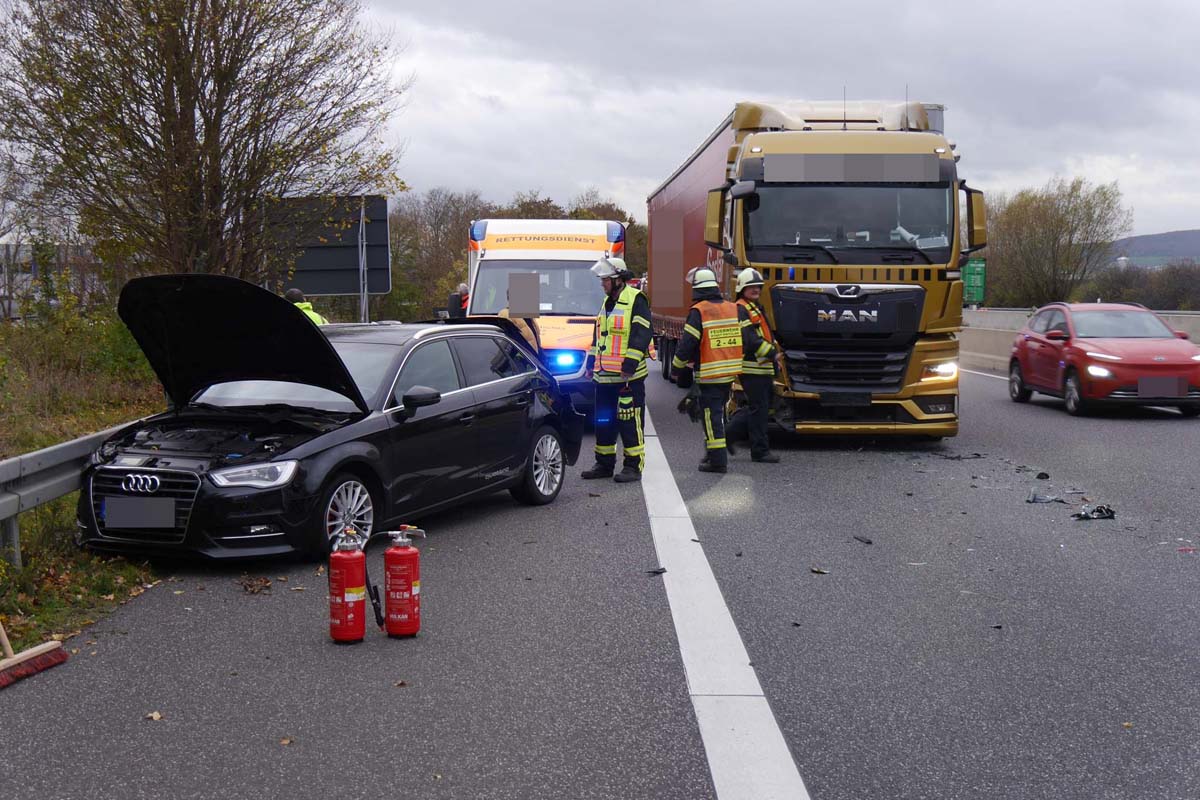 Wie Bernd Völske von der Feuerwehr Gudensberg berichtet, verlangsamte ein 49 Jahre alter Mann, mutmaßlich aufgrund eines technischen Defekts an seinem Pkw, die Geschwindigkeit auf dem rechten Fahrstreifen erheblich. Ein folgender Sattelzugfahrer konnte nicht mehr rechtzeitig abbremsen und prallte auf das Heck des vorausfahrenden Autos. Der Audi wurde in der Folge gegen die rechte Leitplanke katapultiert und kam dort zum Stillstand.