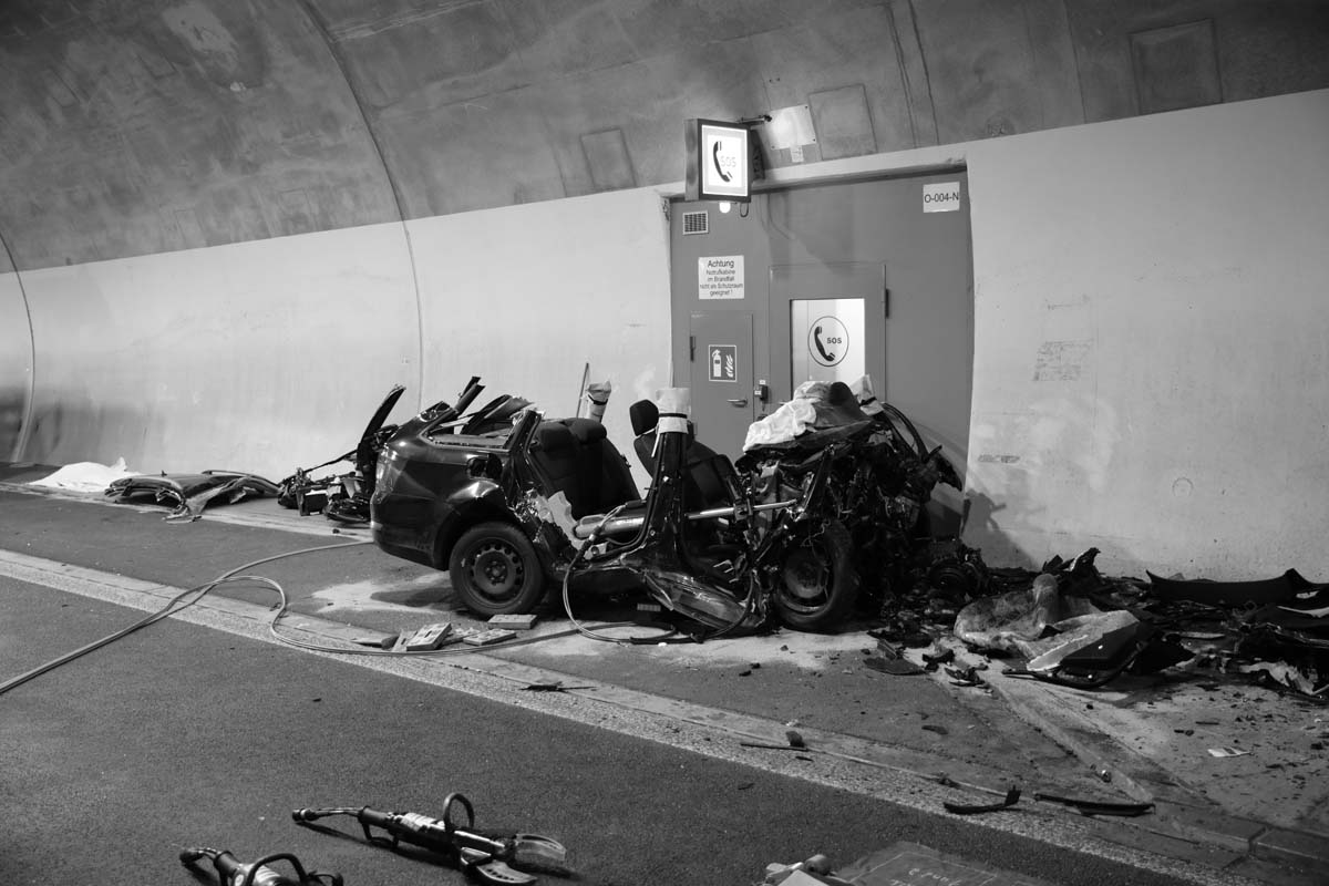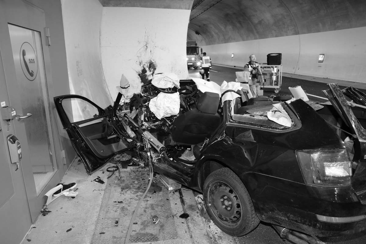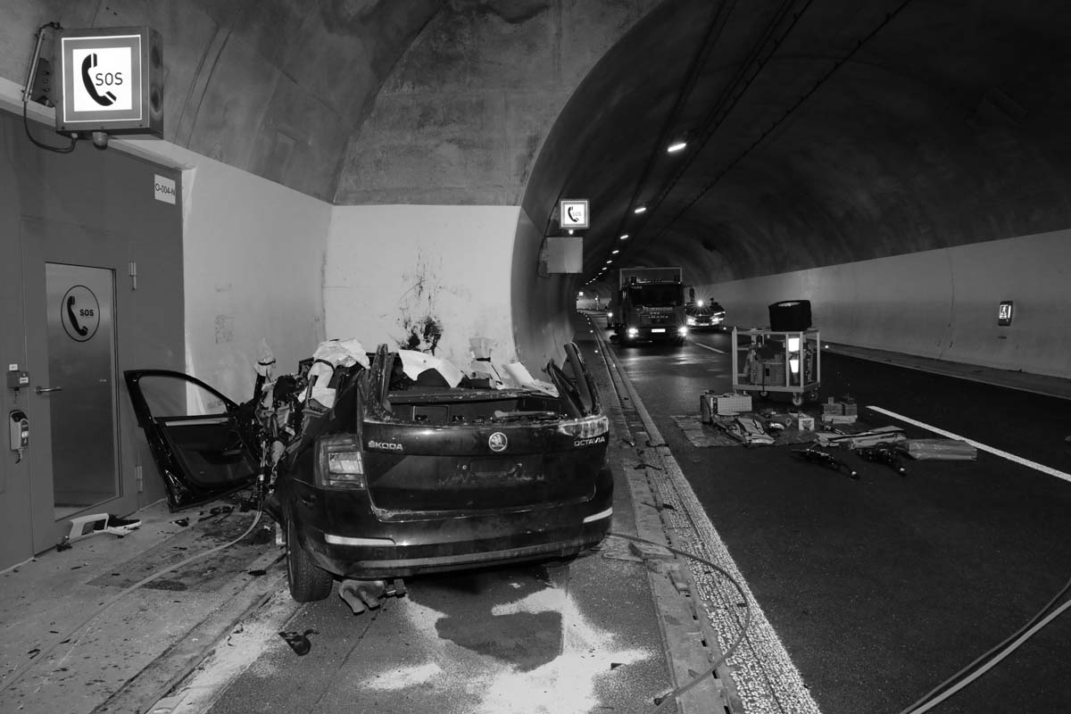 Es steht wohl mit hoher Wahrscheinlichkeit fest, dass die Person mit dem Skoda entgegen der Fahrtrichtung in den Tunnel fuhr. In der Mitte der rund einen Kilometer langen Röhre in Richtung Süden kam das Fahrzeug von der Fahrbahn ab und prallte mit sehr hoher Geschwindigkeit gegen die Betonwand der Nothaltebucht. Für die Person kam jede Hilfe zu spät. Sie war bereits eingeklemmt im Fahrzeugwrack verstorben.