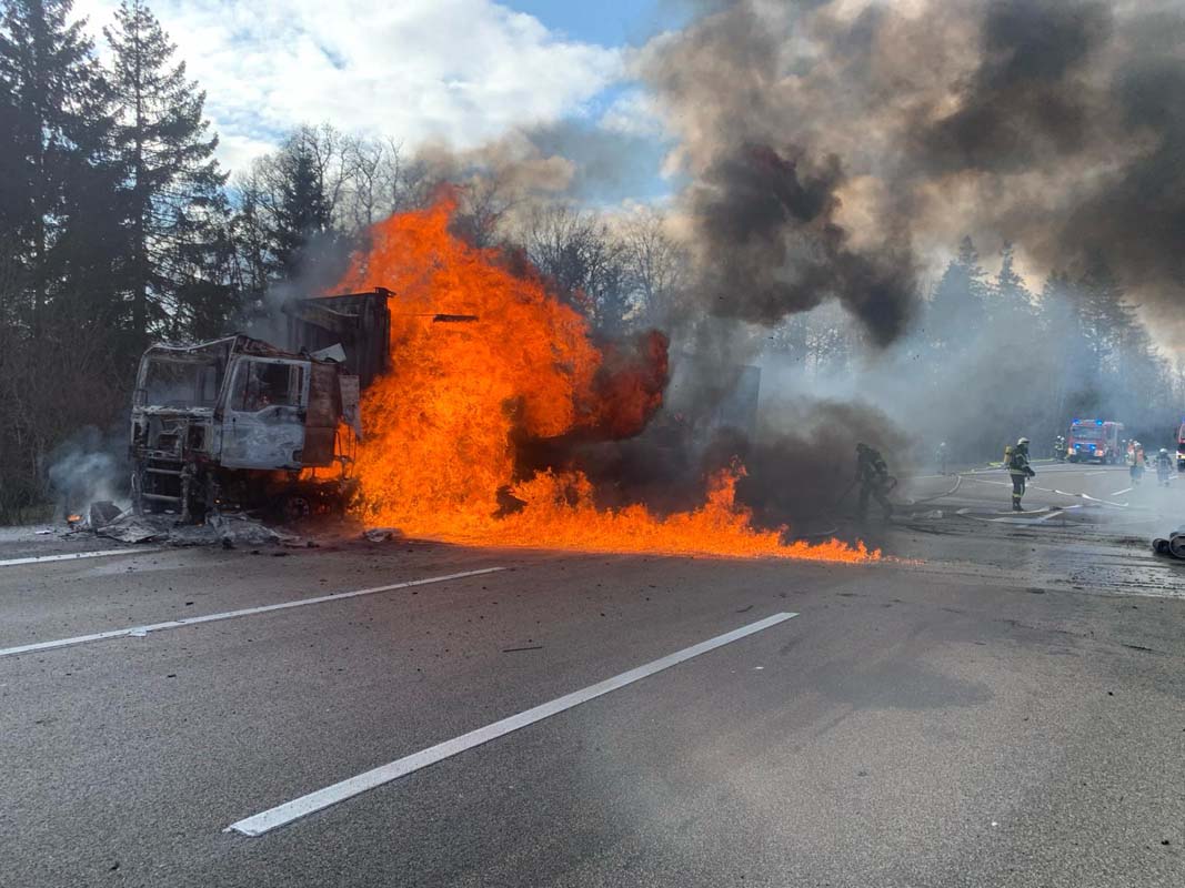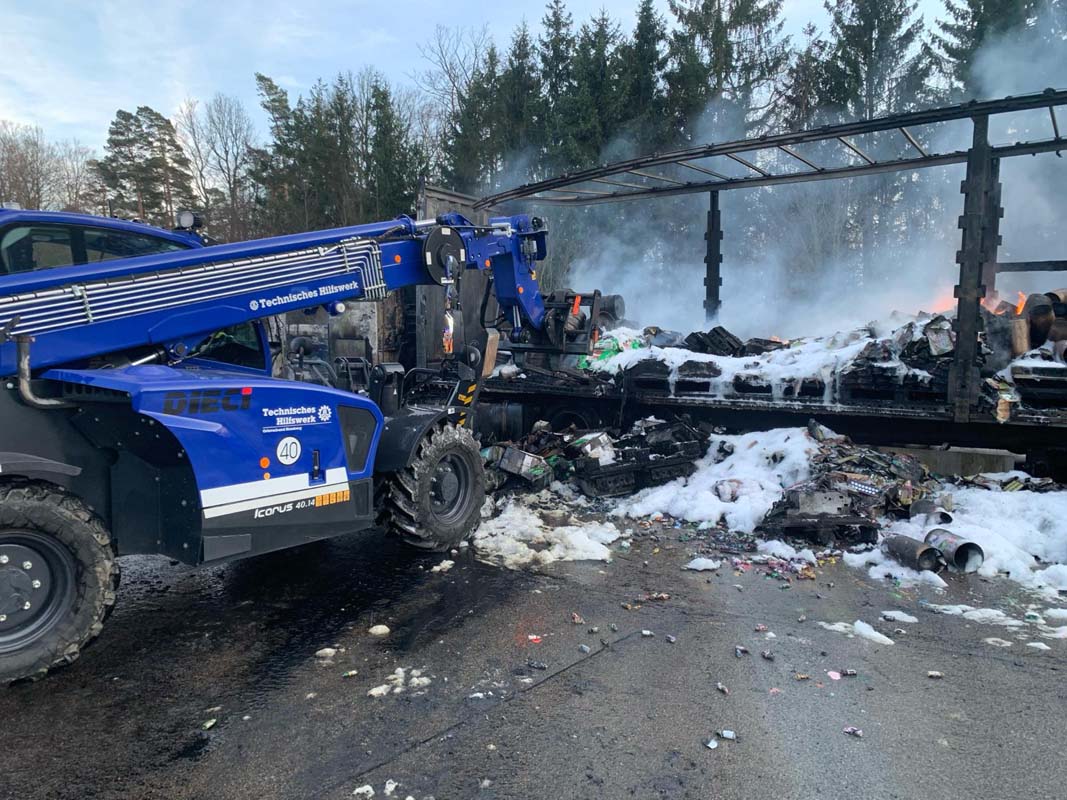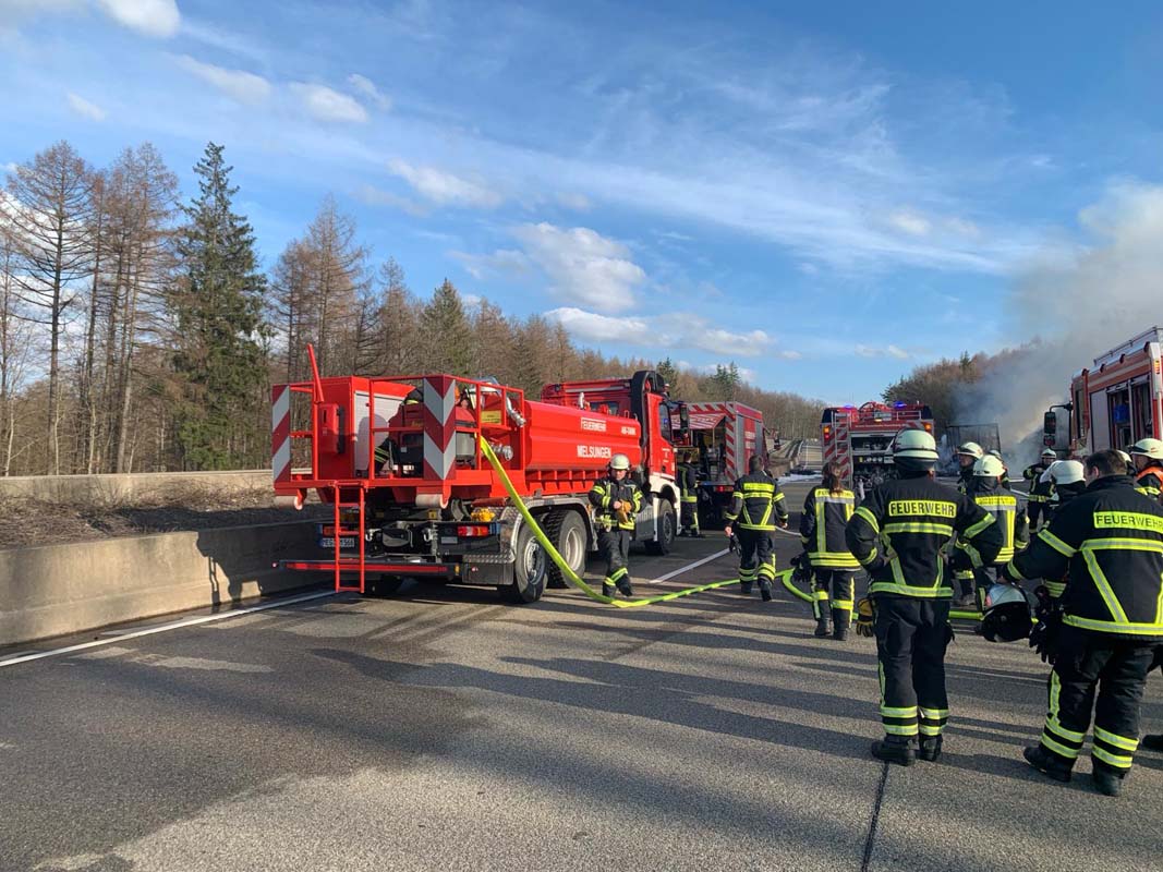 An der Brandstelle waren rund 45 Einsatzkräfte von Feuerwehr und Technischem Hilfswerk. Dazu kommen noch Mitarbeiter der Autobahn GmbH und des Bergeunternehmes, das die Reste des Lkw von der Brandstelle entfernte.