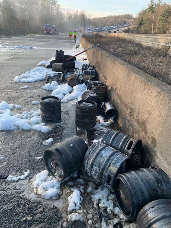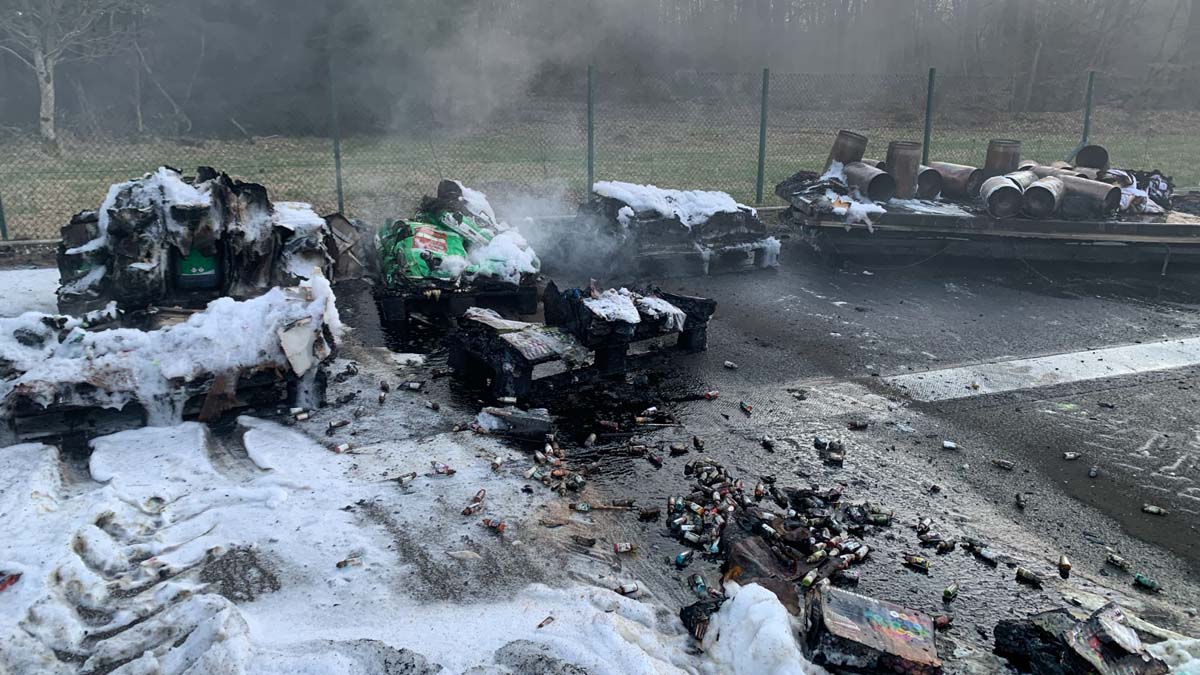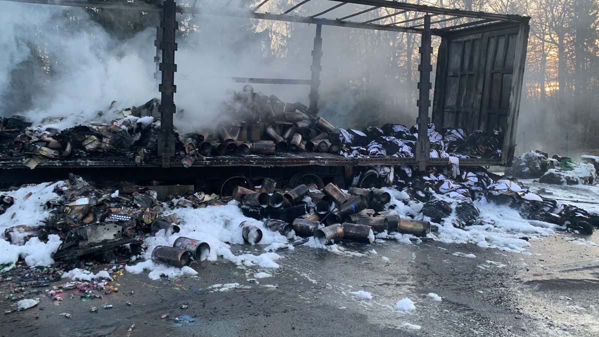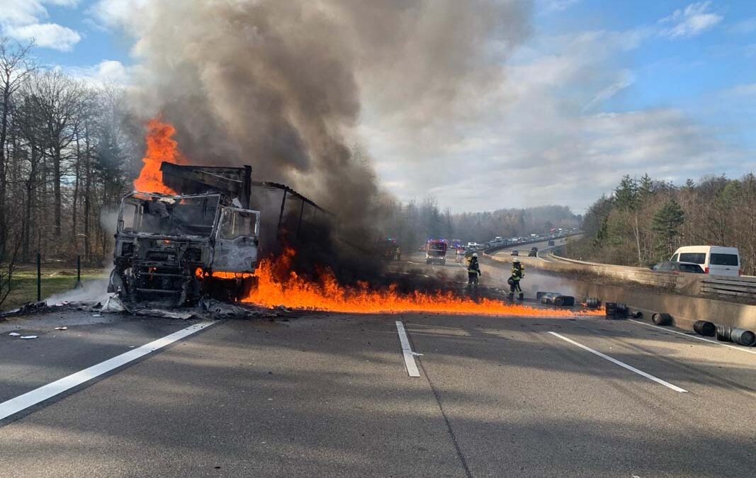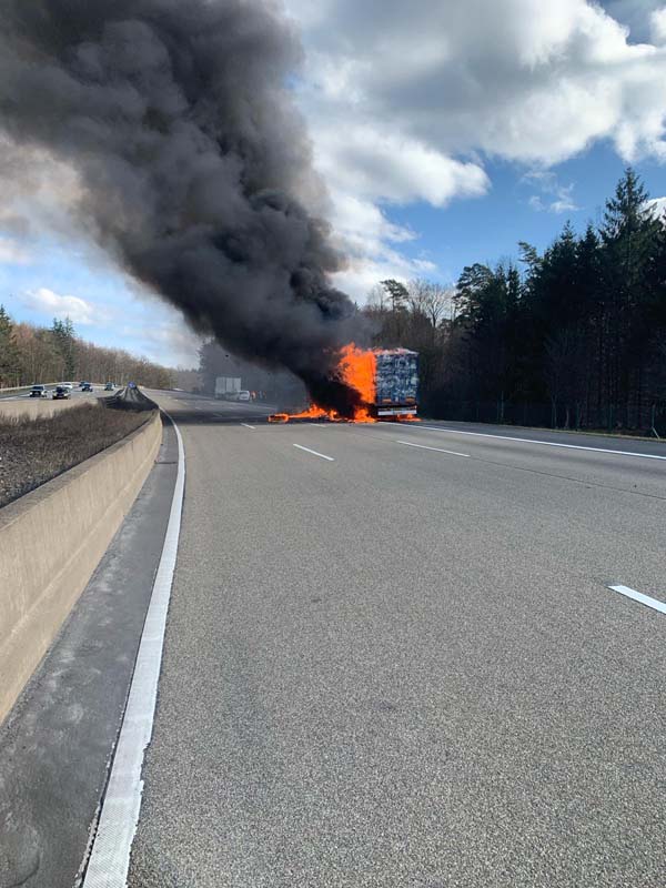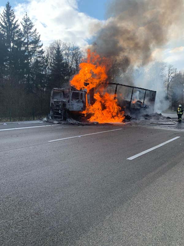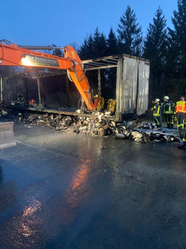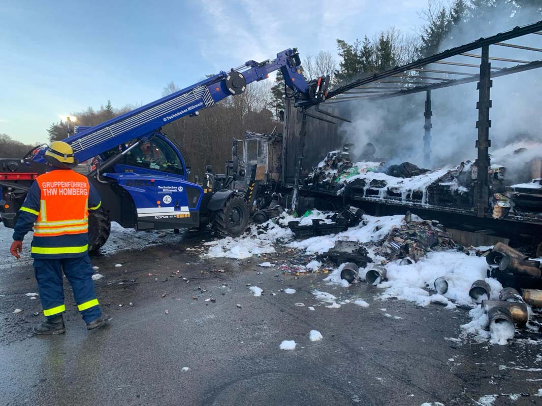 Den aus Osteuropa stammende Lkw, beladen mit Textilien und Bierfässern, konnte der Fahrer unverletzt verlassen. Die Hitze beschädigte die Fahrbahndecke des rechten Fahrstreifens. Seit 18 Uhr wird der Verkehr an der Brandstelle über den linken Fahrstreifen vorbeigeleitet. Es entstand ein Sachschaden von ca. 150.000 EUR. Der Einsatz der Feuerwehr war gegen 20:30 Uhr beendet, berichtet Hombergs Wehrführer Matthias Poppitz.