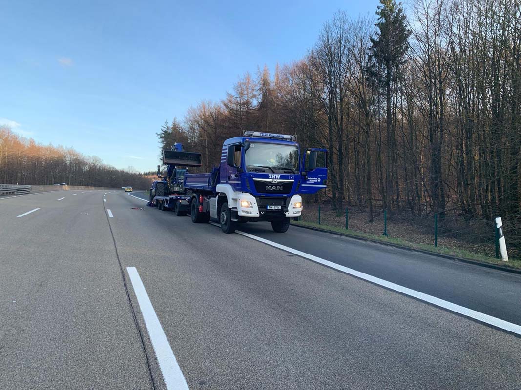 Die Einsatzleitung der Feuerwehr hat Hombergs Wehrführer Matthias Poppitz. Neben der Feuerwehr und dem THW waren auch ein Rettungsteam des DRK sowie Streifenwagenbesatzungen der Polizeiautobahnstation Bad Hersfeld in Einsatz. (wal)