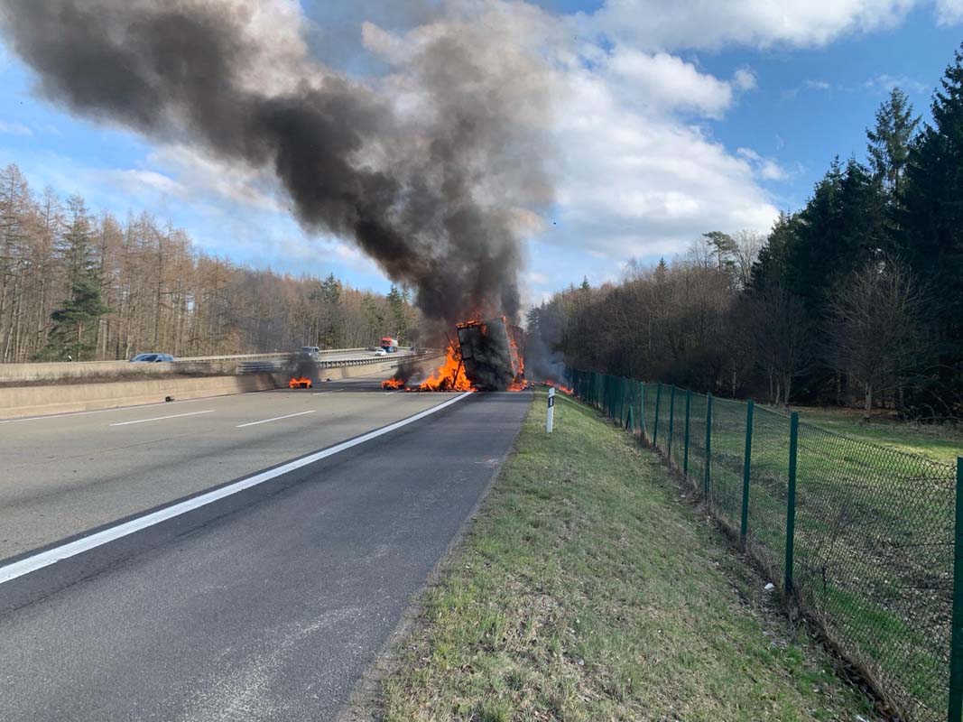 KNÜLLWALD. Wie bereits berichtet, fing am Samstag gegen 14:12 Uhr ein Sattelzug auf der A7 zwischen den Anschlussstellen Homberg/Efze und Bad Hersfeld West Feuer, vermutlich aufgrund eines technischen Defekts.