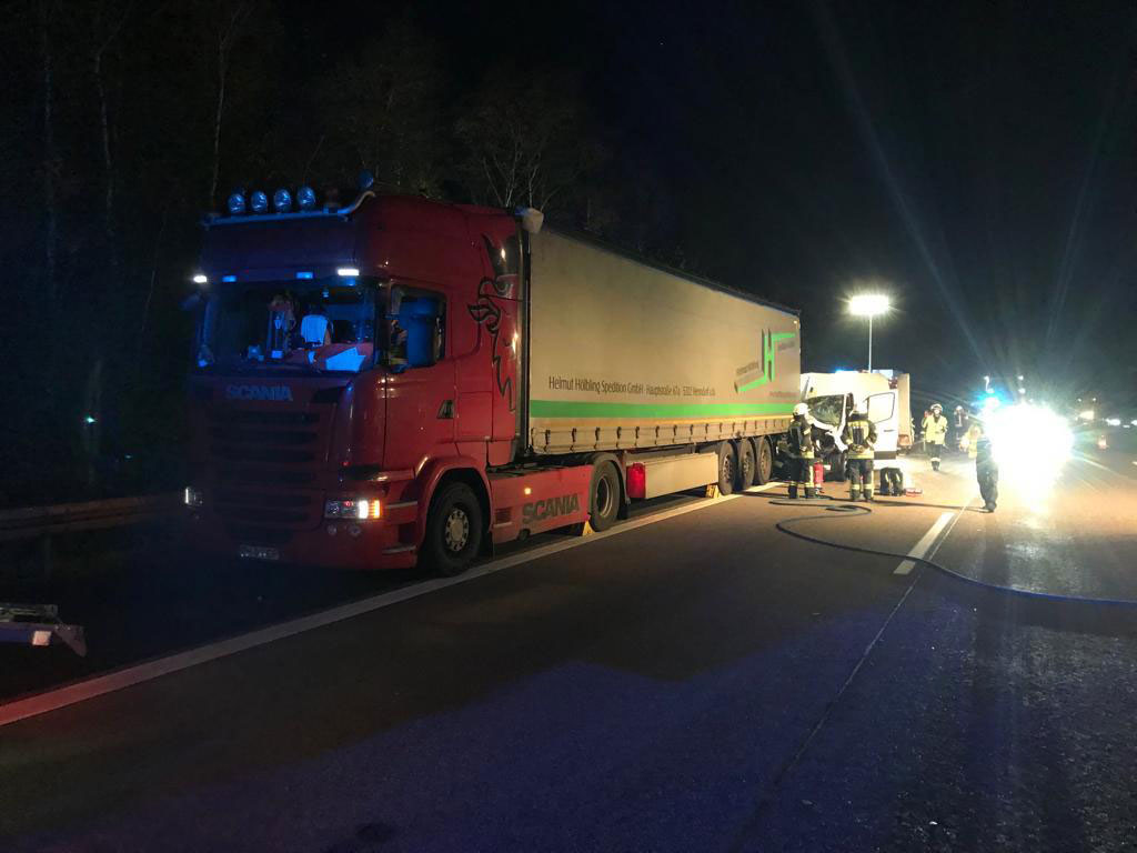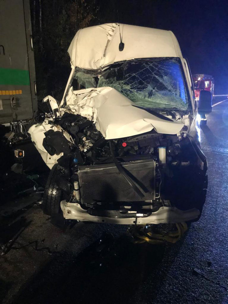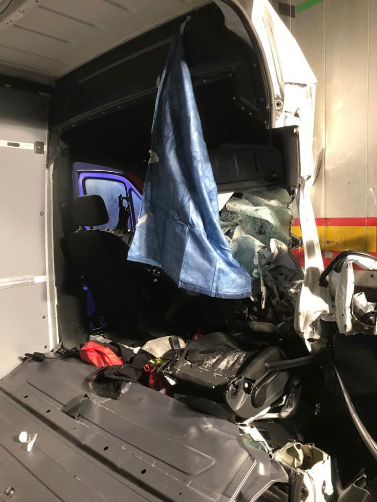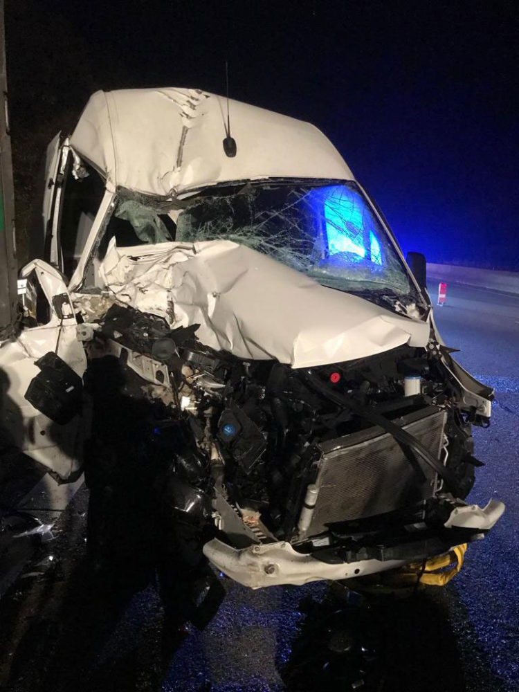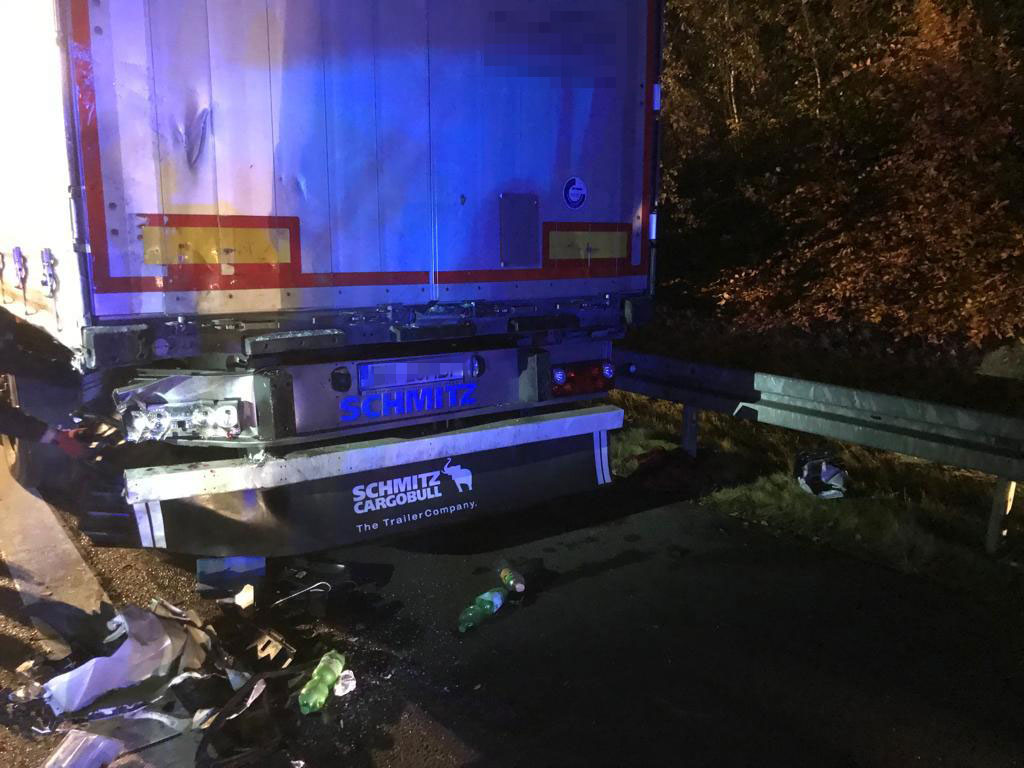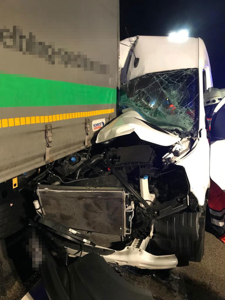 Der Fahrer (19) des Transporters aus dem Landkreis Friedberg fuhr gegen 4:30 Uhr auf einen vorausfahrenden rumänischen Sattelzug auf. Der Unfall ereignete sich rund einen Kilometer vor der Anschlussstelle Homberg/Efze | Remsfeld in Fahrtrichtung Kassel. Die Unfallursache ist noch nicht ermittelt. Der Kleintransporter verkeilte sich bei dem Aufprall mit dem Unterfahrschutz des Aufliegers. Beide Fahrzeuge kamen auf dem Standstreifen zum Stillstand.