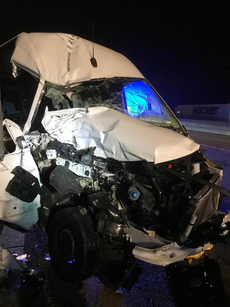 Der Fahrer (19) des Transporters aus dem Landkreis Friedberg fuhr gegen 4:30 Uhr auf einen vorausfahrenden rumänischen Sattelzug auf. Der Unfall ereignete sich rund einen Kilometer vor der Anschlussstelle Homberg/Efze | Remsfeld in Fahrtrichtung Kassel. Die Unfallursache ist noch nicht ermittelt. Der Kleintransporter verkeilte sich bei dem Aufprall mit dem Unterfahrschutz des Aufliegers. Beide Fahrzeuge kamen auf dem Standstreifen zum Stillstand.